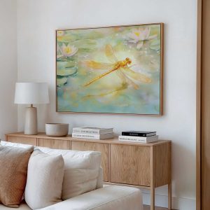 Sierlijke libelle tussen waterlelies
