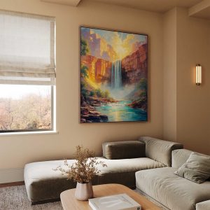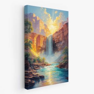 Zonnige waterval in bergen