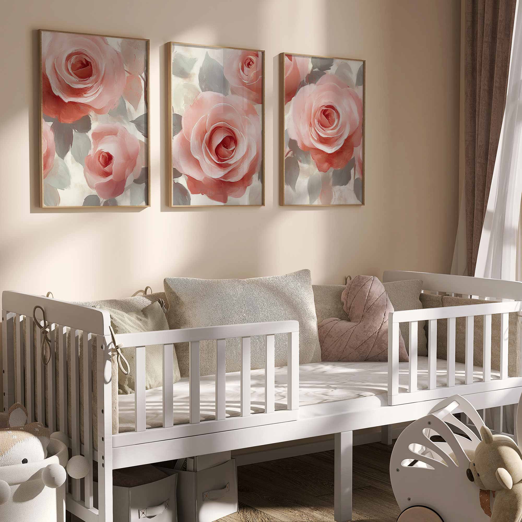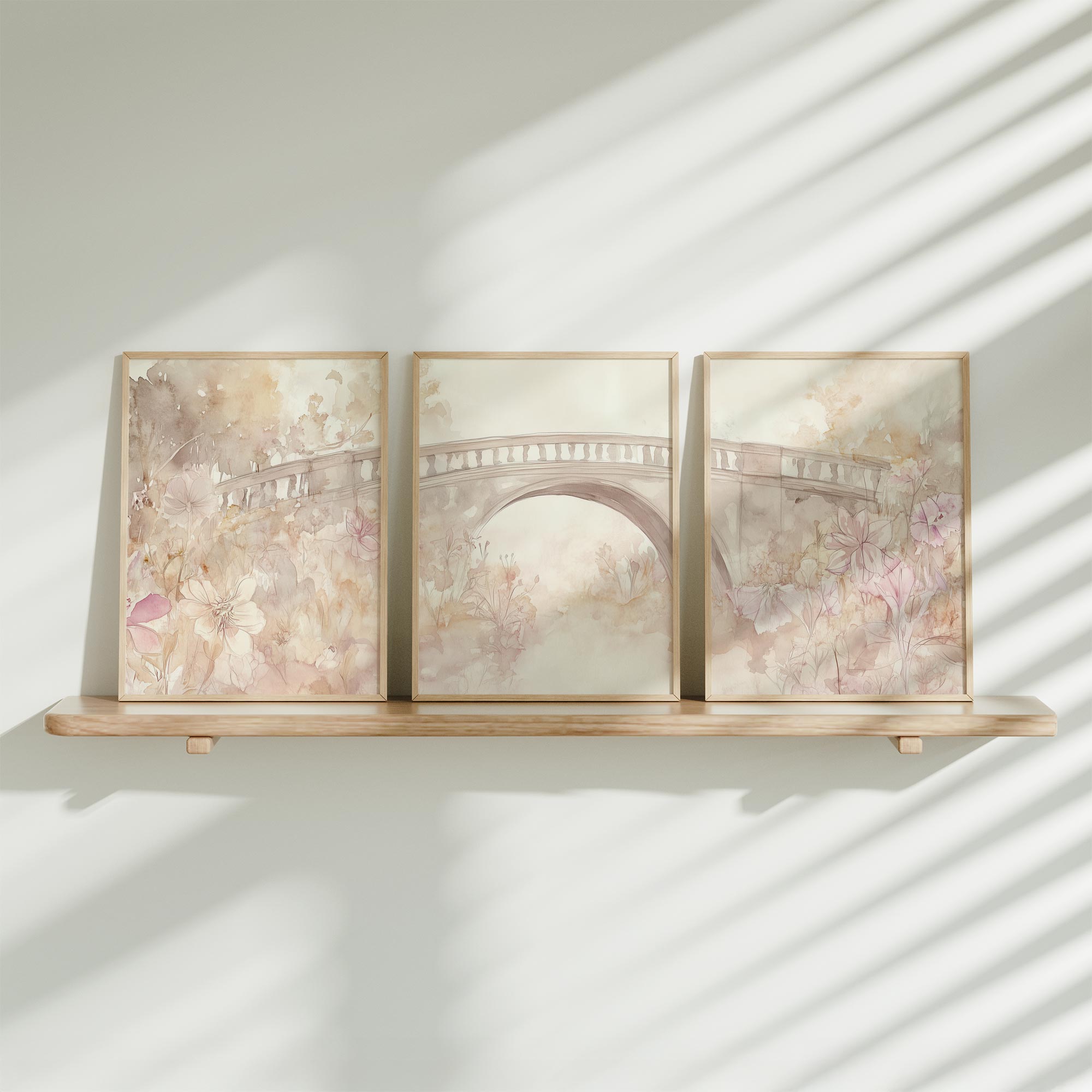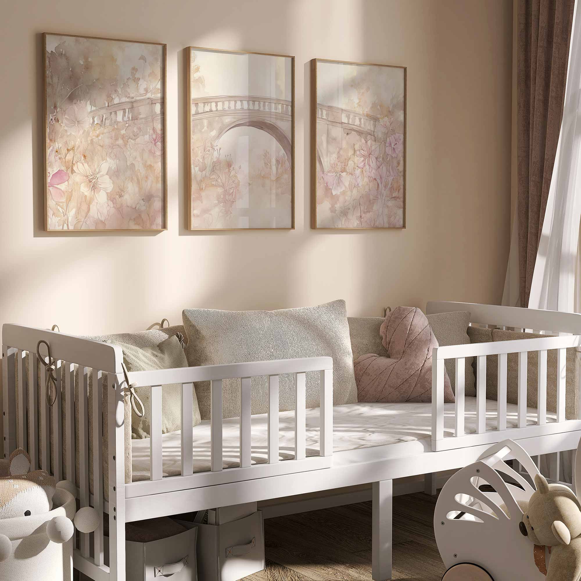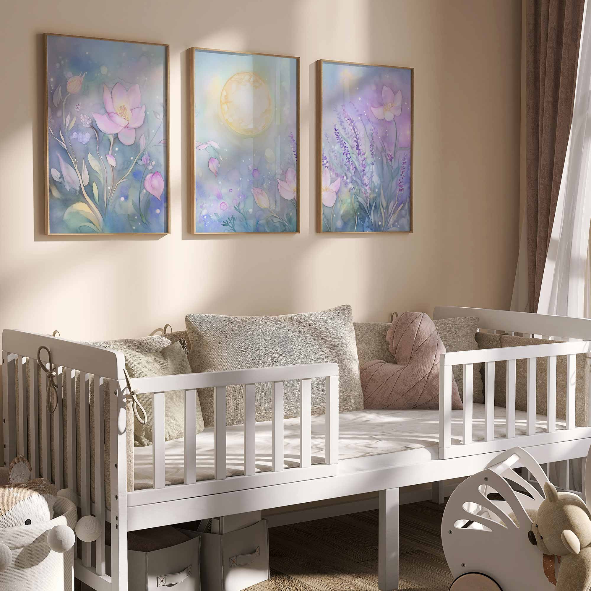Pastelbruidje omringd door bloemen – Dromerige wanddecoratie