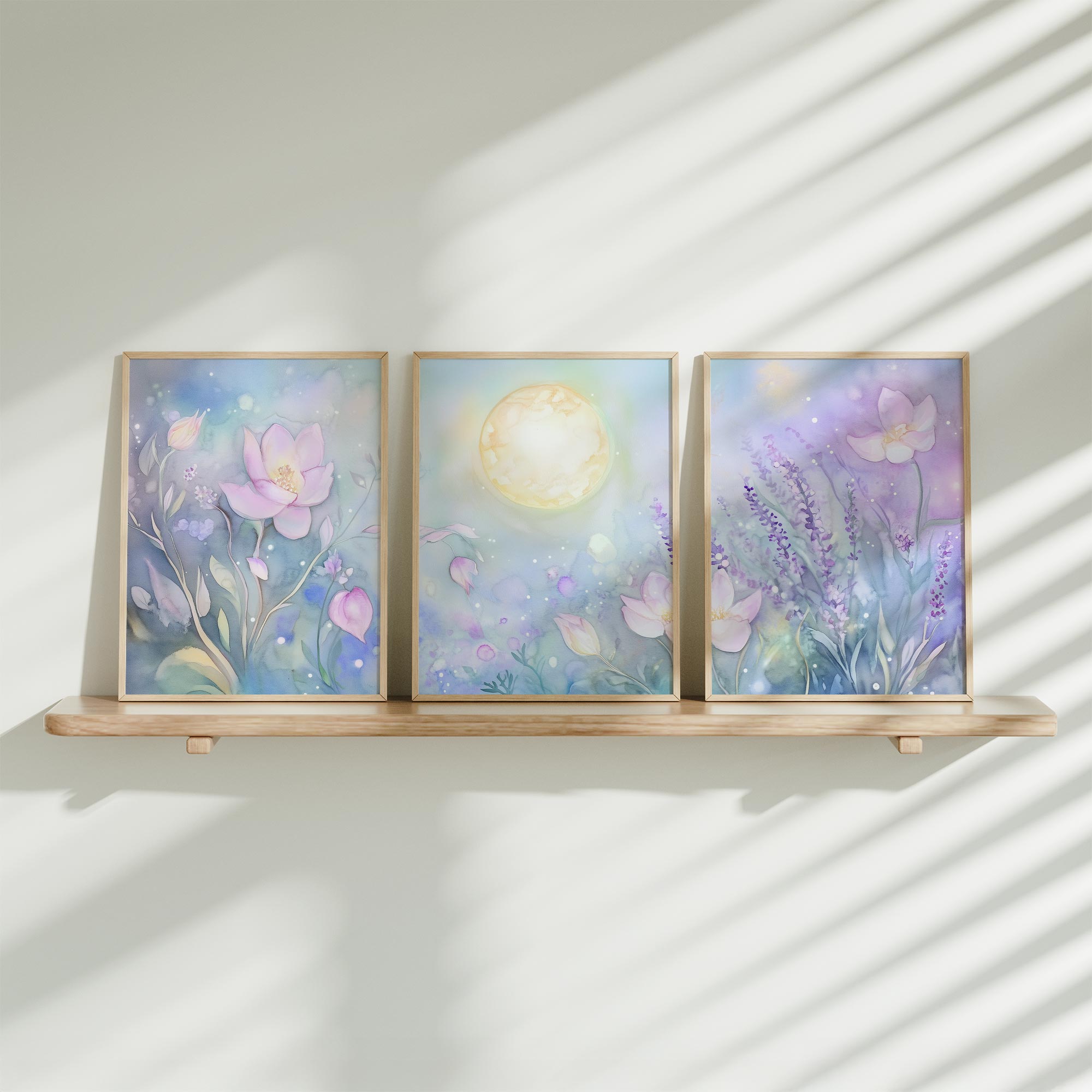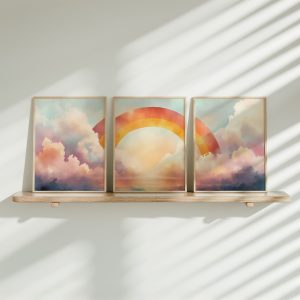 Dromerige Lucht met Gouden Glinstering – Rustgevende Wanddecoratie