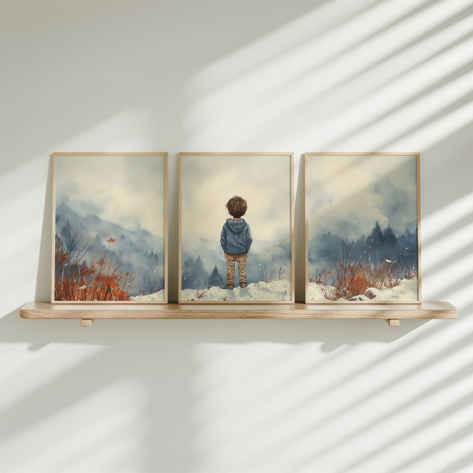 Jongen in de sneeuw: Serene bergen en winterwonder