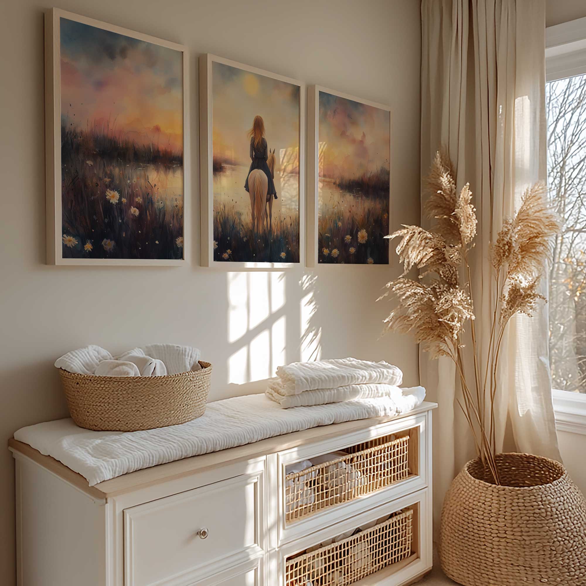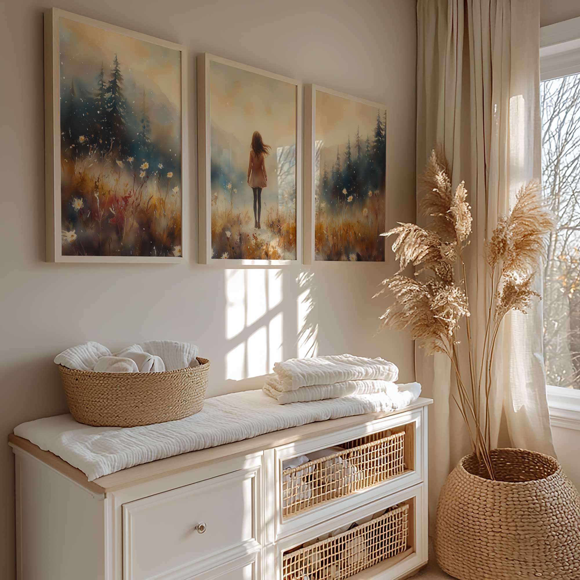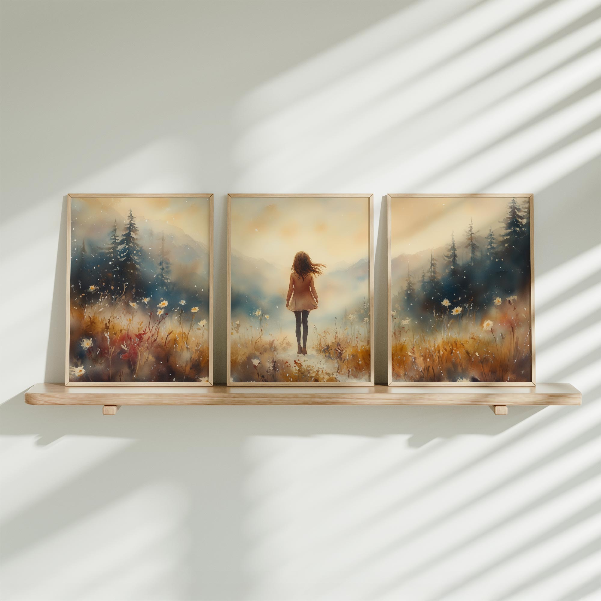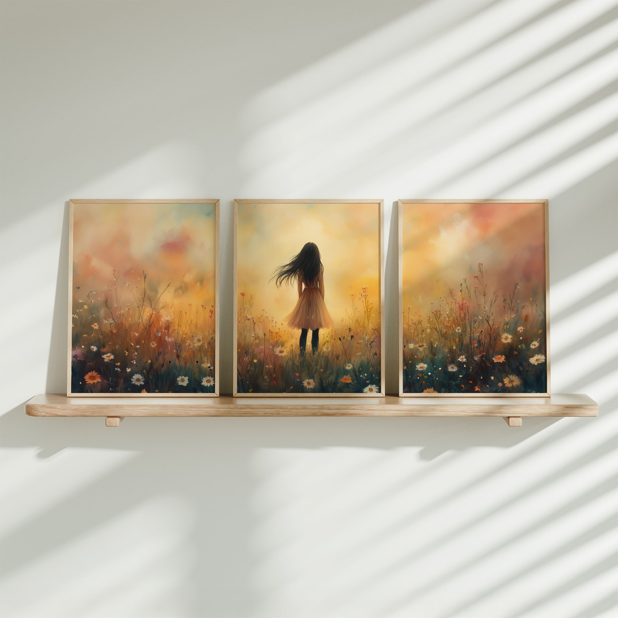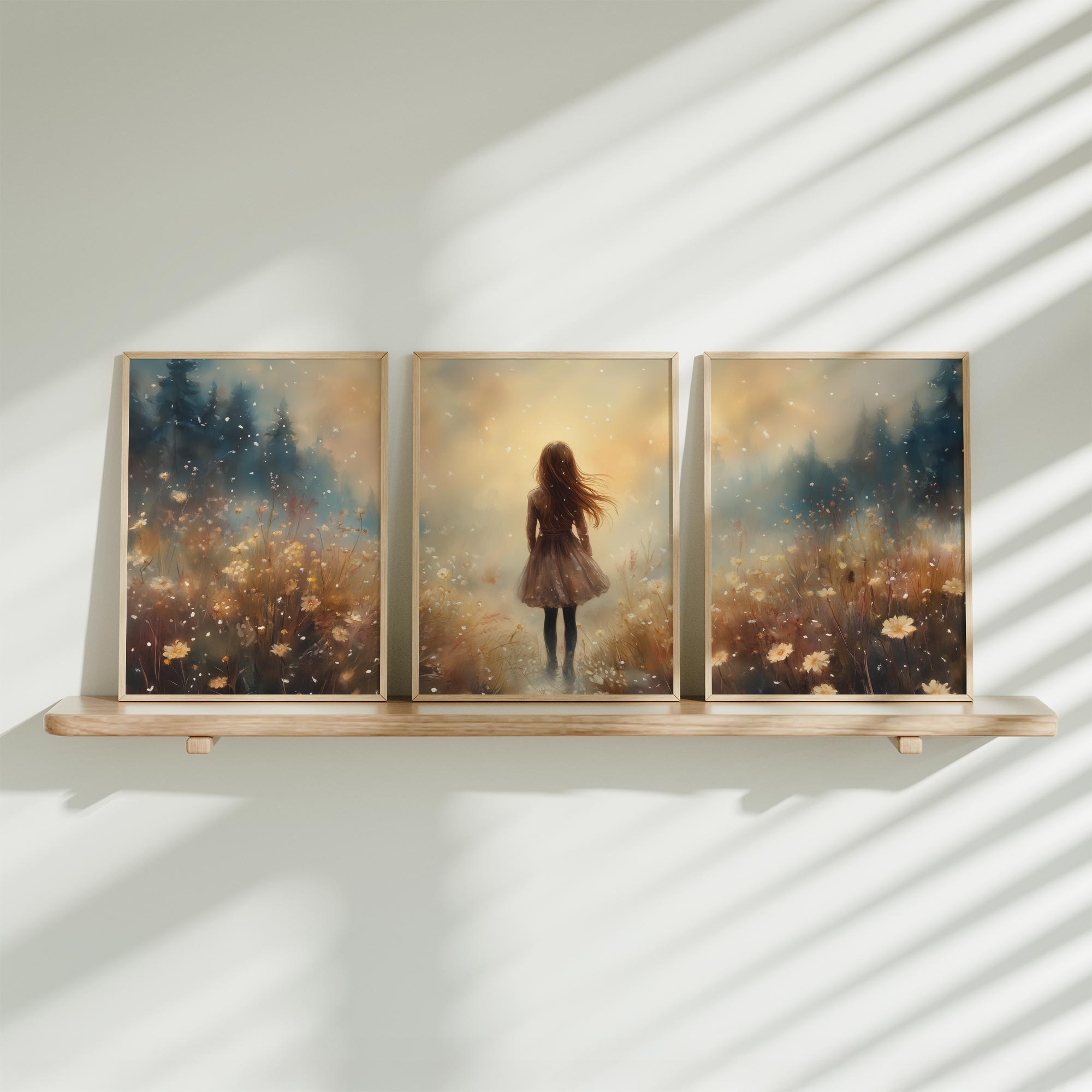 Zwevend Meisje in Bloemenveld met Magisch Bos
