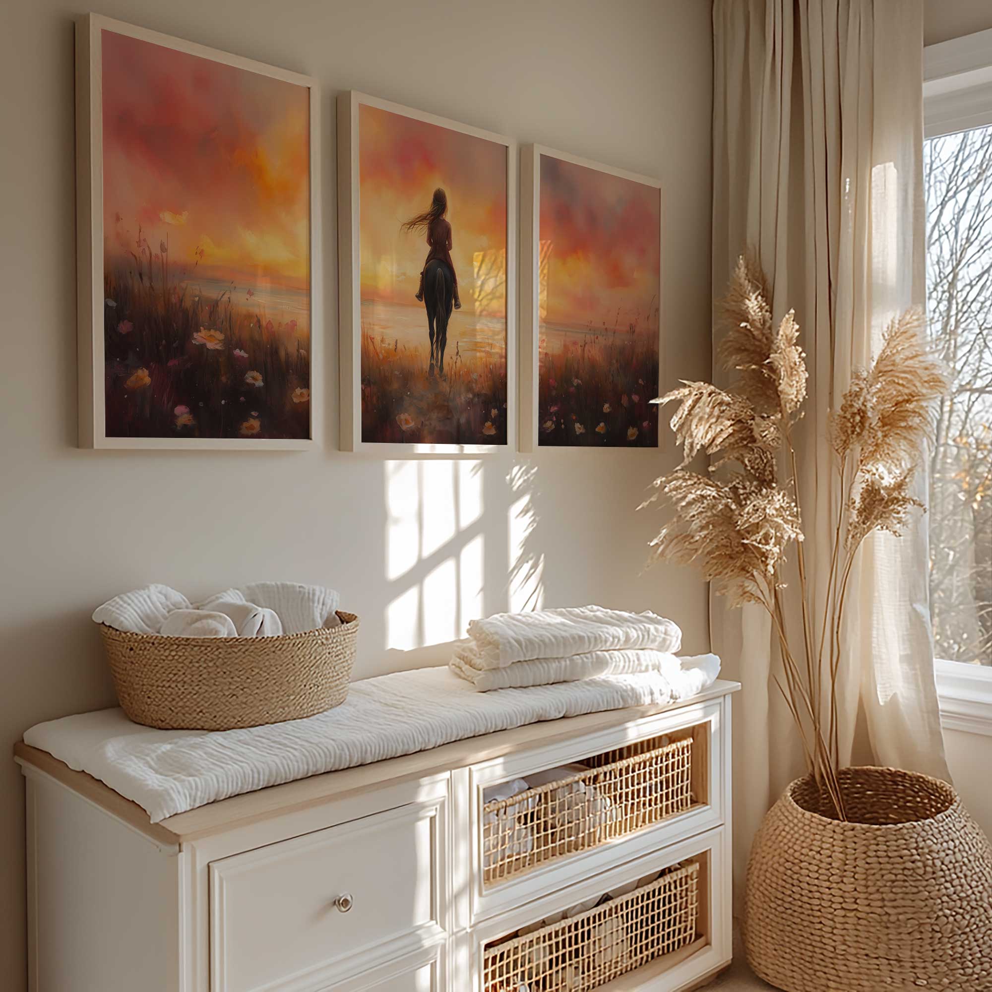 Zwevend in een Dromerig Bloemenveld bij Zonsondergang