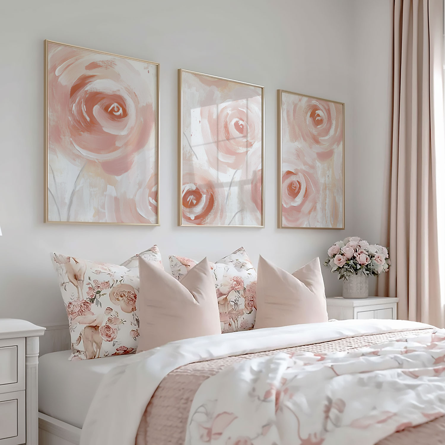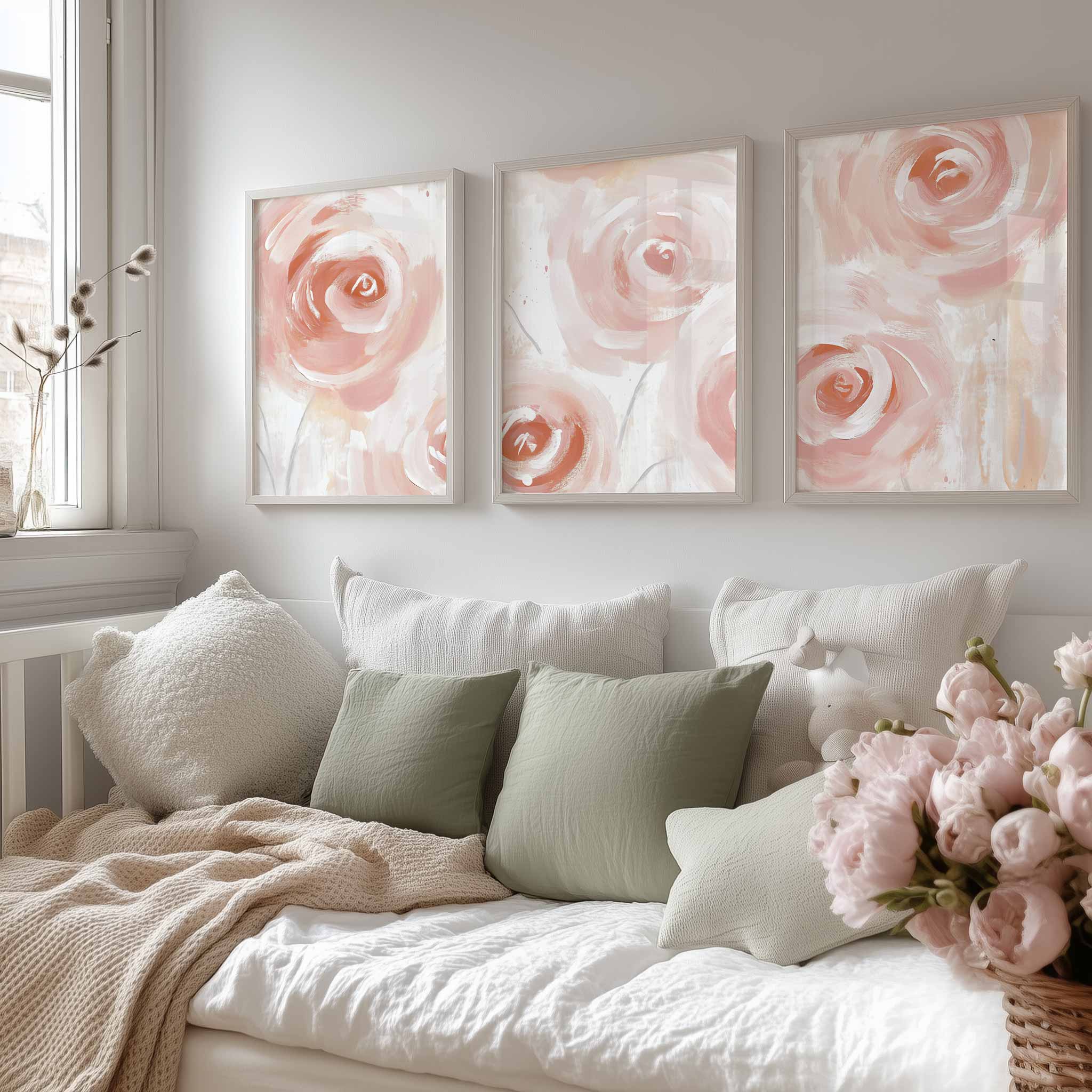 Abstract Roze Rozen – Dromerige en Stijlvolle Wanddecoratie