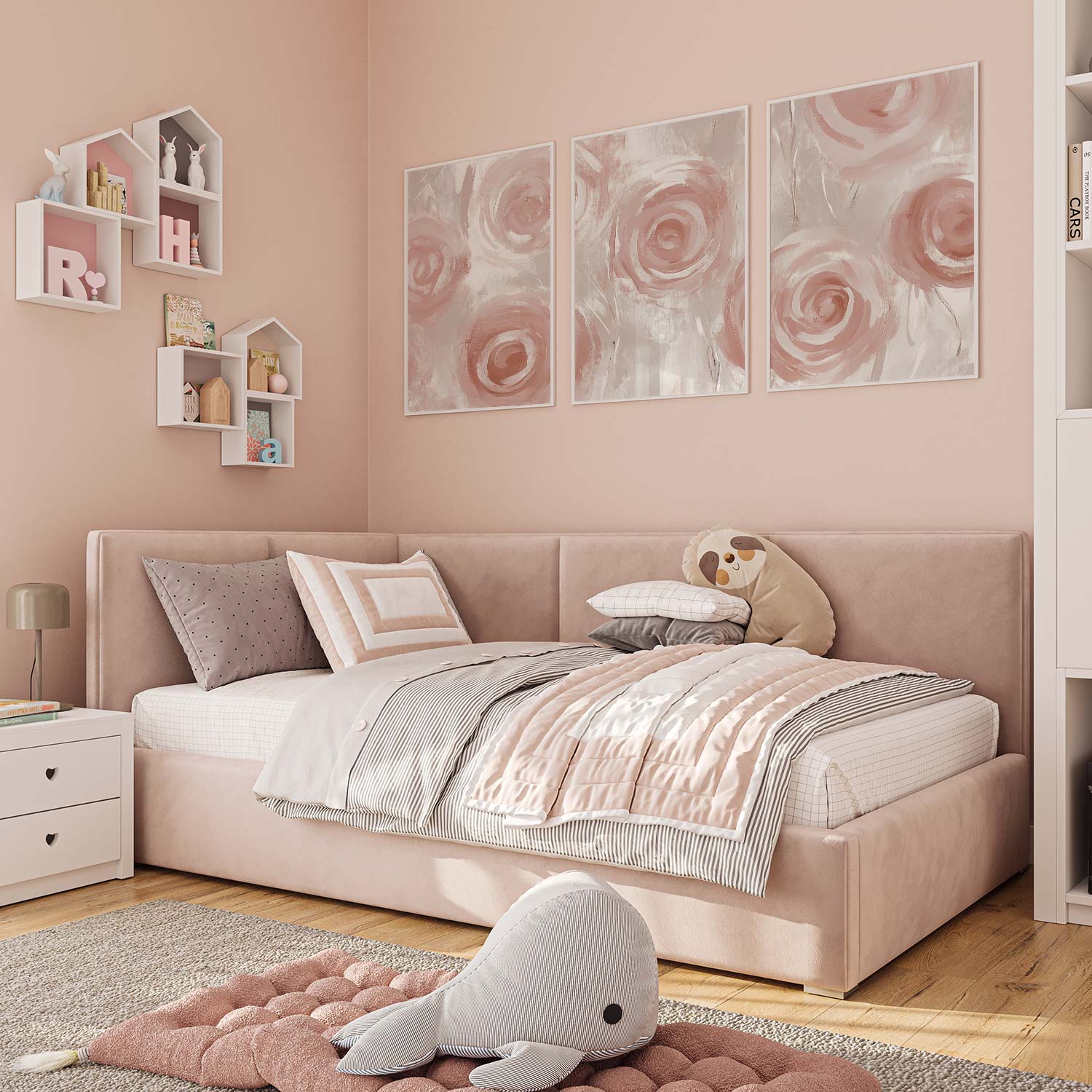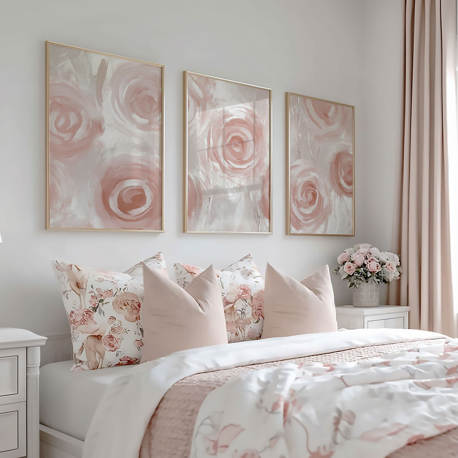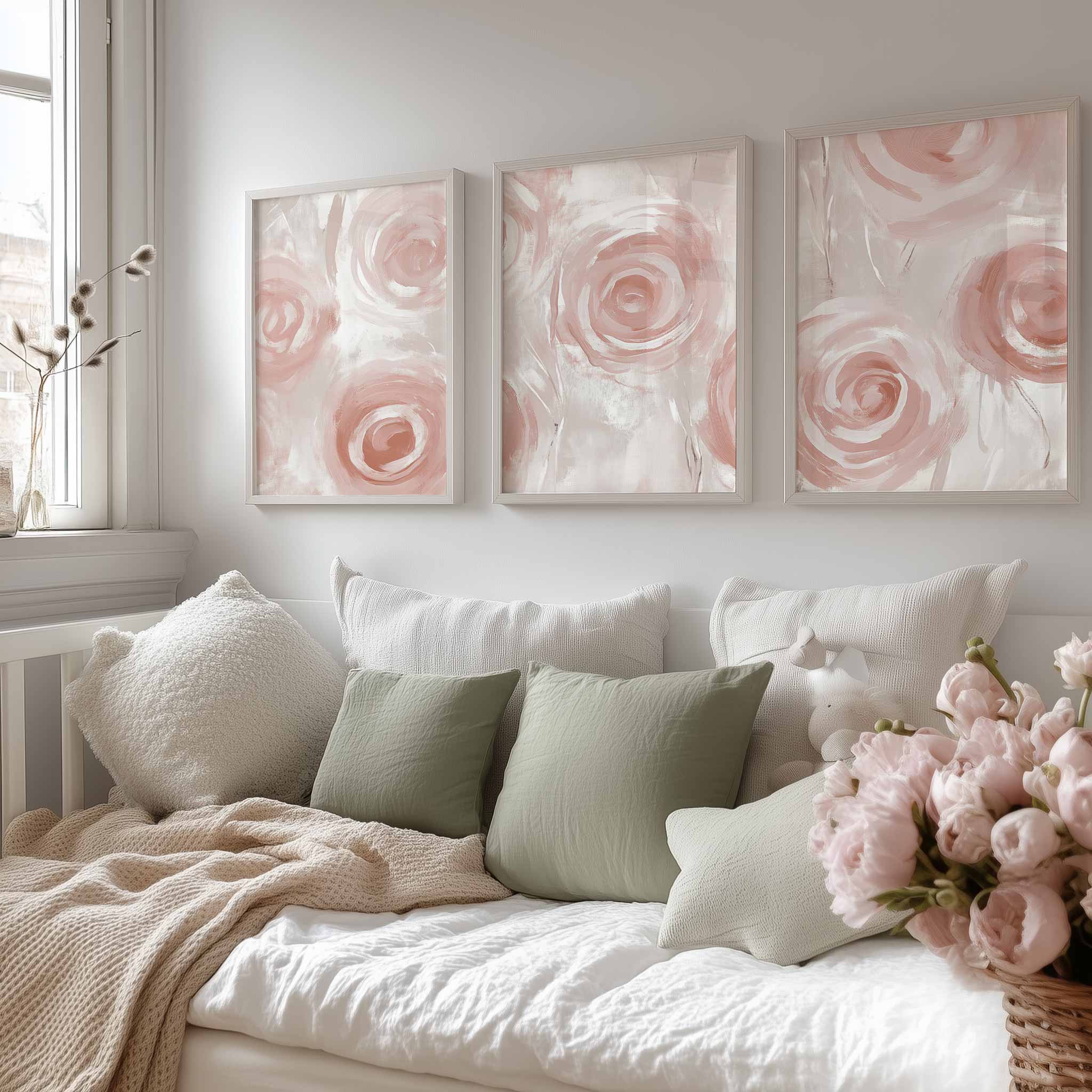 Abstract Roze Rozen – Speelse en Stijlvolle Wanddecoratie