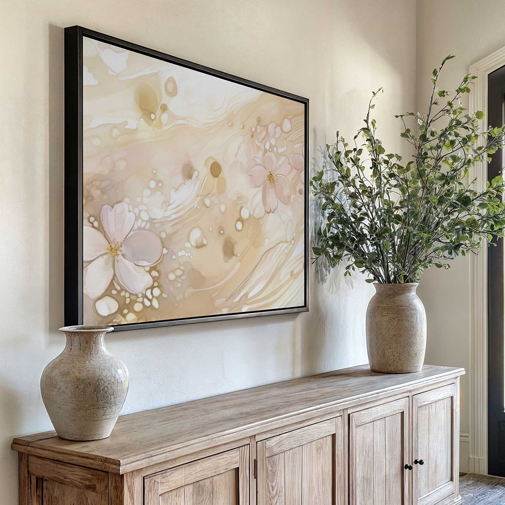 Abstracte Roze Bloemen Schilderij