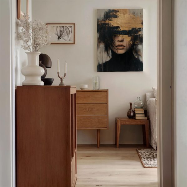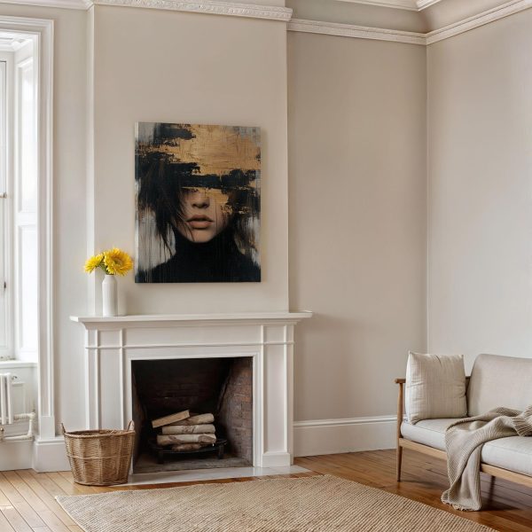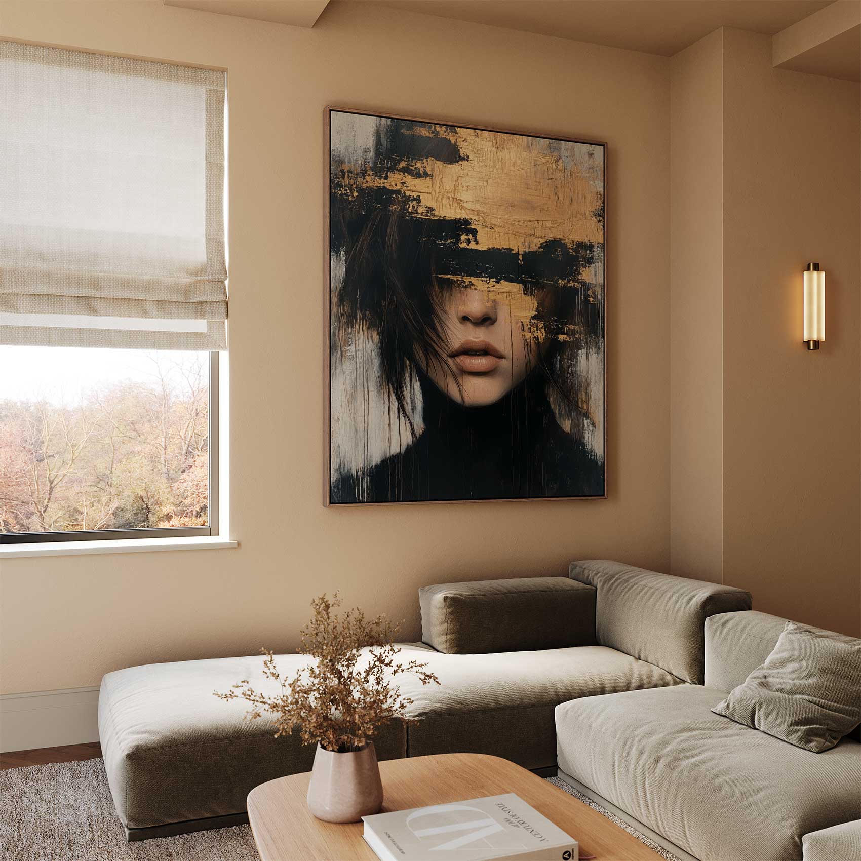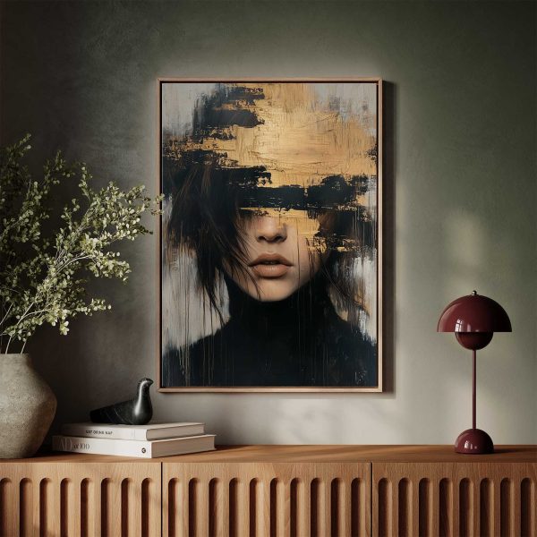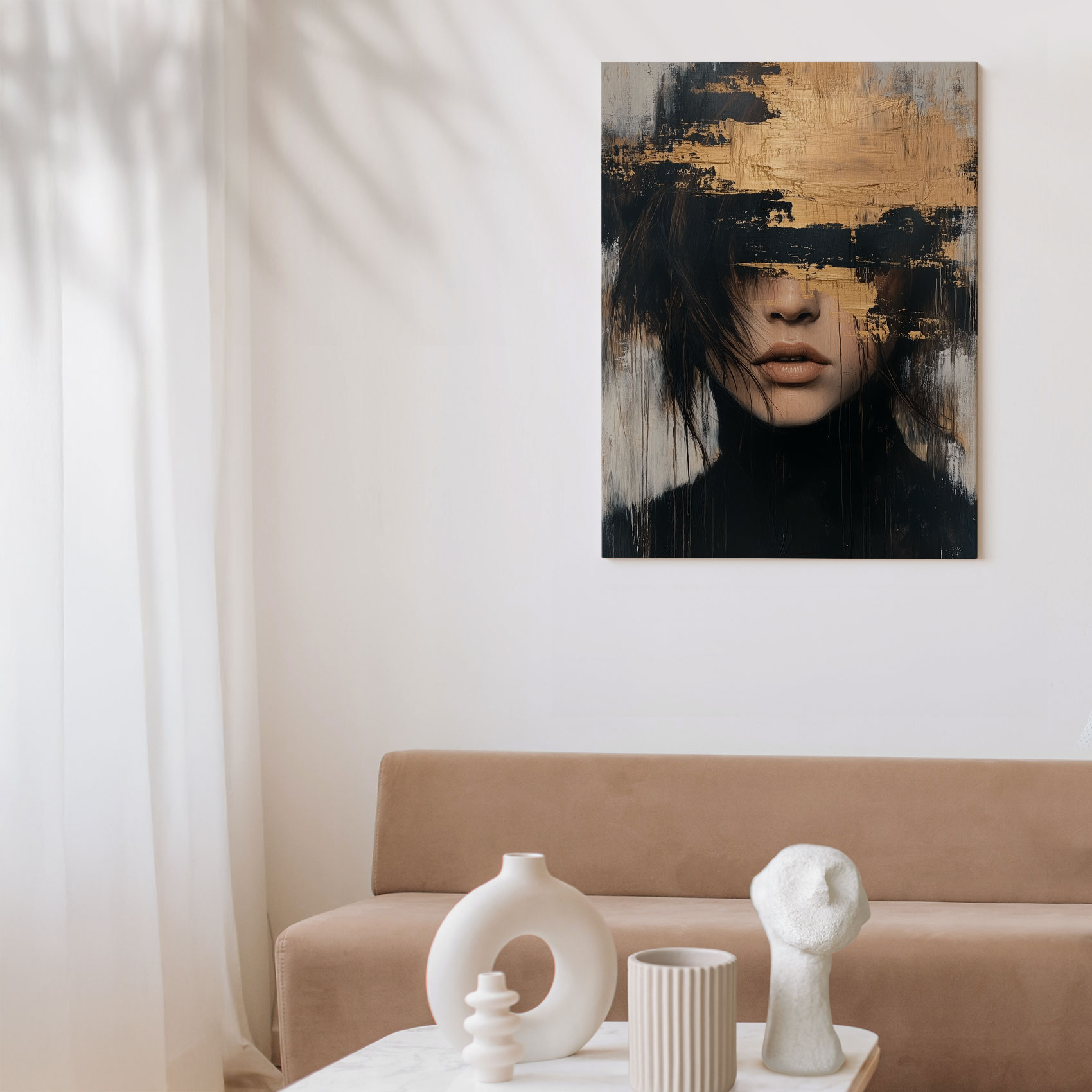 Terug naar collectie Canvas Abstracte vrouw met goudwind