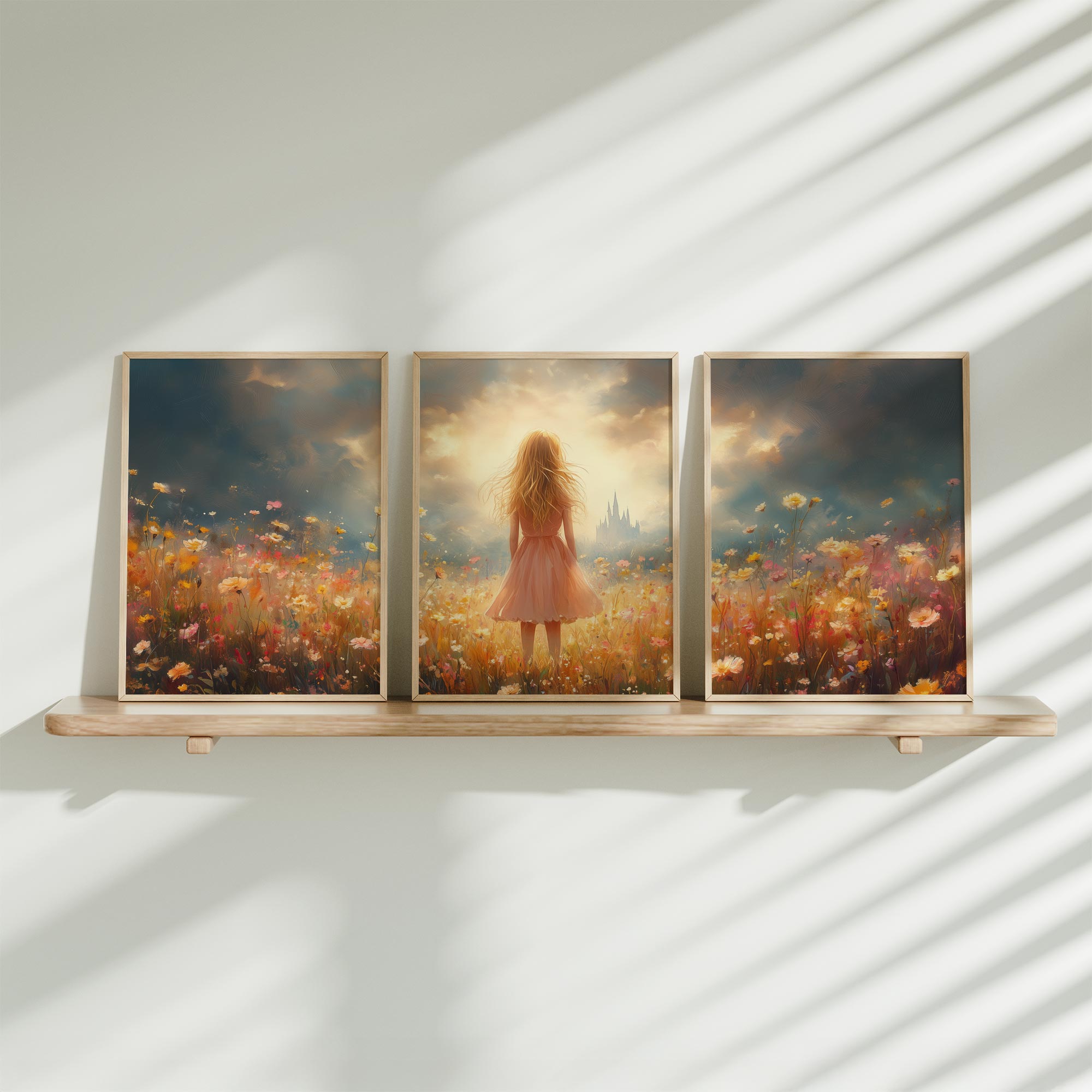 Terug naar collectie Posters Avontuurlijk Meisje op Paard in Bloemenveld