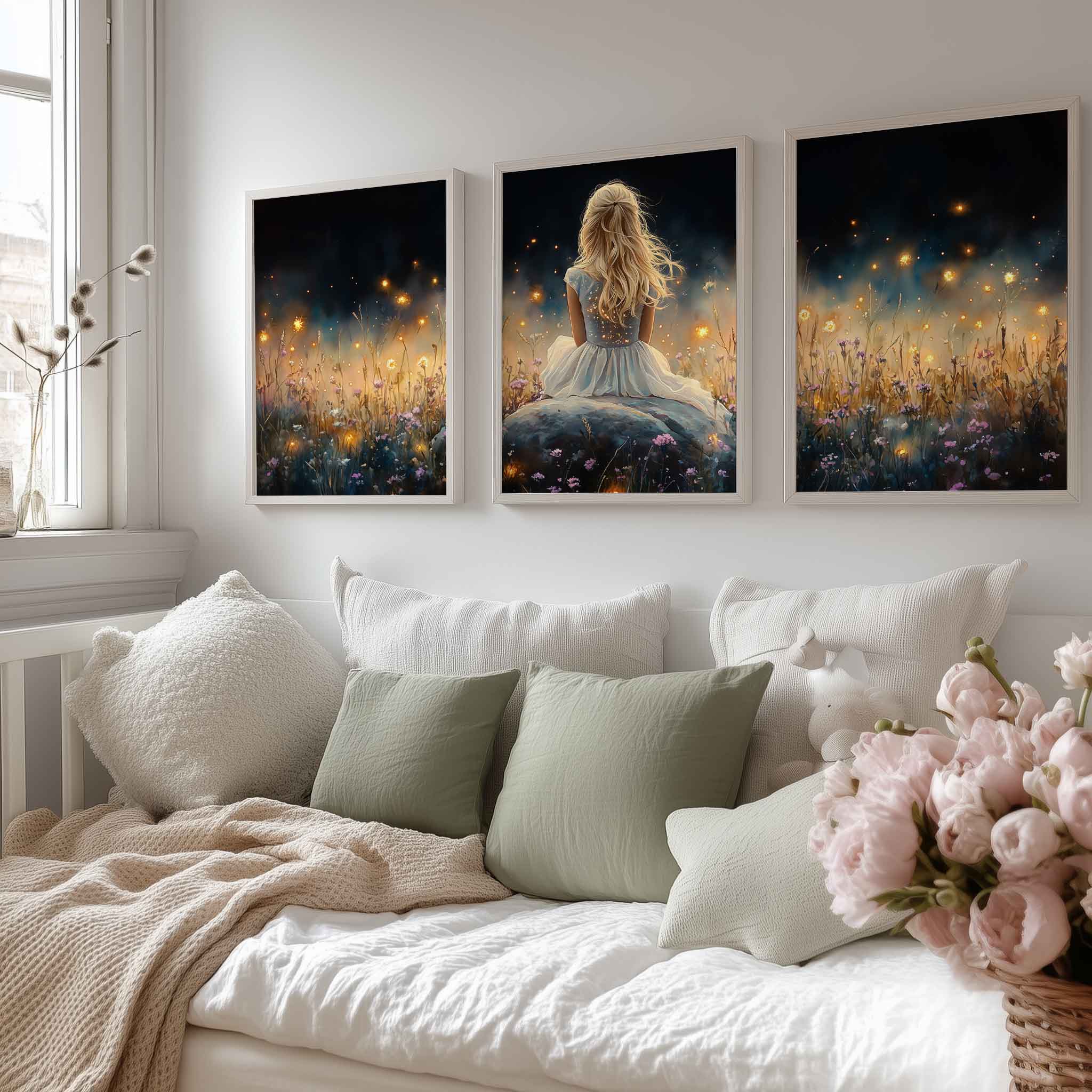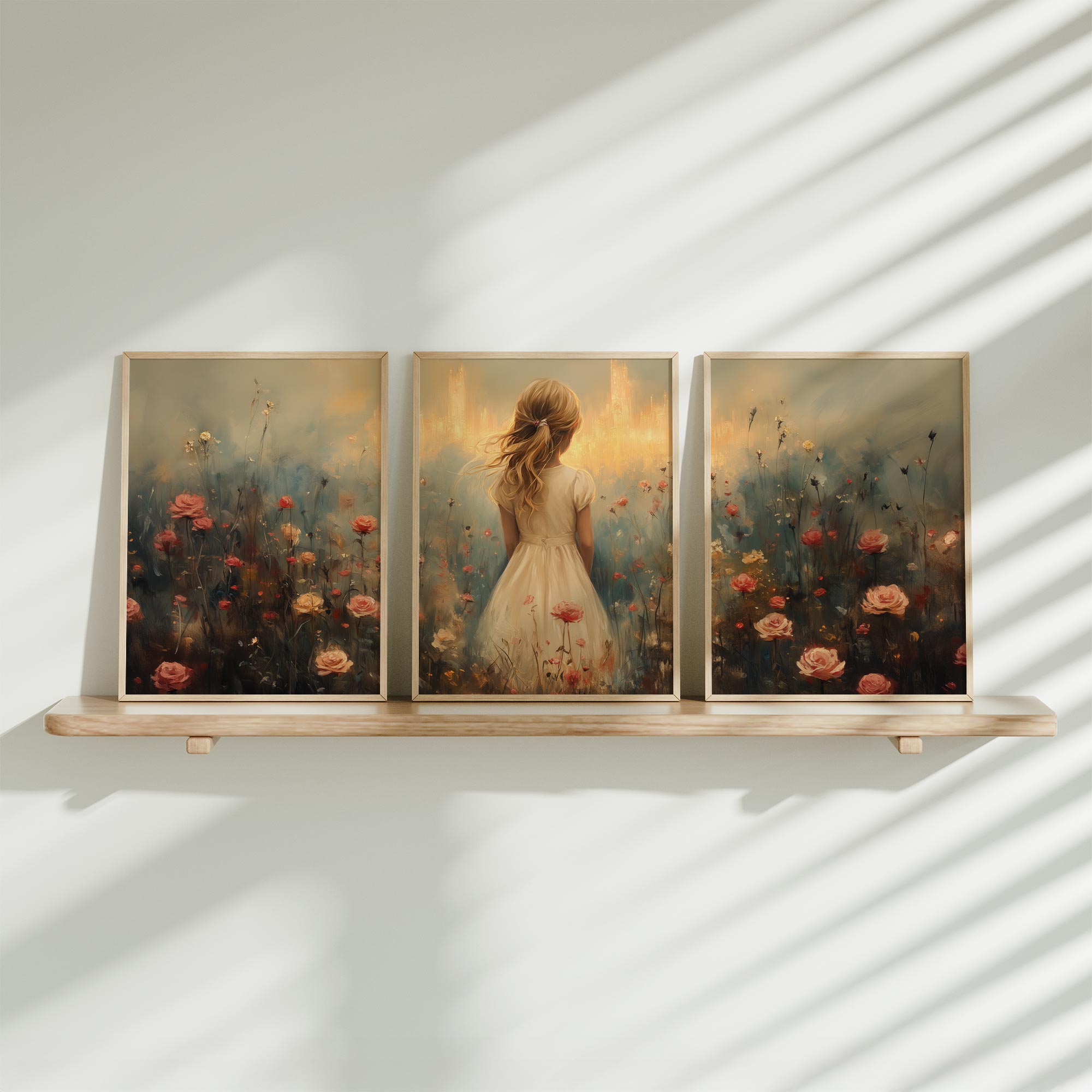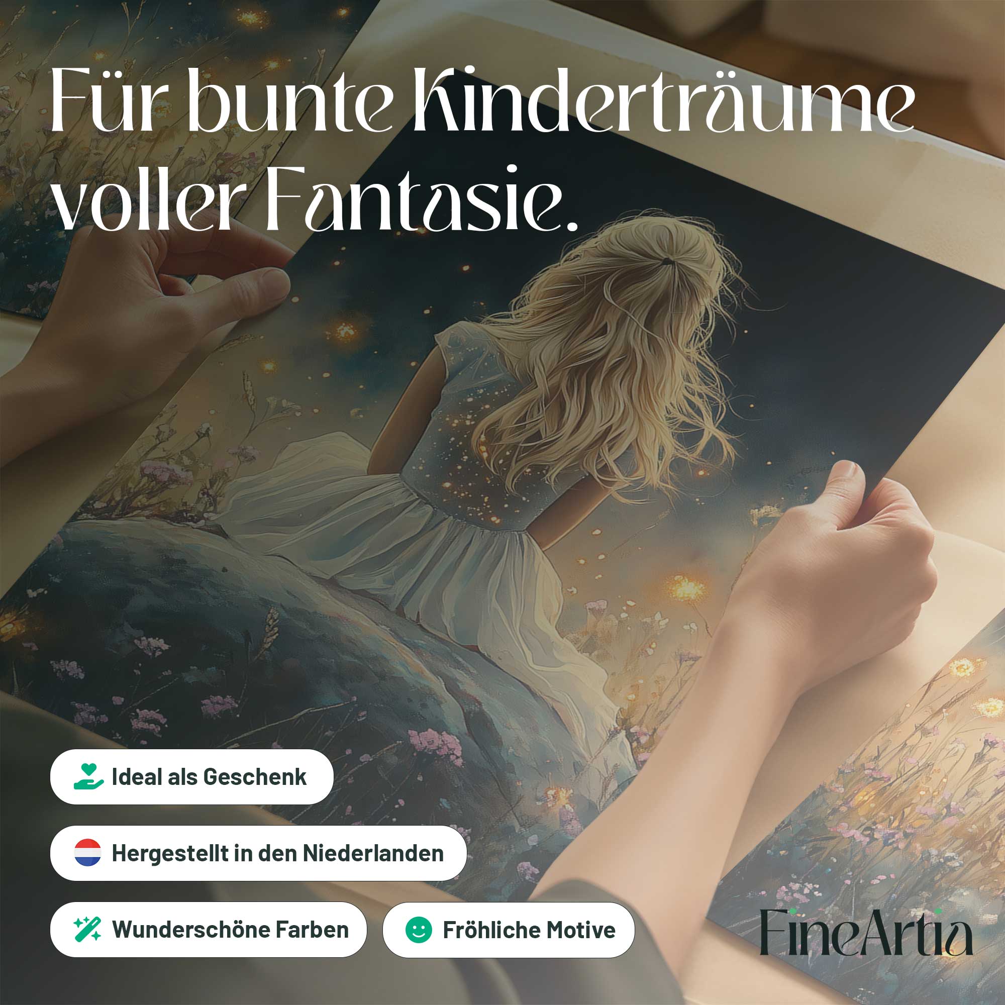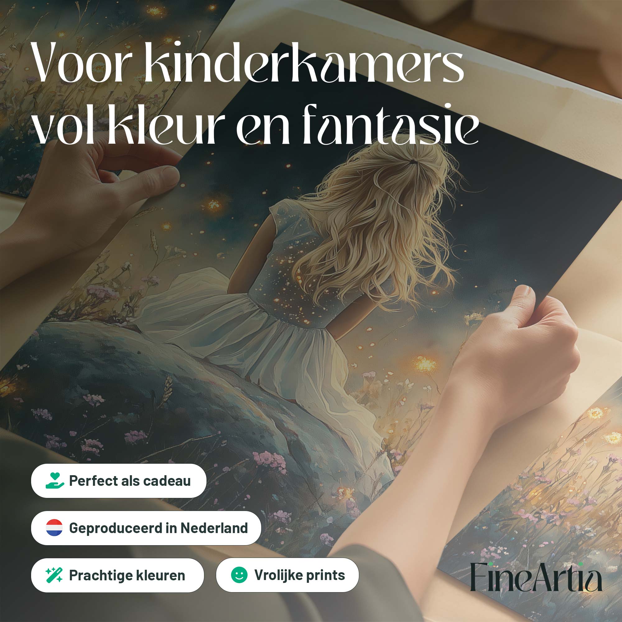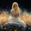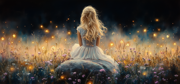 Betoverend bloemenveld met dromerige vrouw in wit