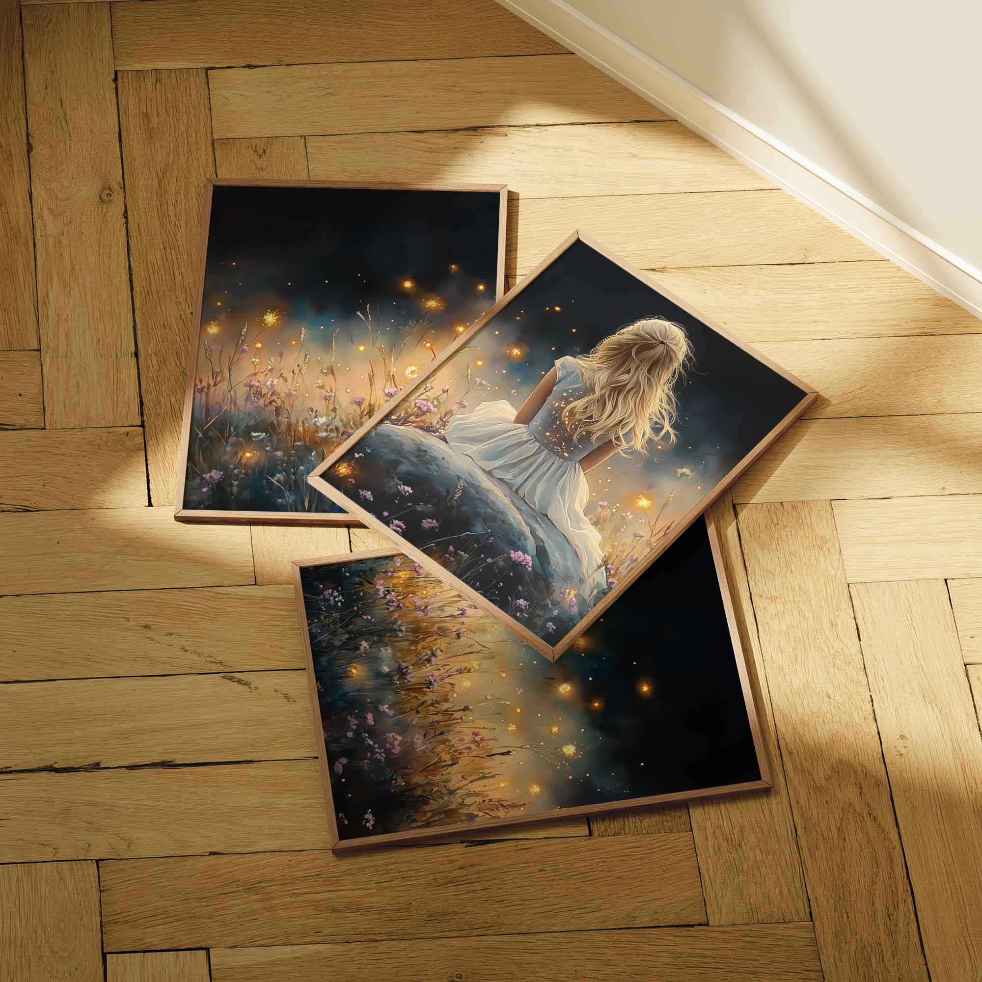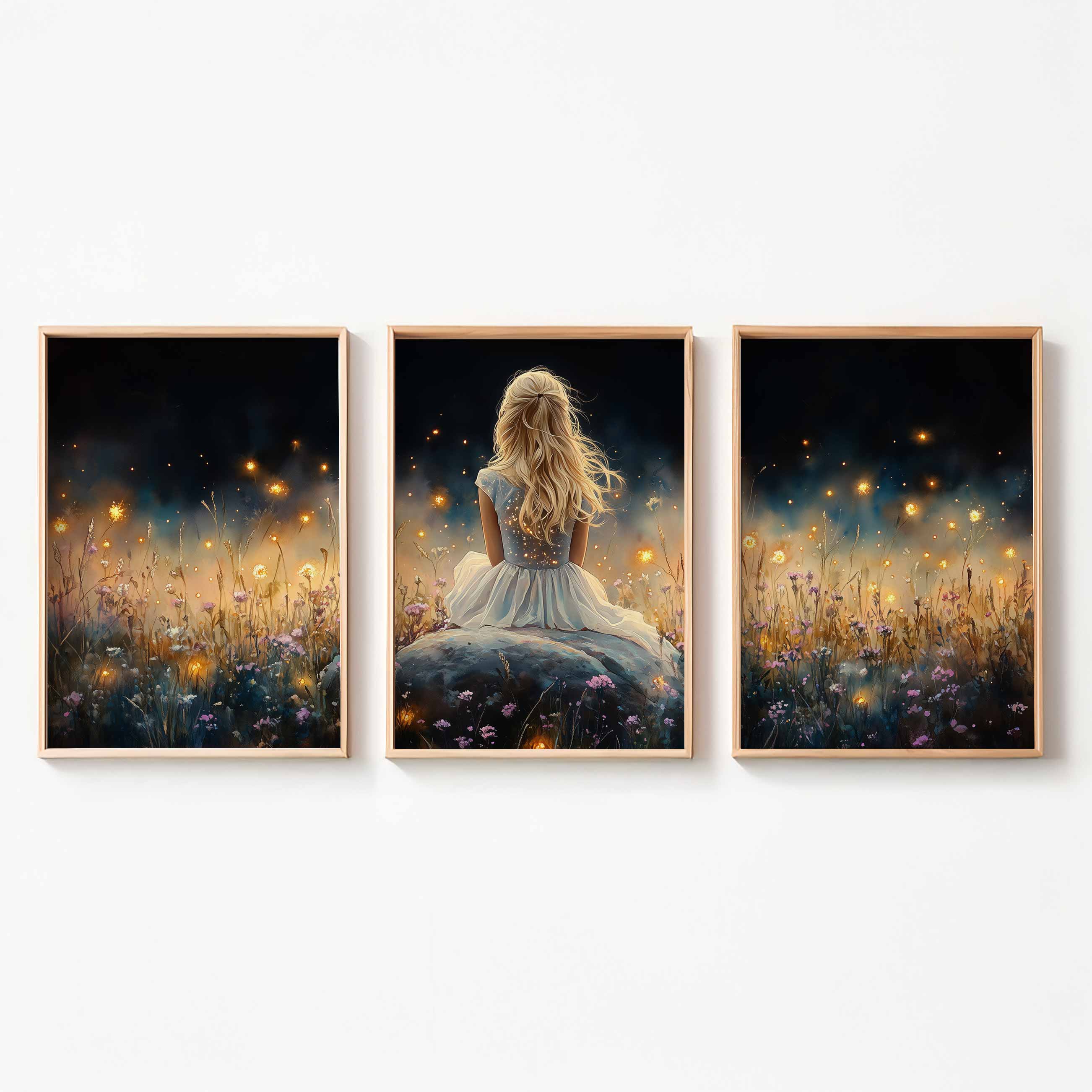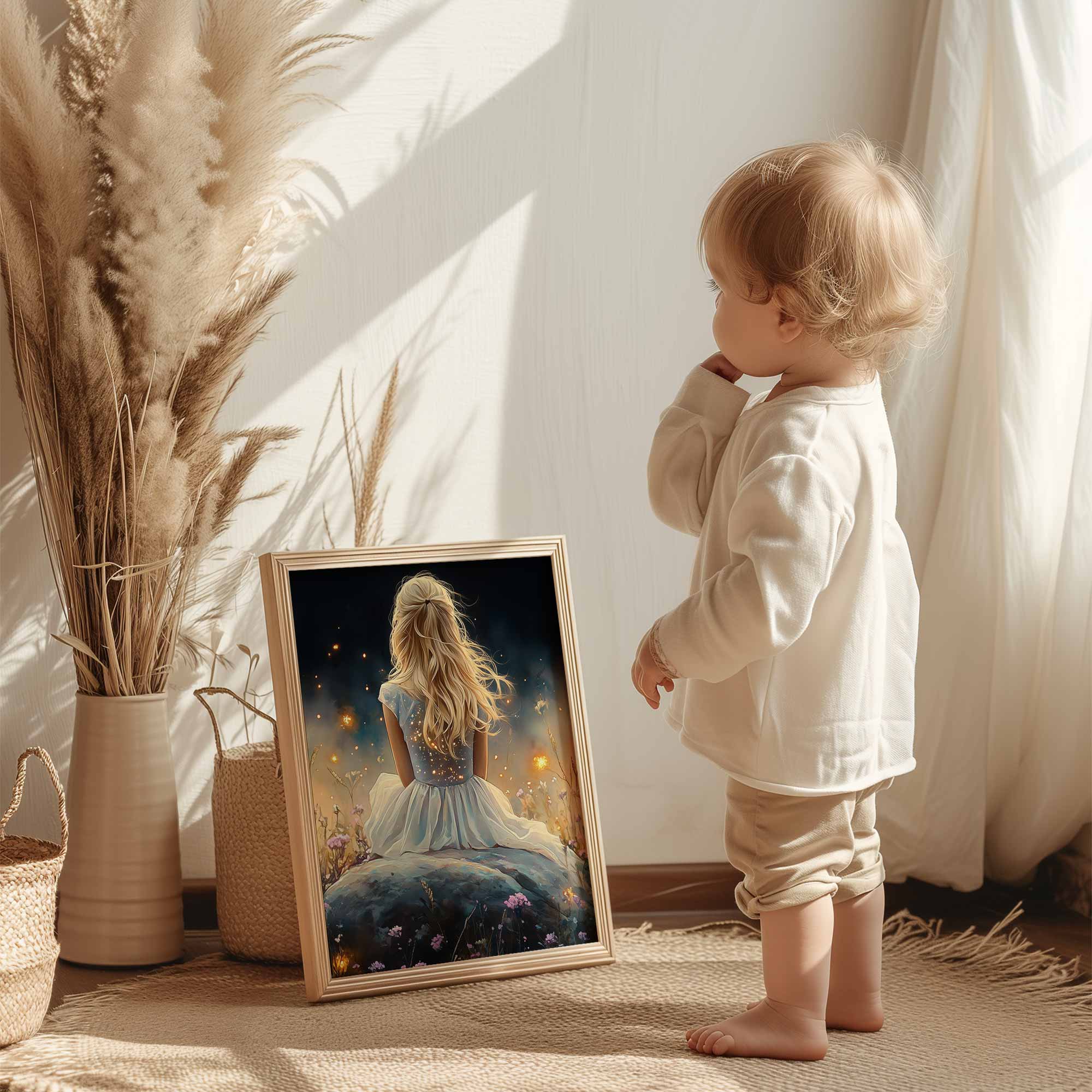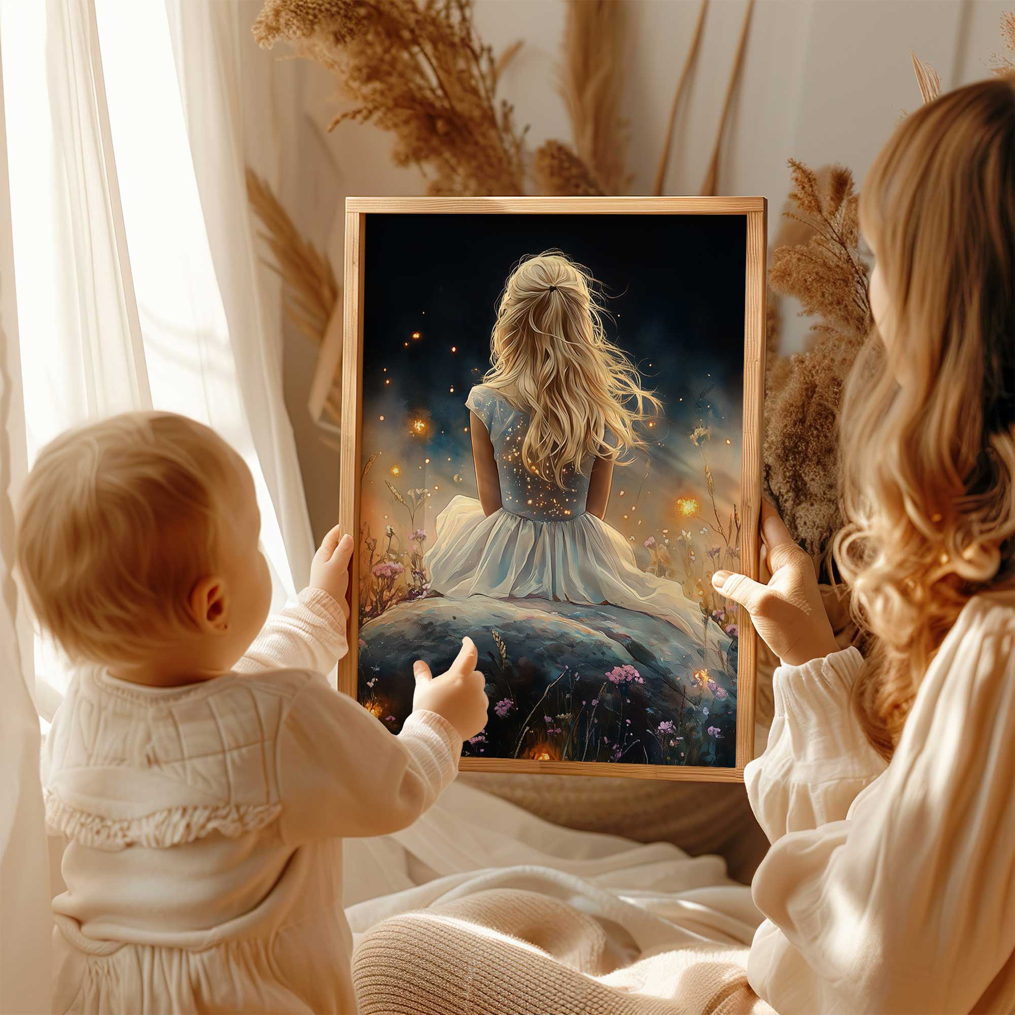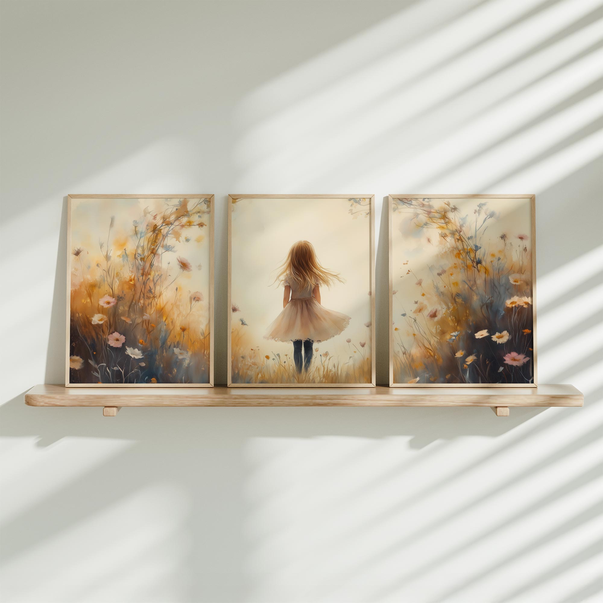 Betoverend bloemenveld met dromerige vrouw in wit