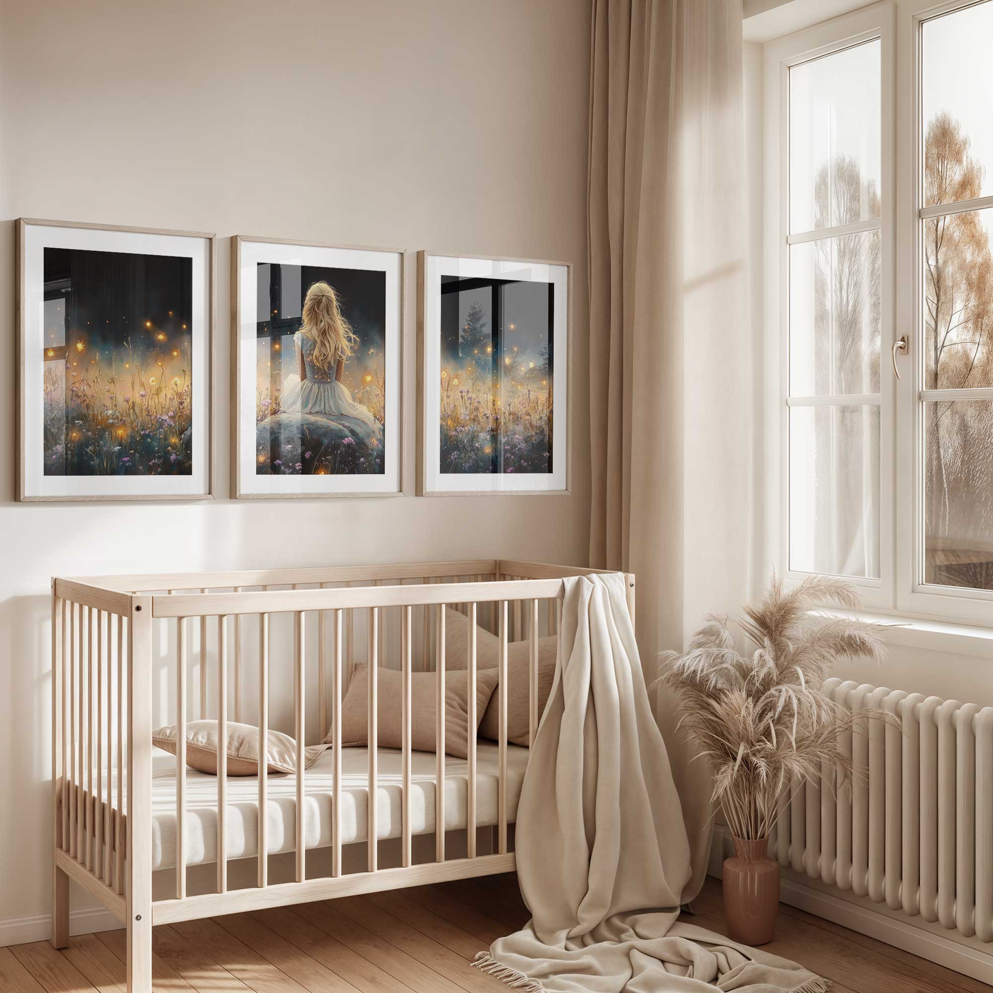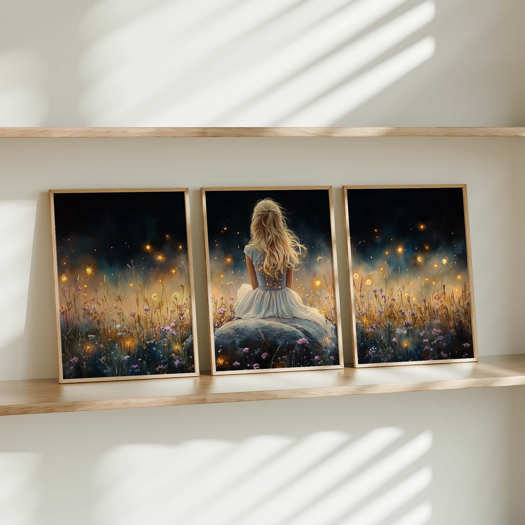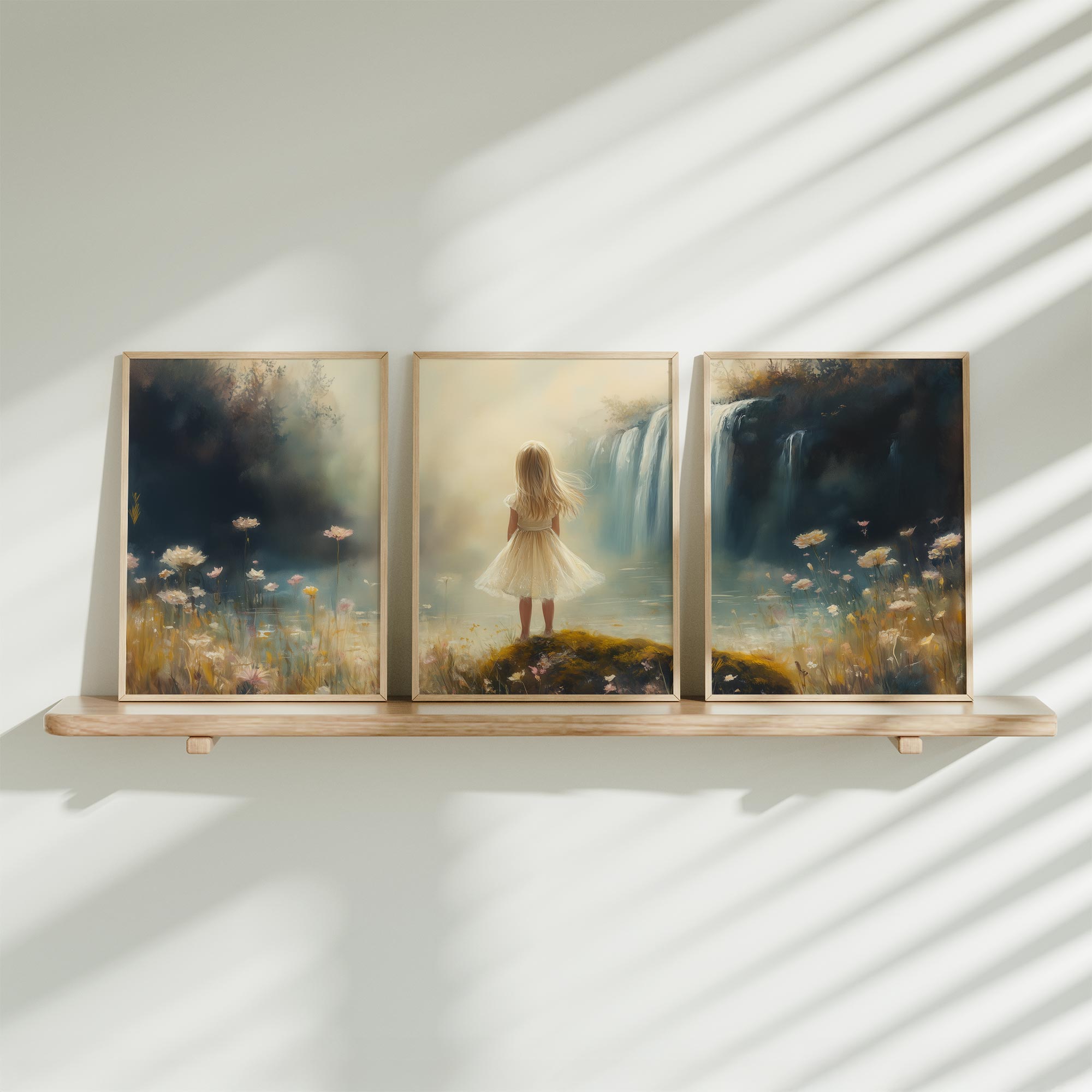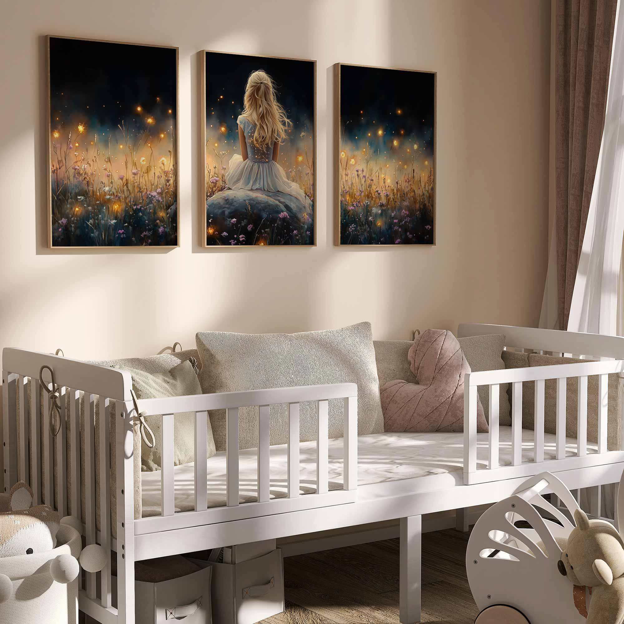 Betoverend bloemenveld met dromerige vrouw in wit