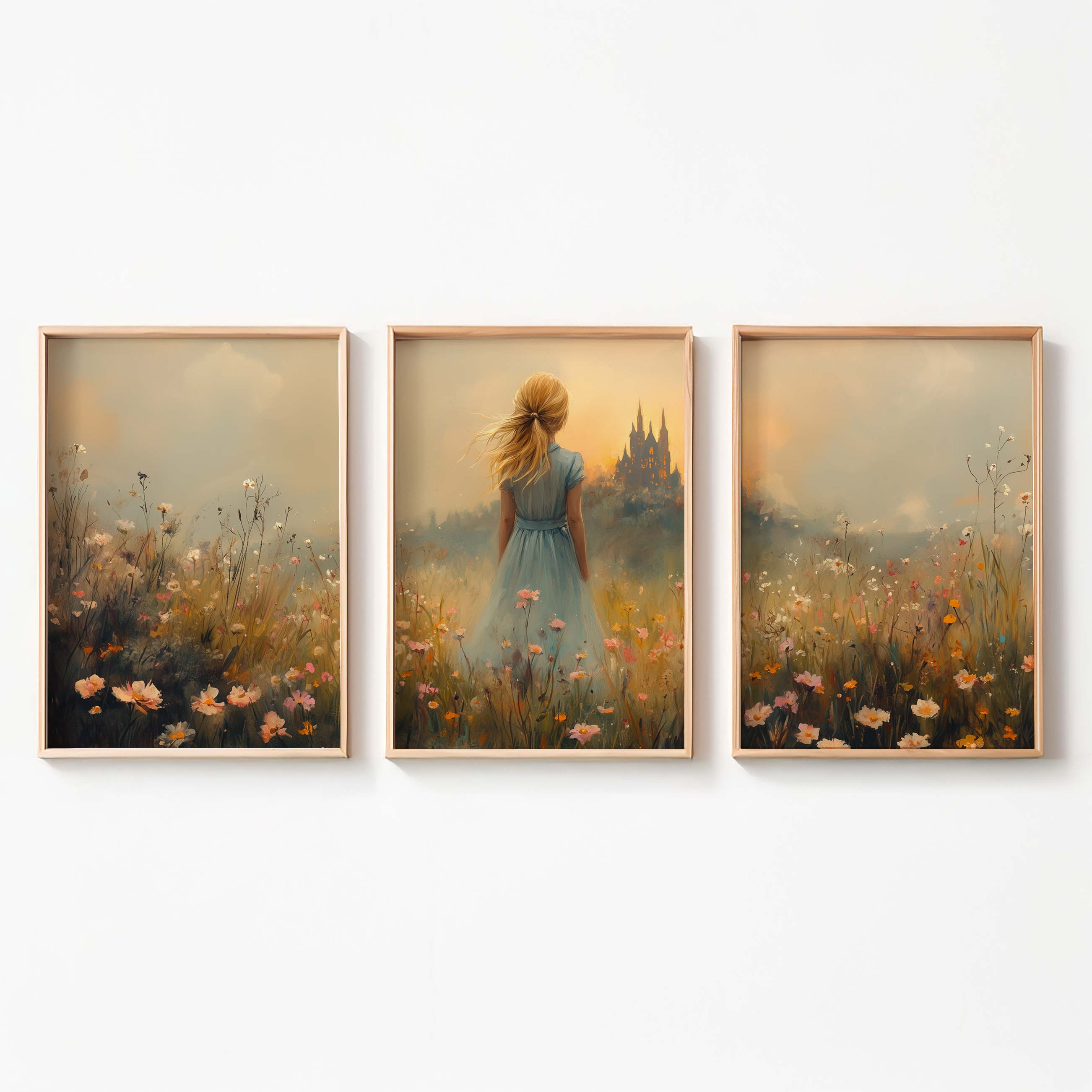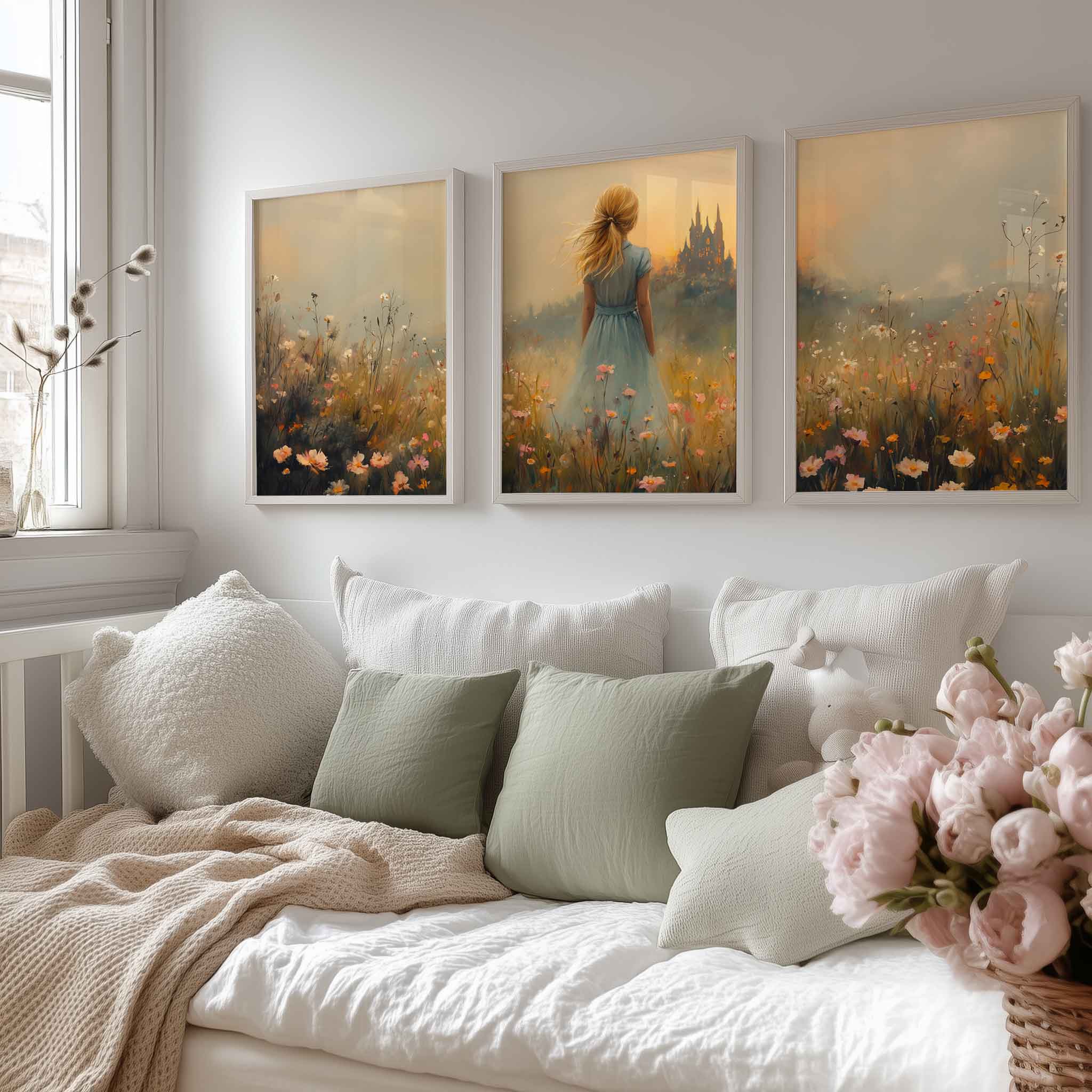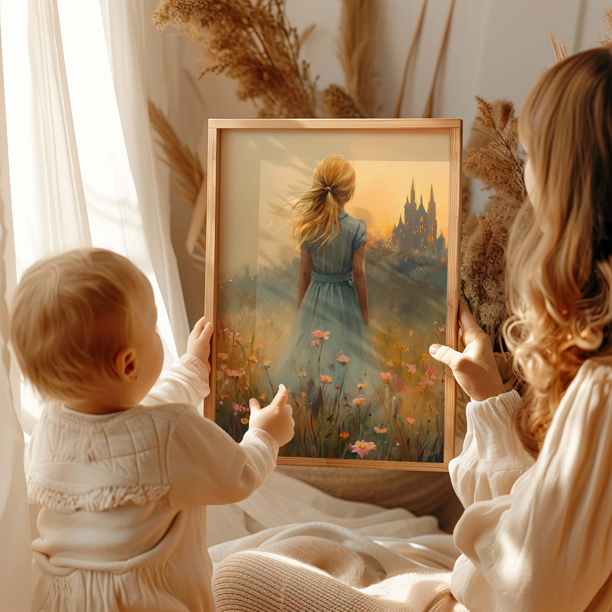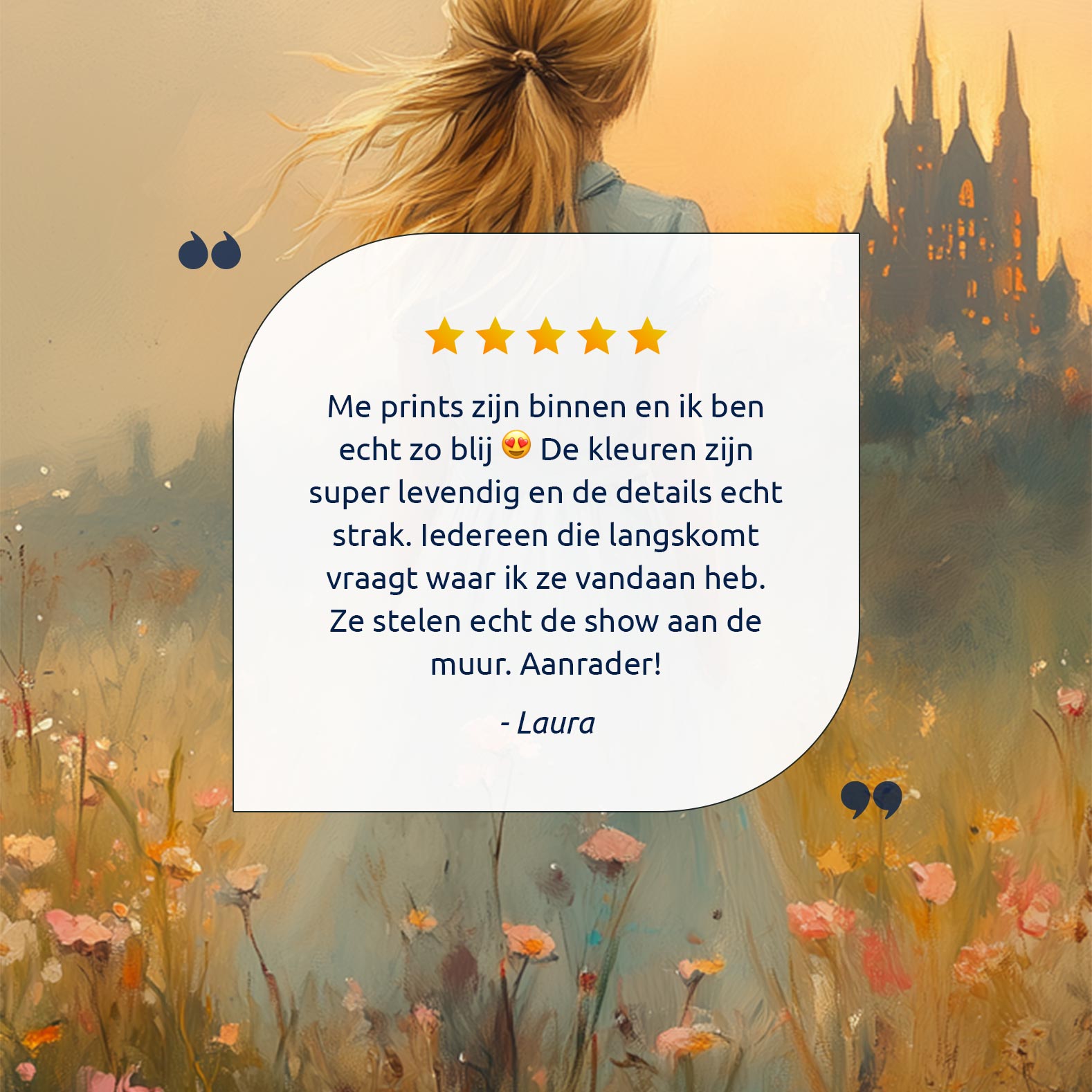 Betoverend Bloemenveld met Kasteel en Blauwe Jurk