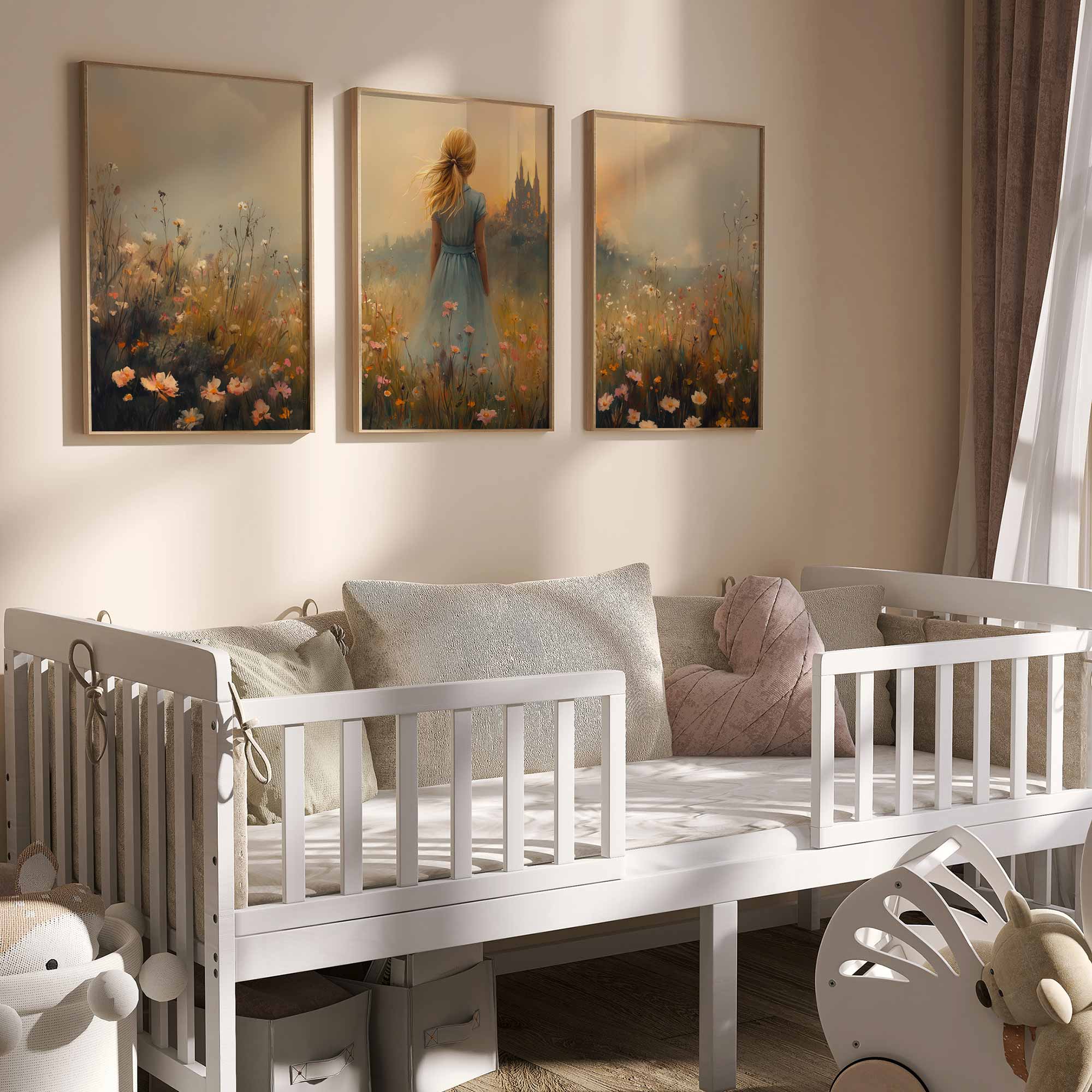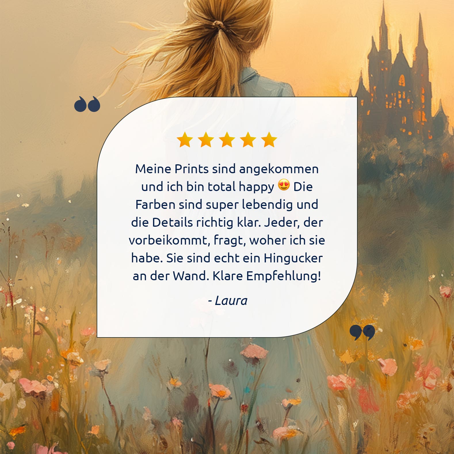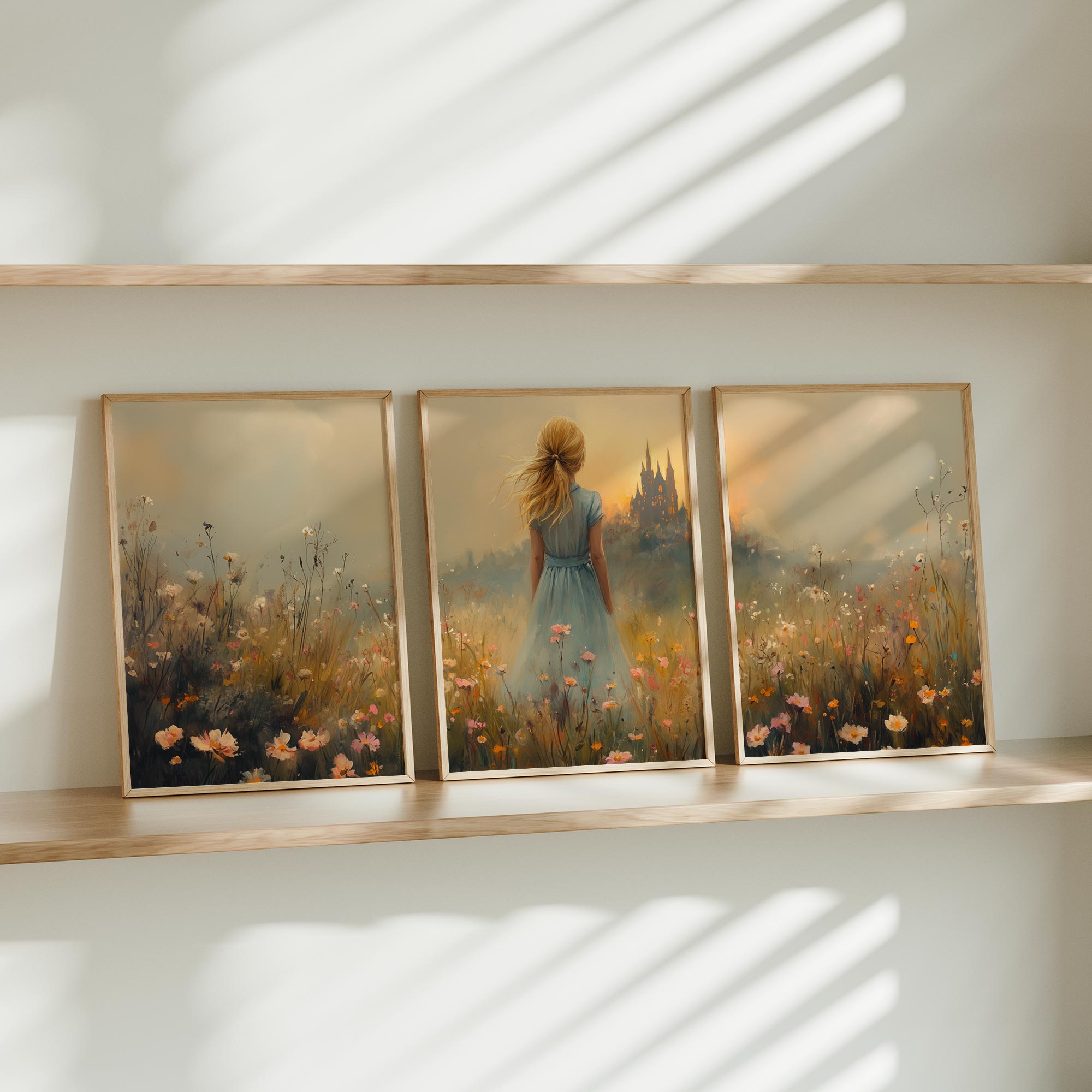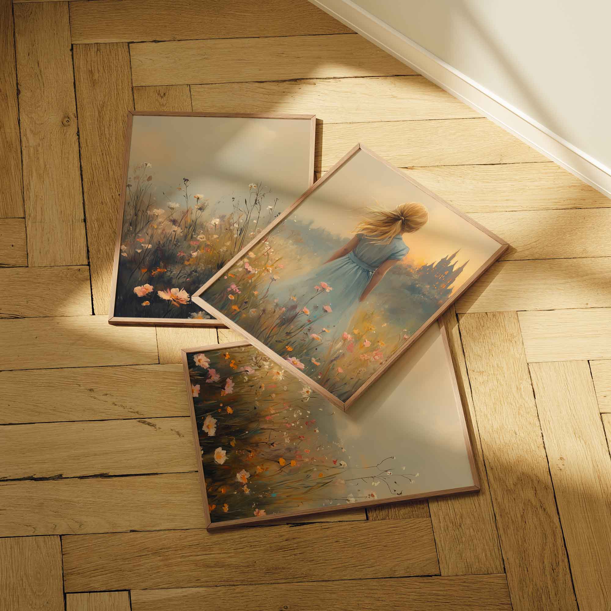 Betoverend Bloemenveld met Kasteel en Blauwe Jurk