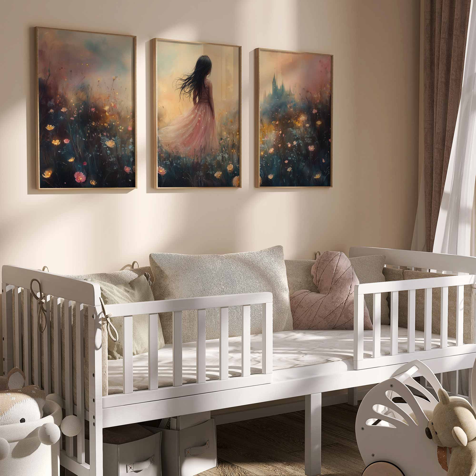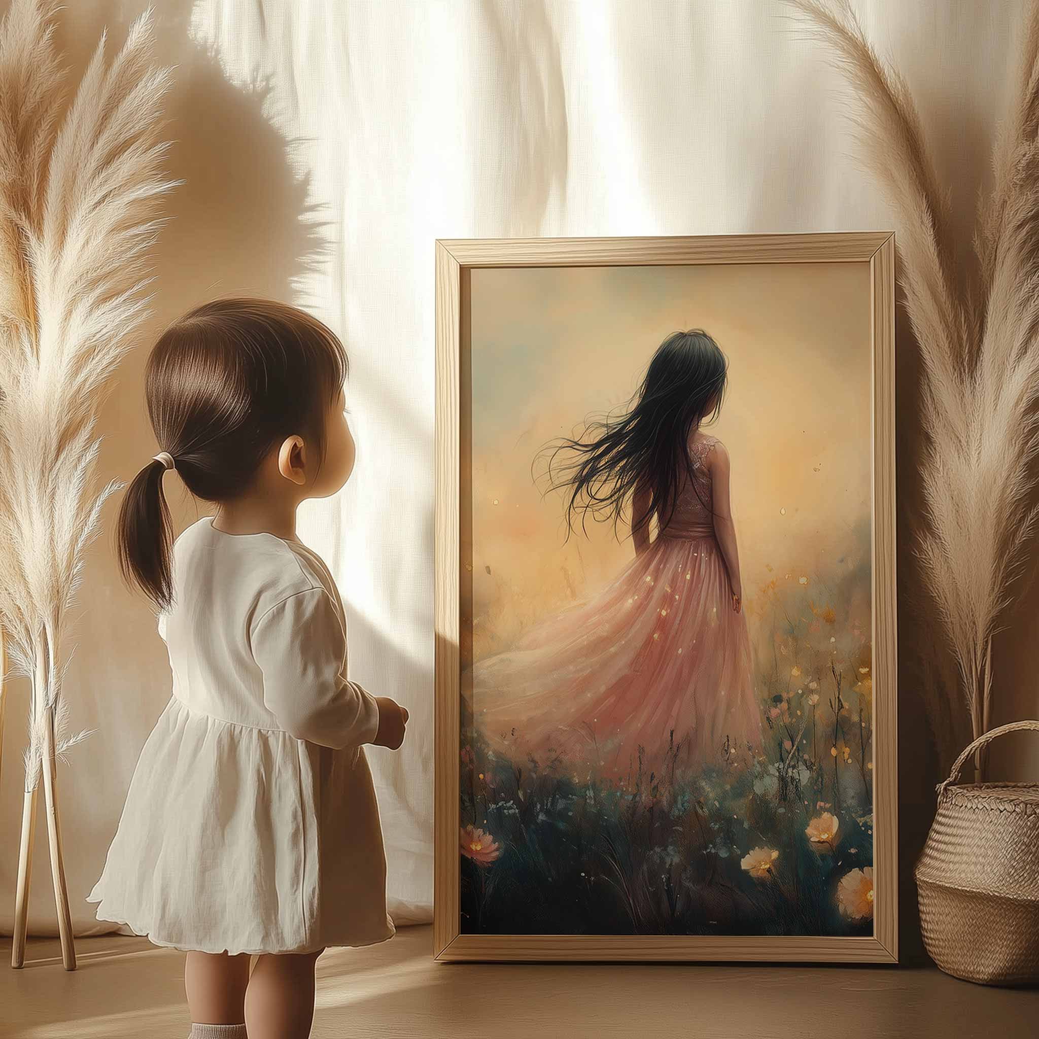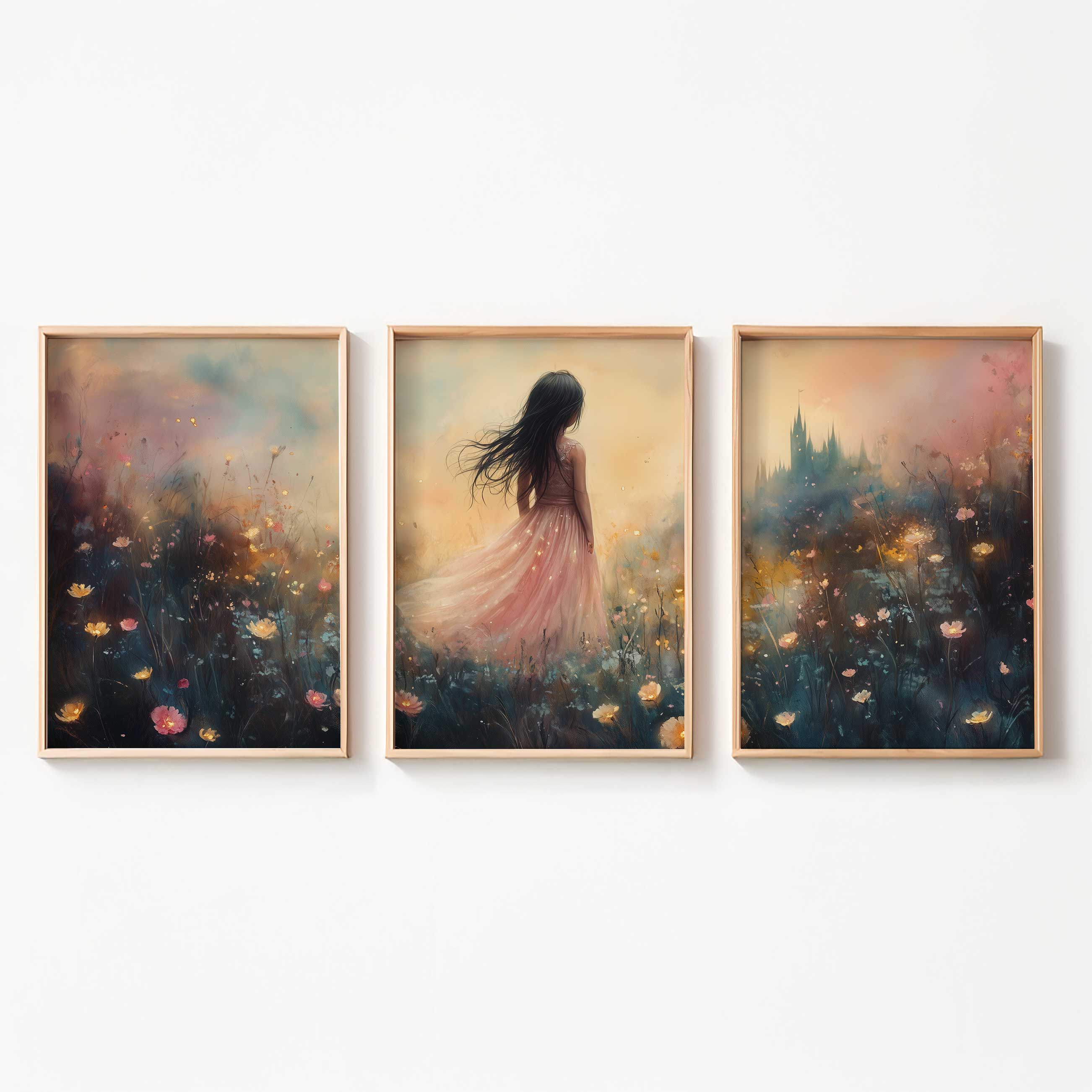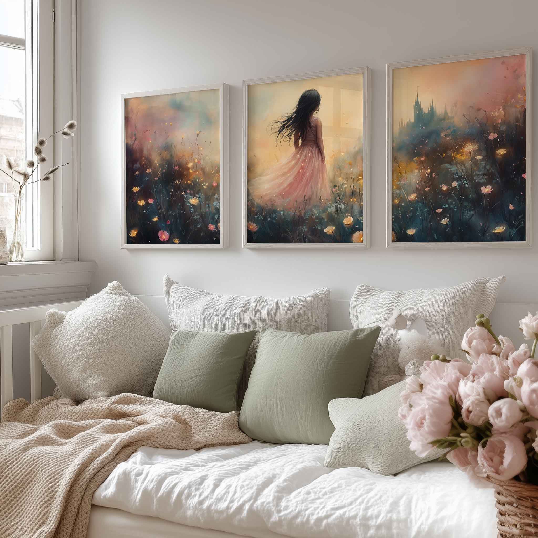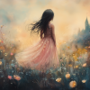 Terug naar collectie Posters Betoverend Kasteel met Roze Jurk in Bloemenveld