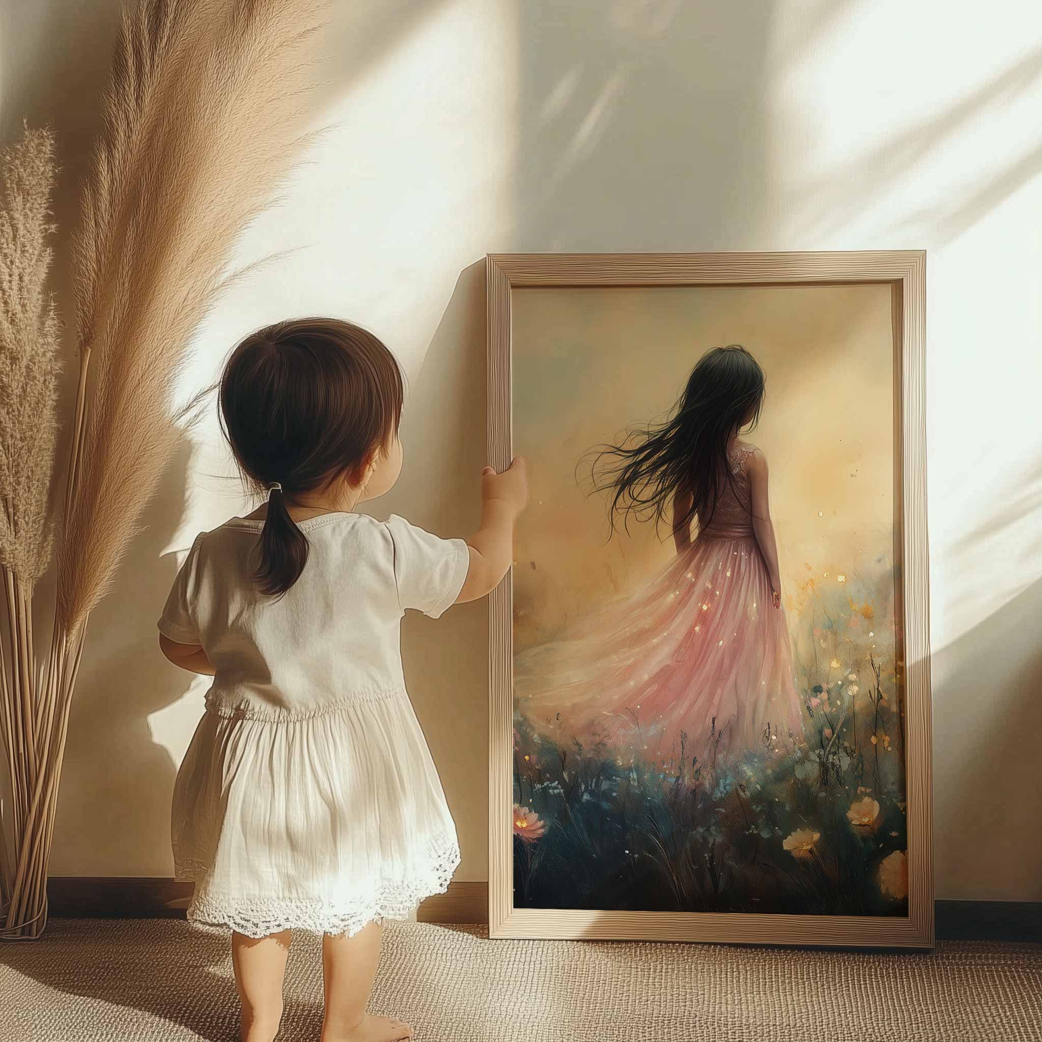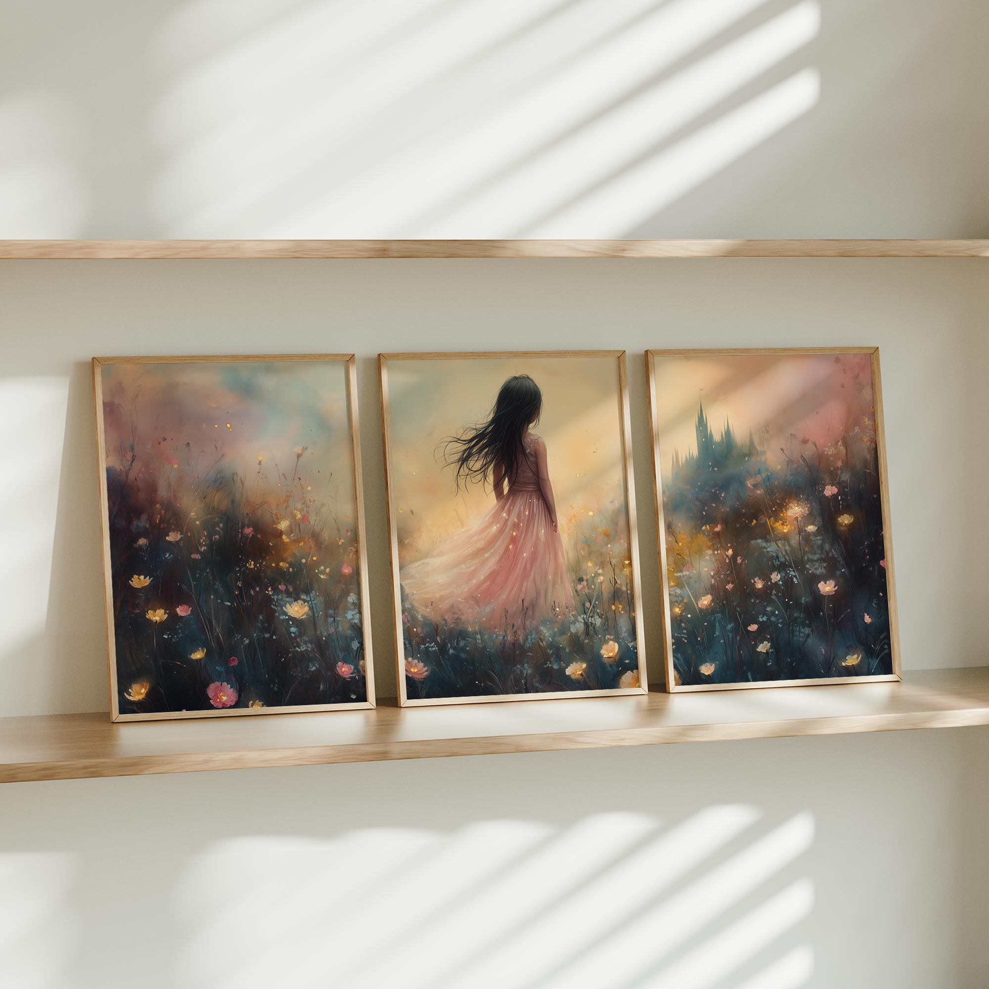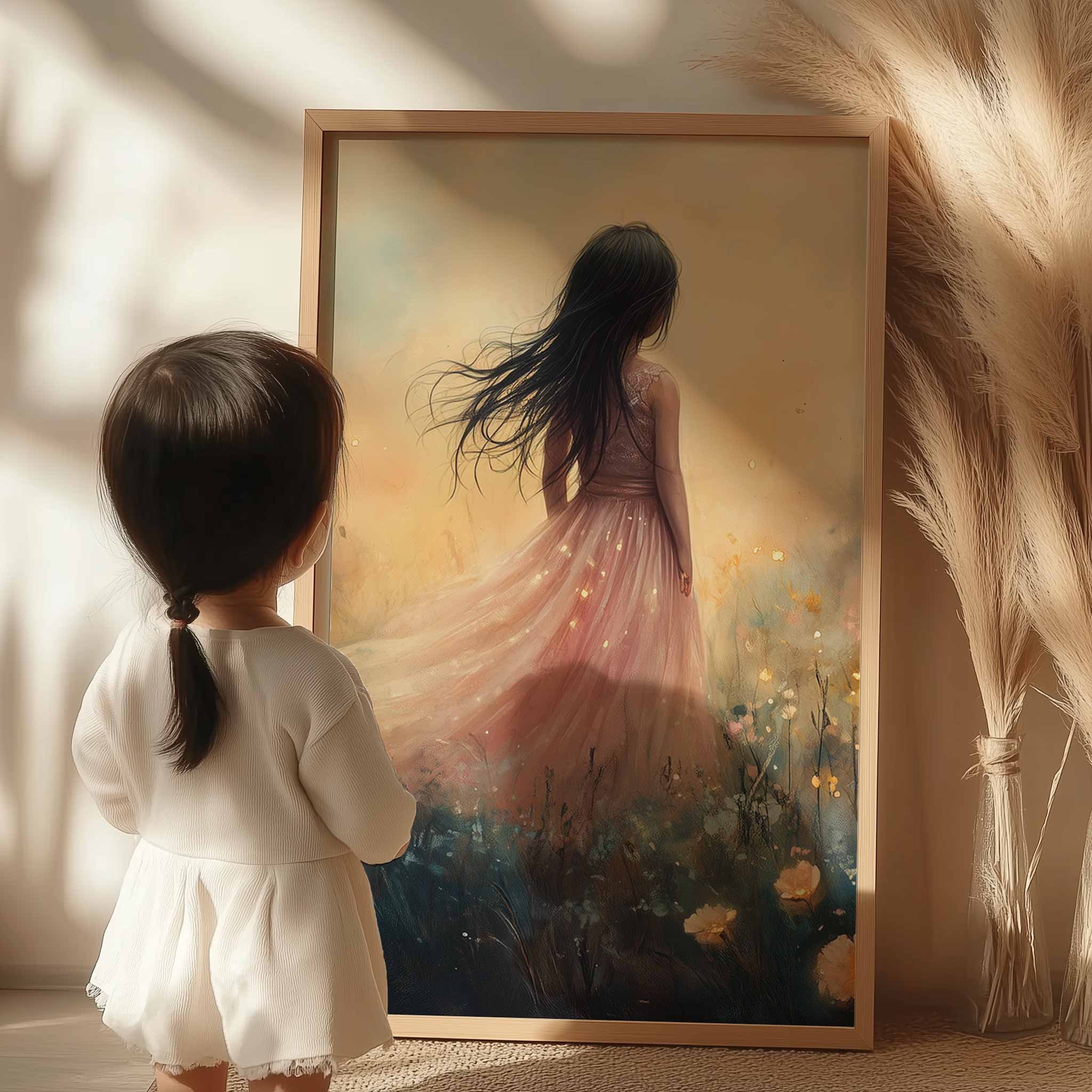 Terug naar collectie Posters Betoverend Kasteel met Roze Jurk in Bloemenveld