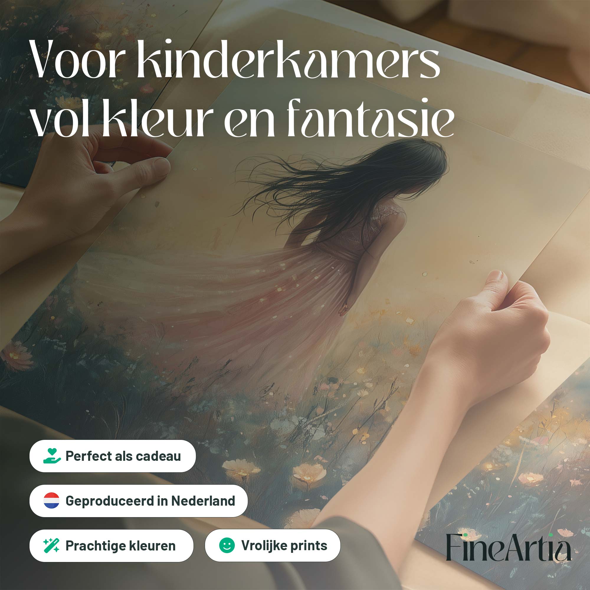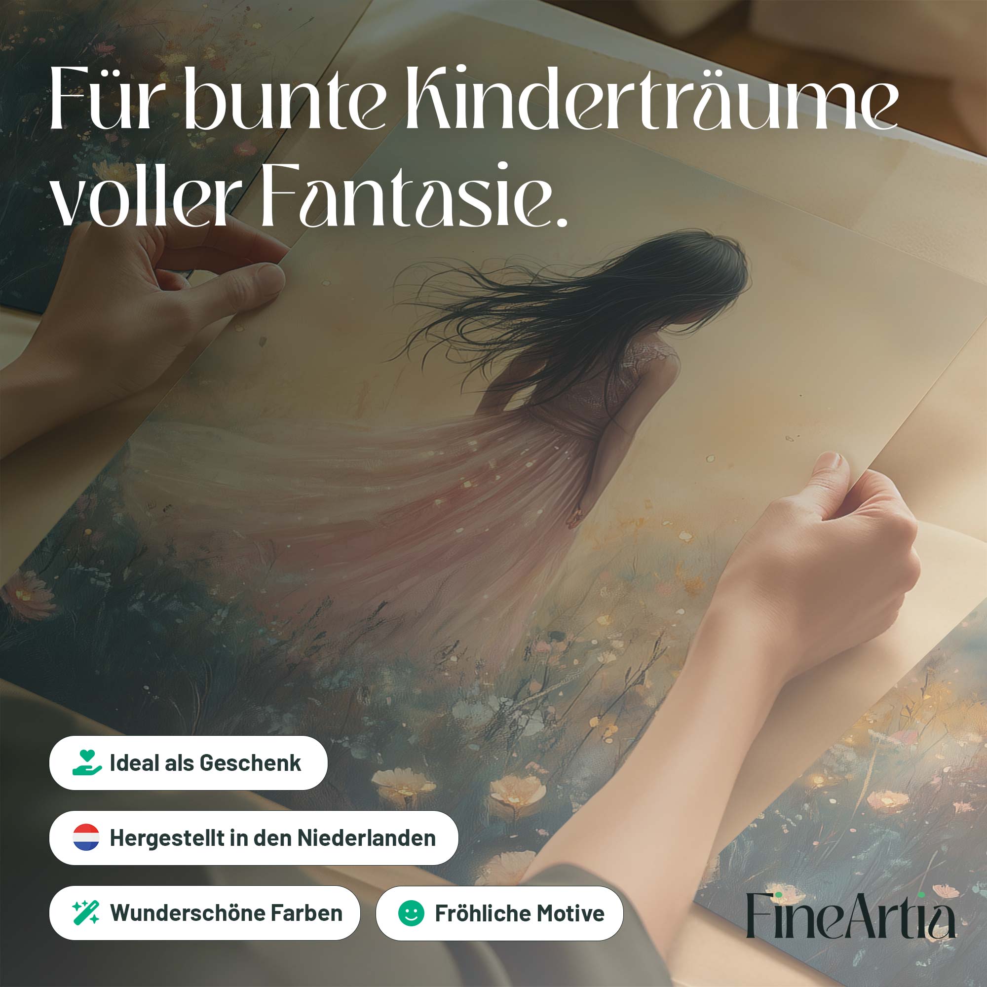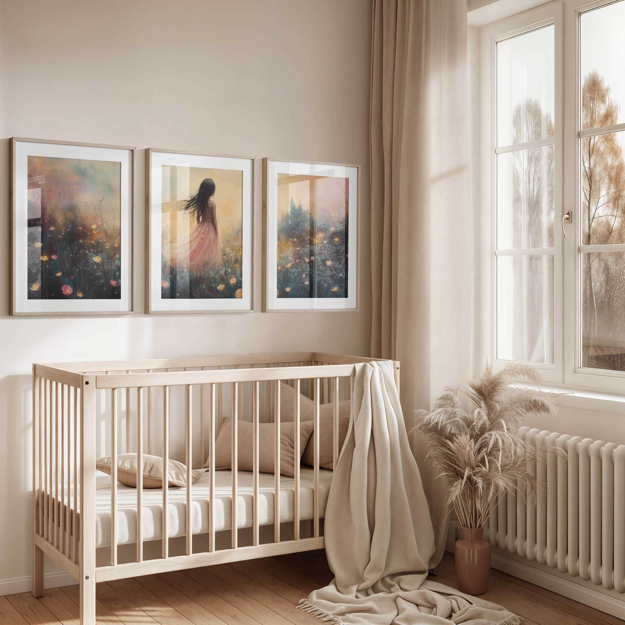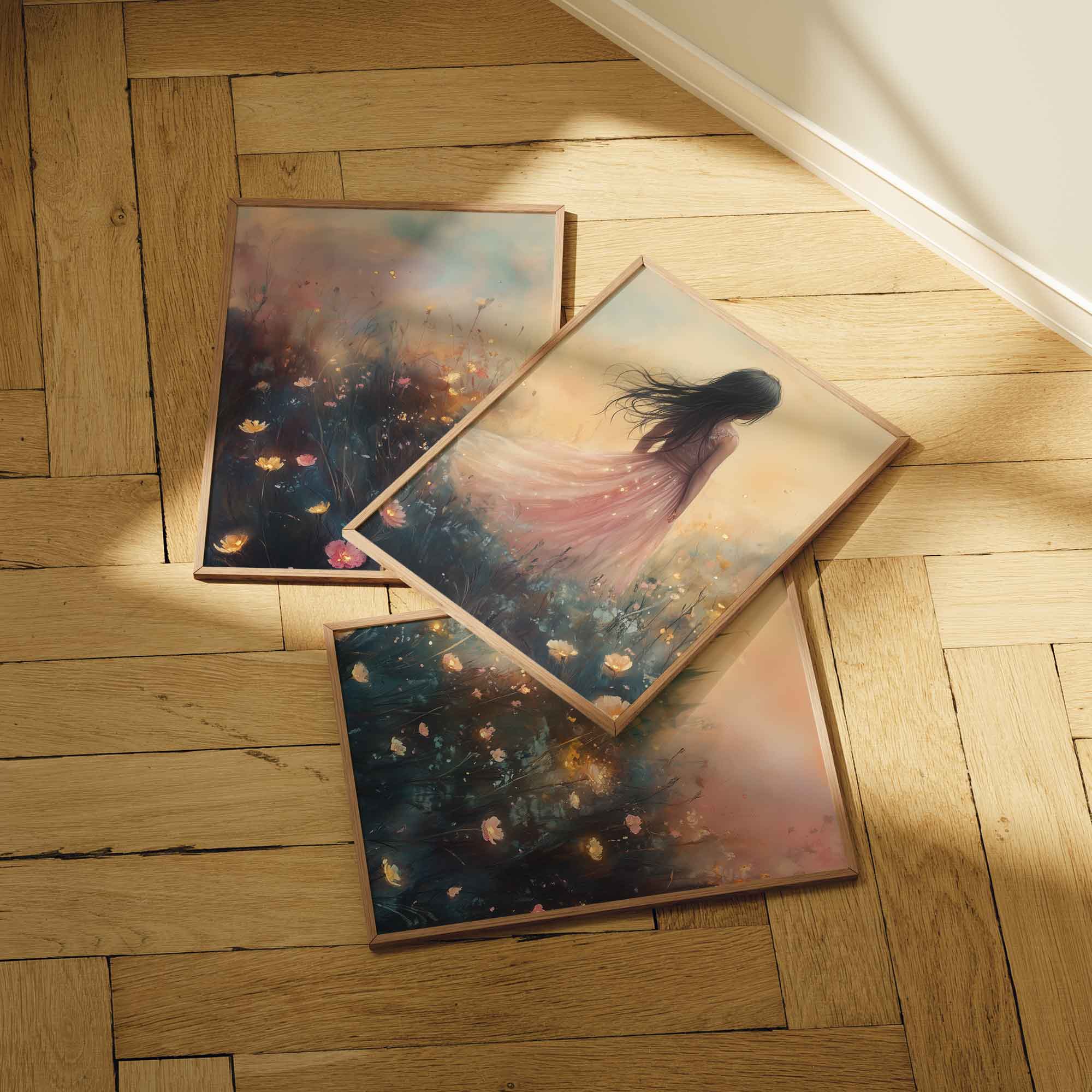 Terug naar collectie Posters Betoverend Kasteel met Roze Jurk in Bloemenveld