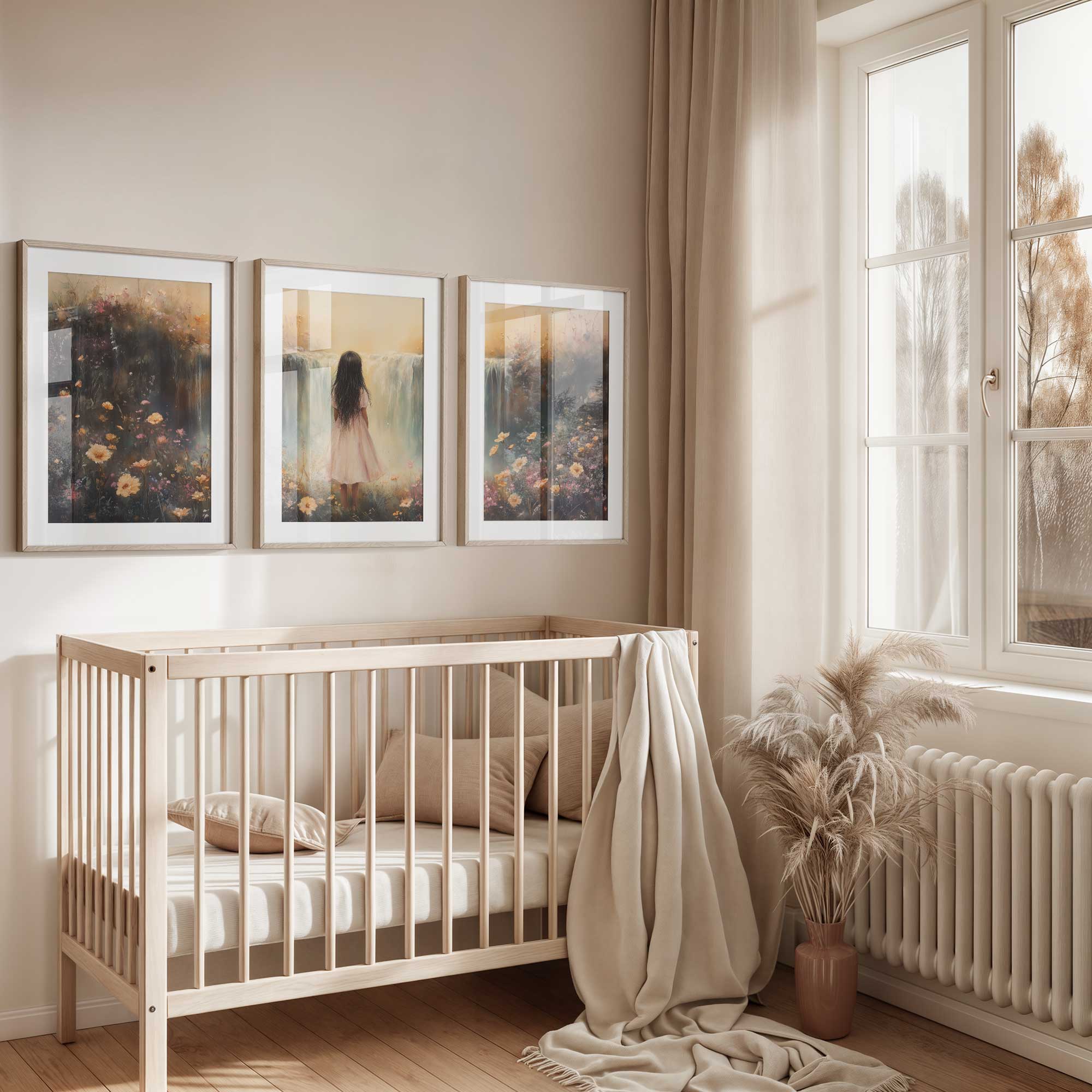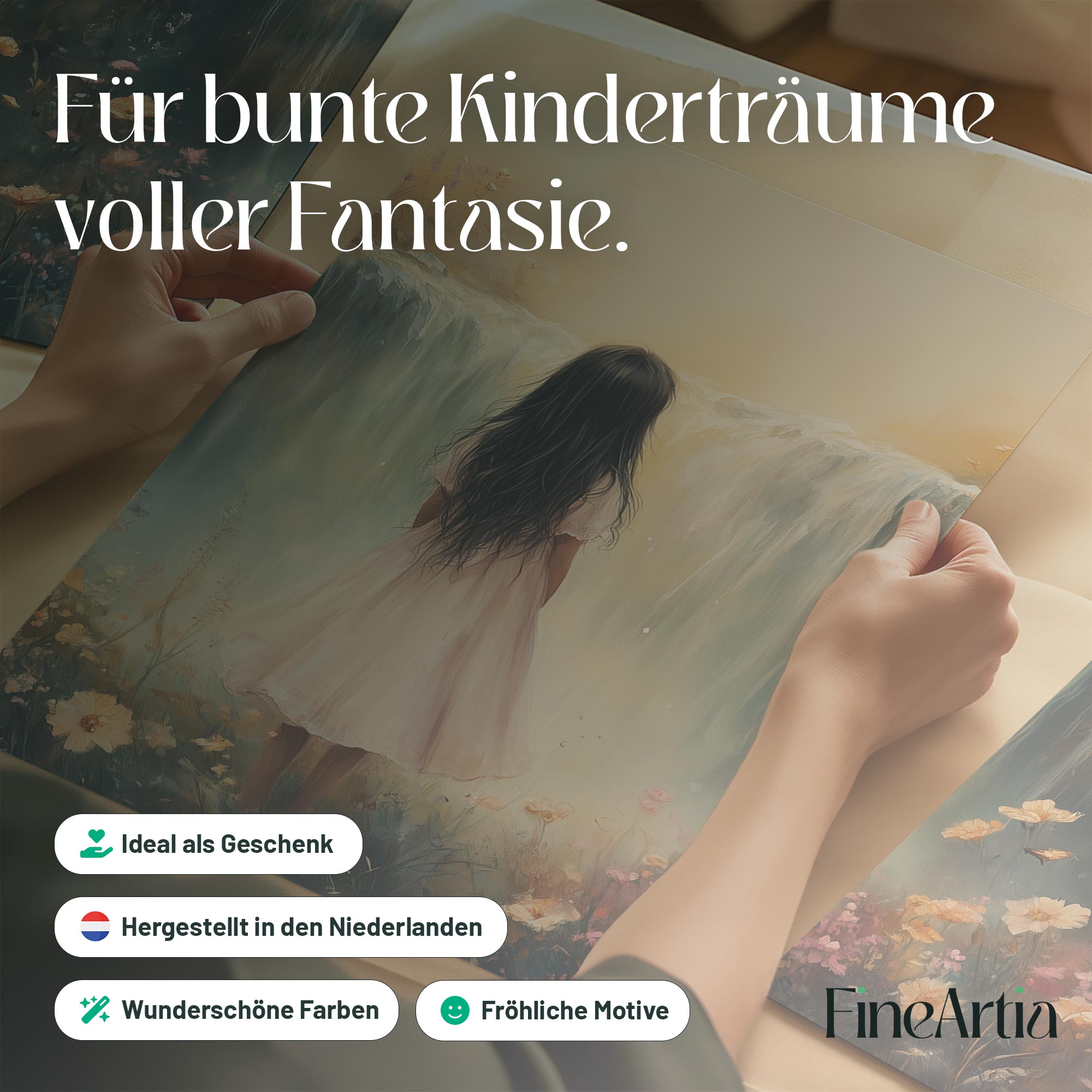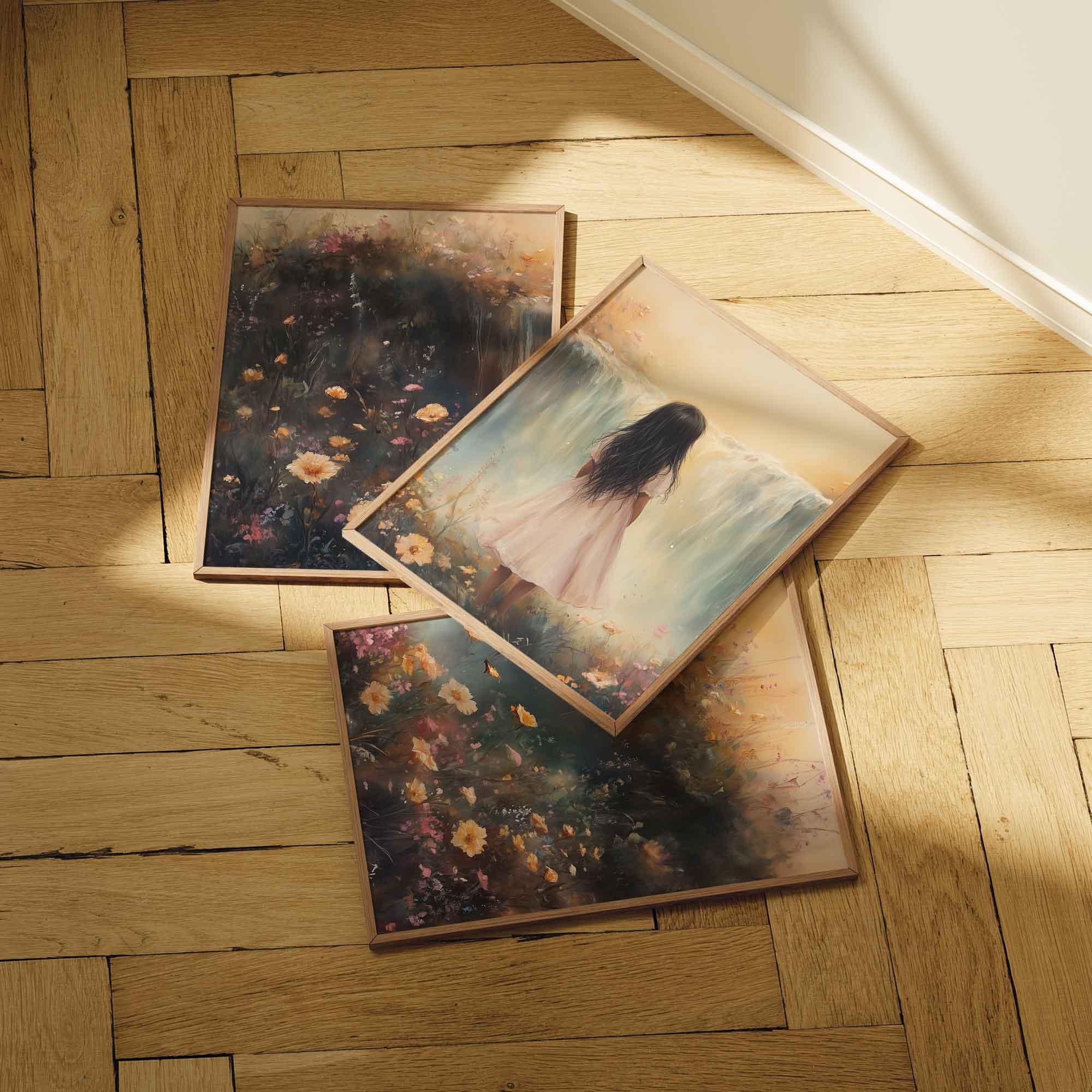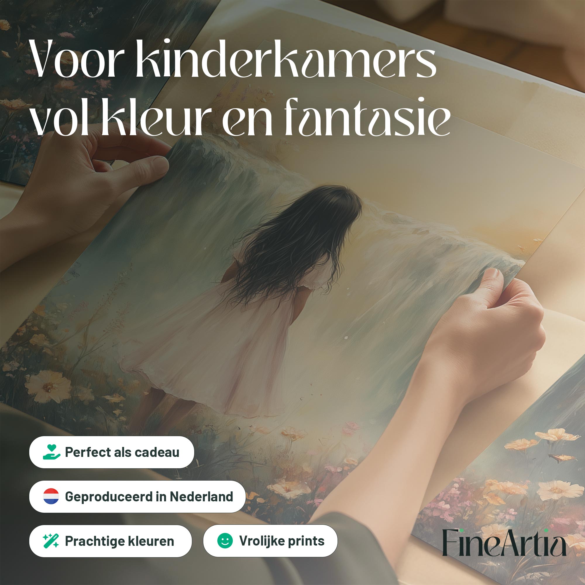 Betoverend Meisje bij Waterval in Pastel Bloemenveld