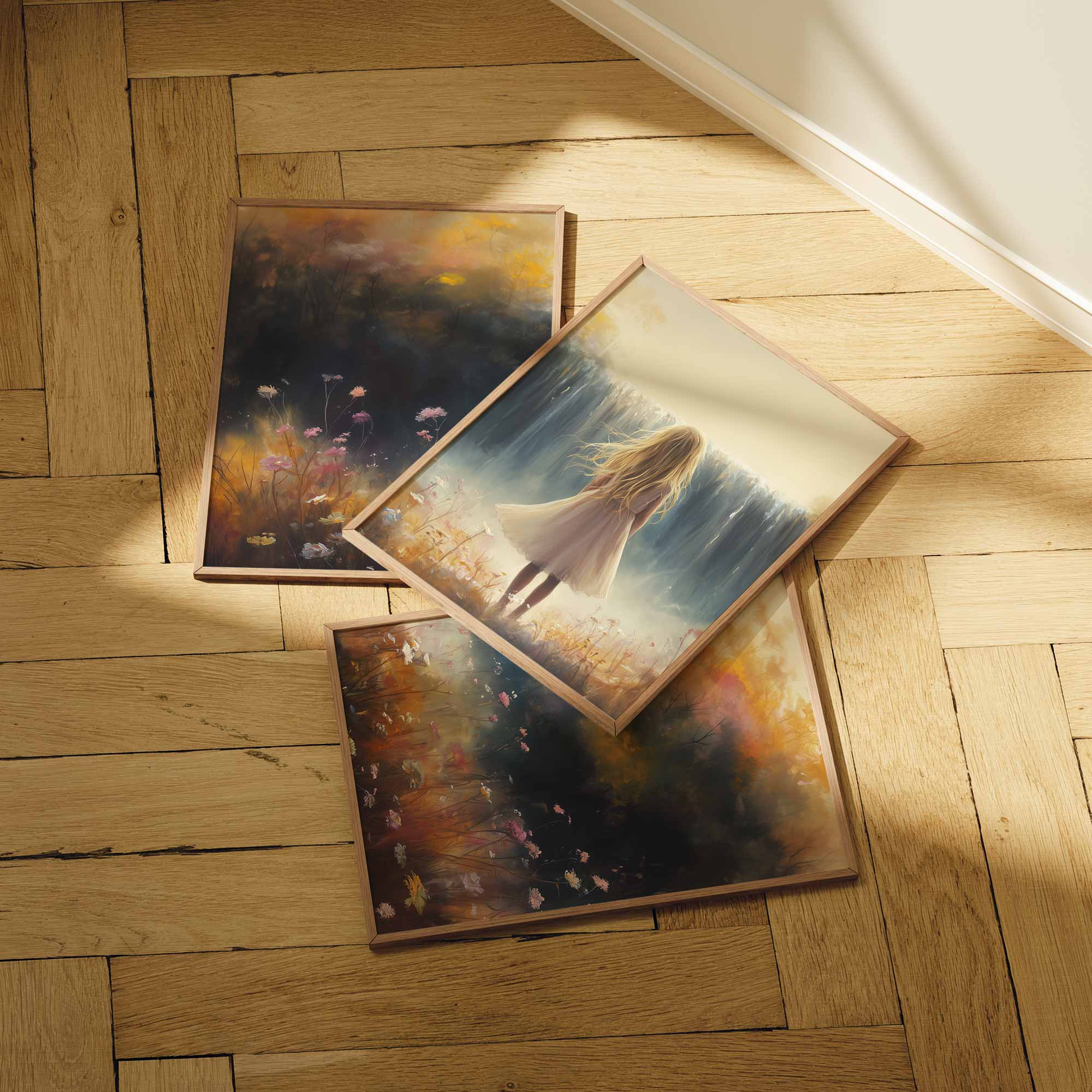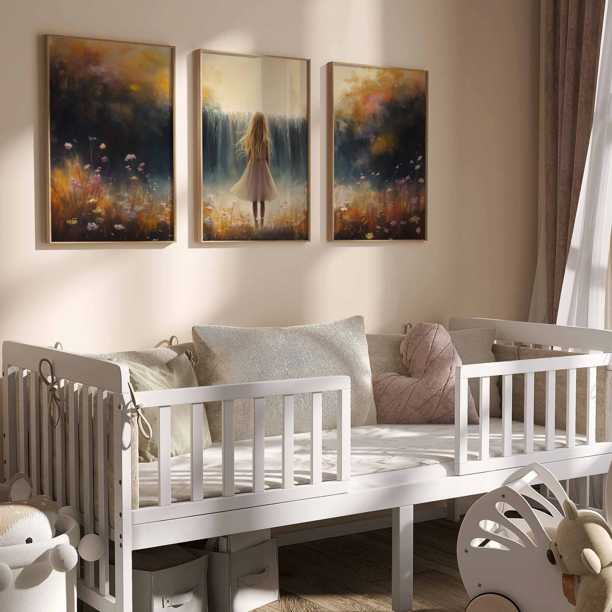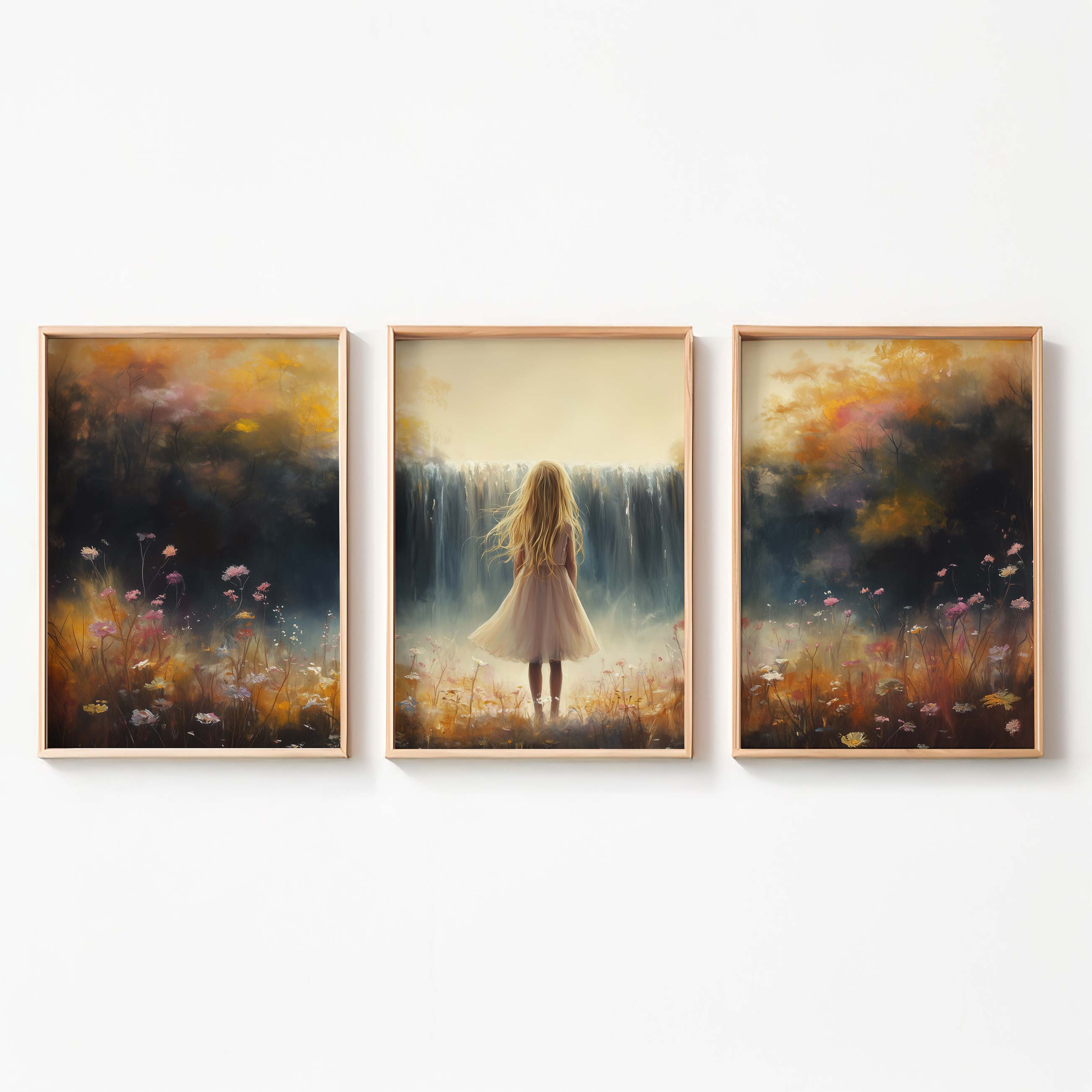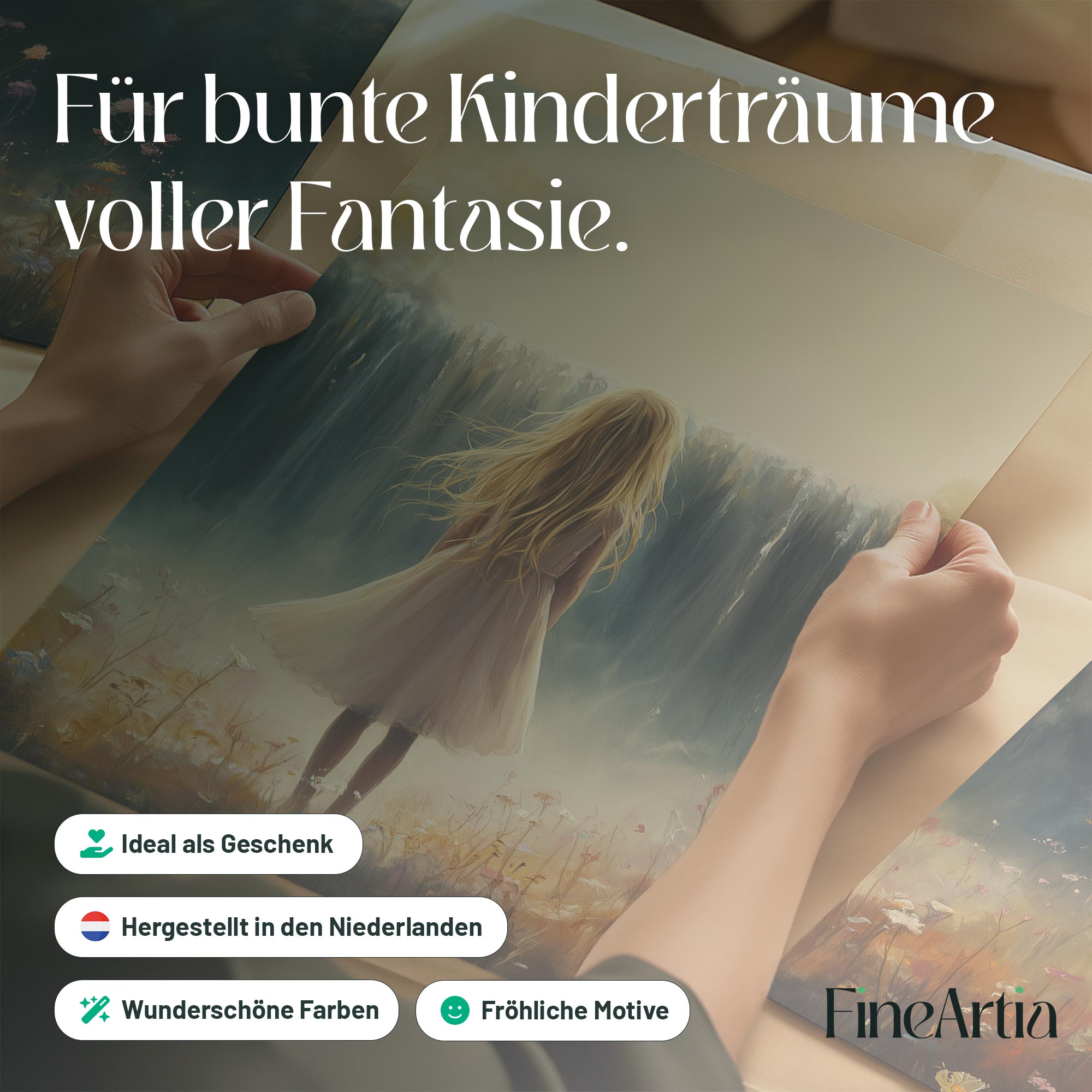Betoverend Meisje bij Waterval in Pastel Droomwereld