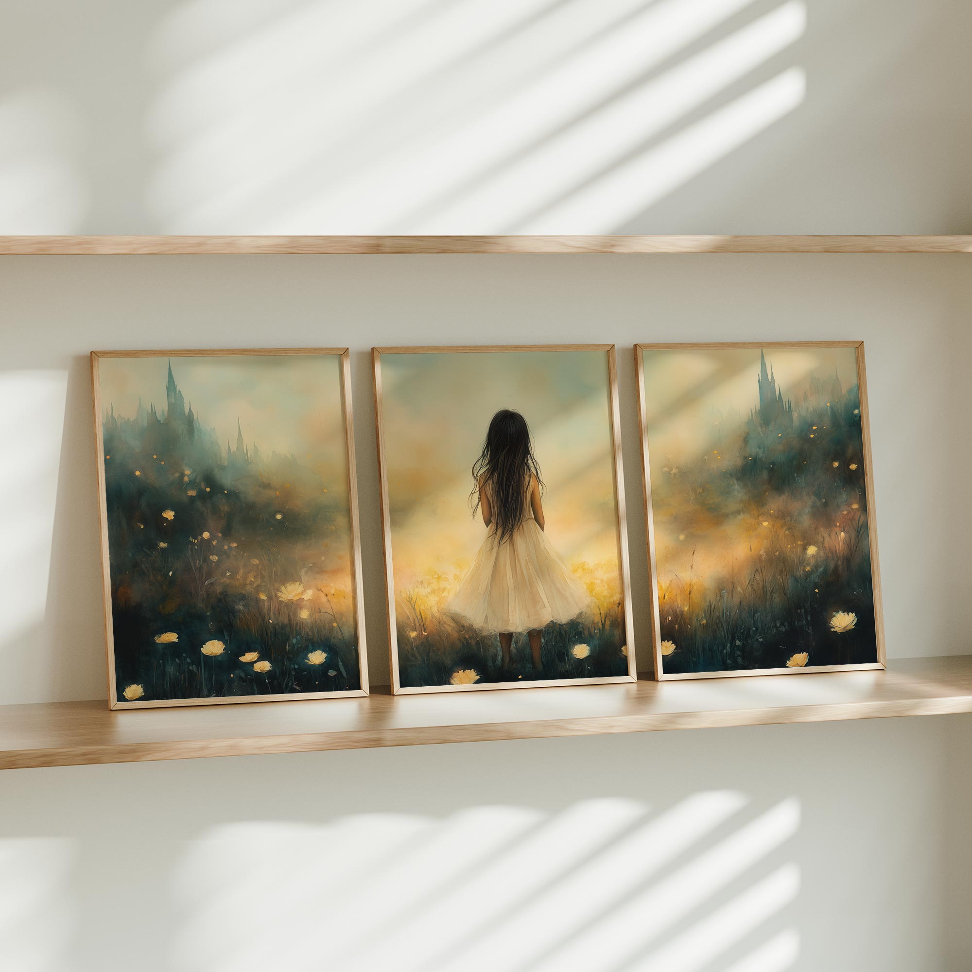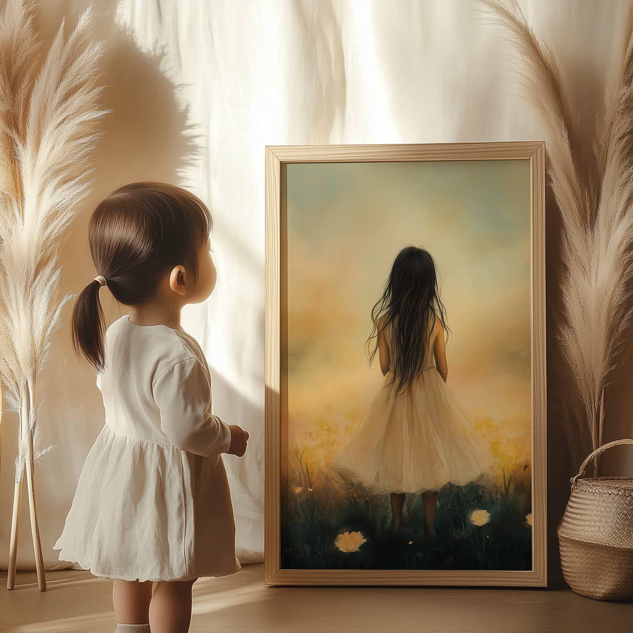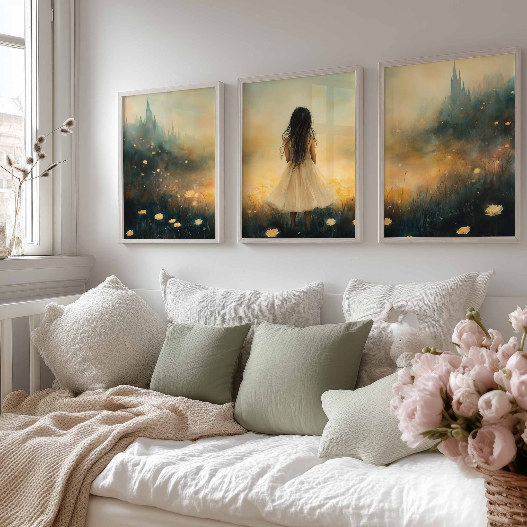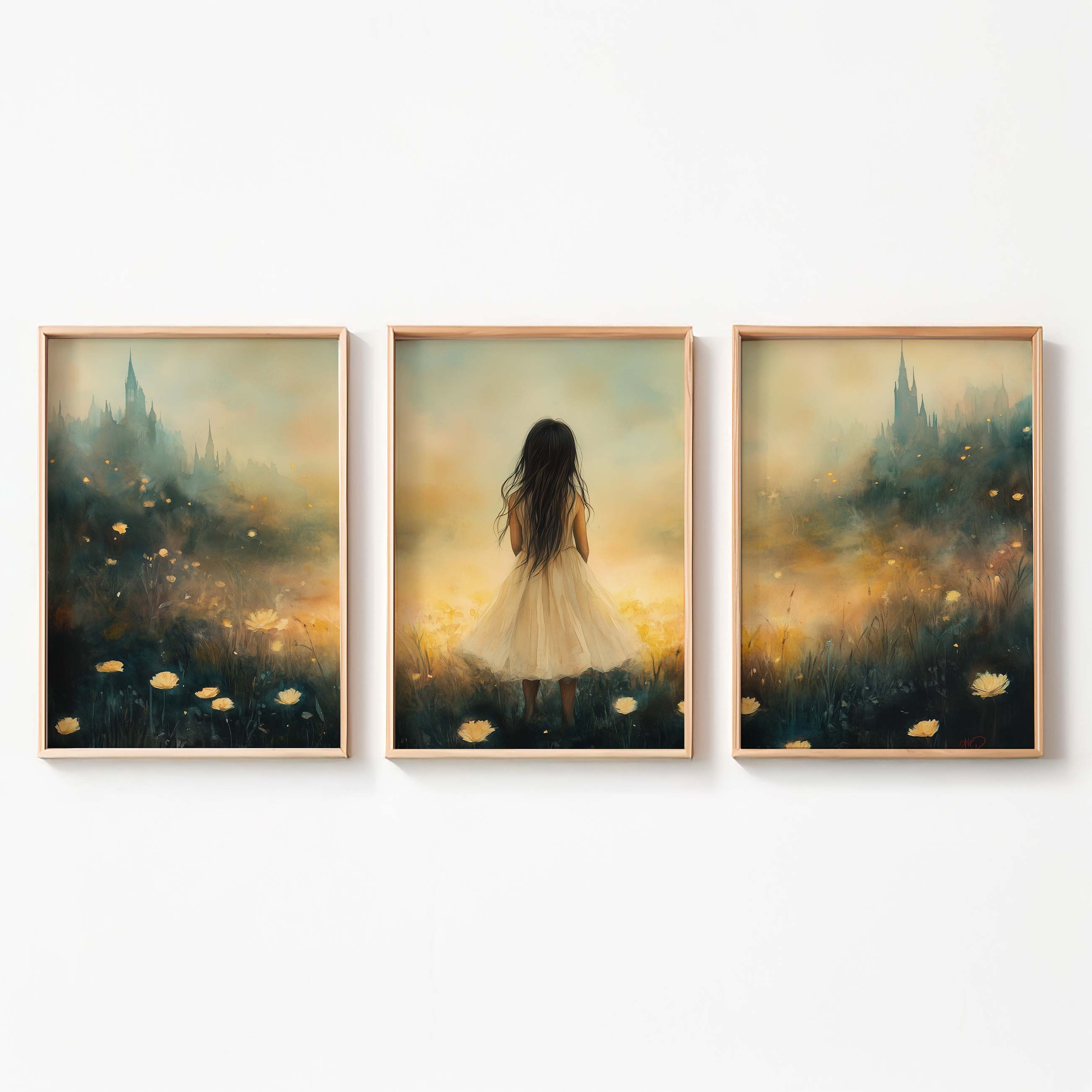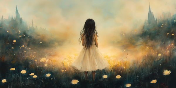 Betoverend Meisje in Bloemenveld met Kasteel