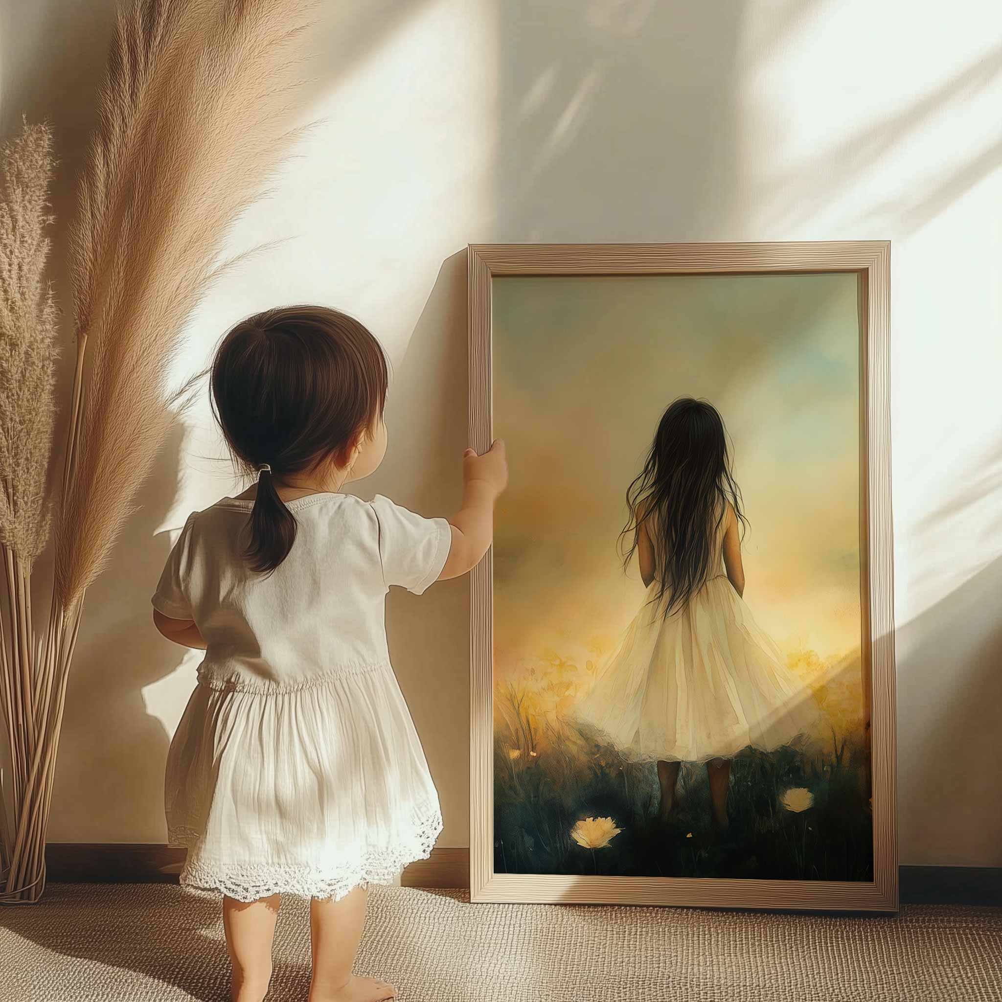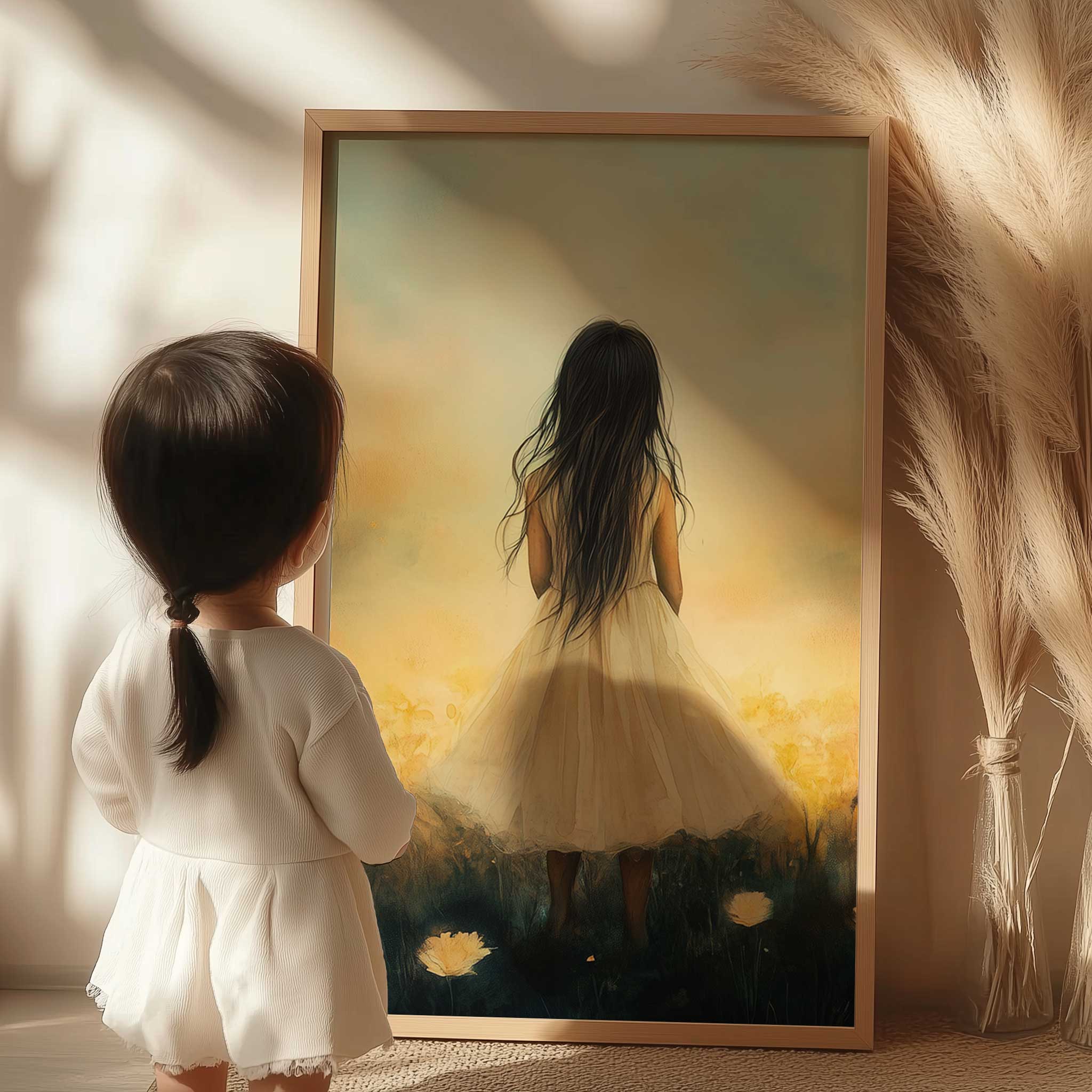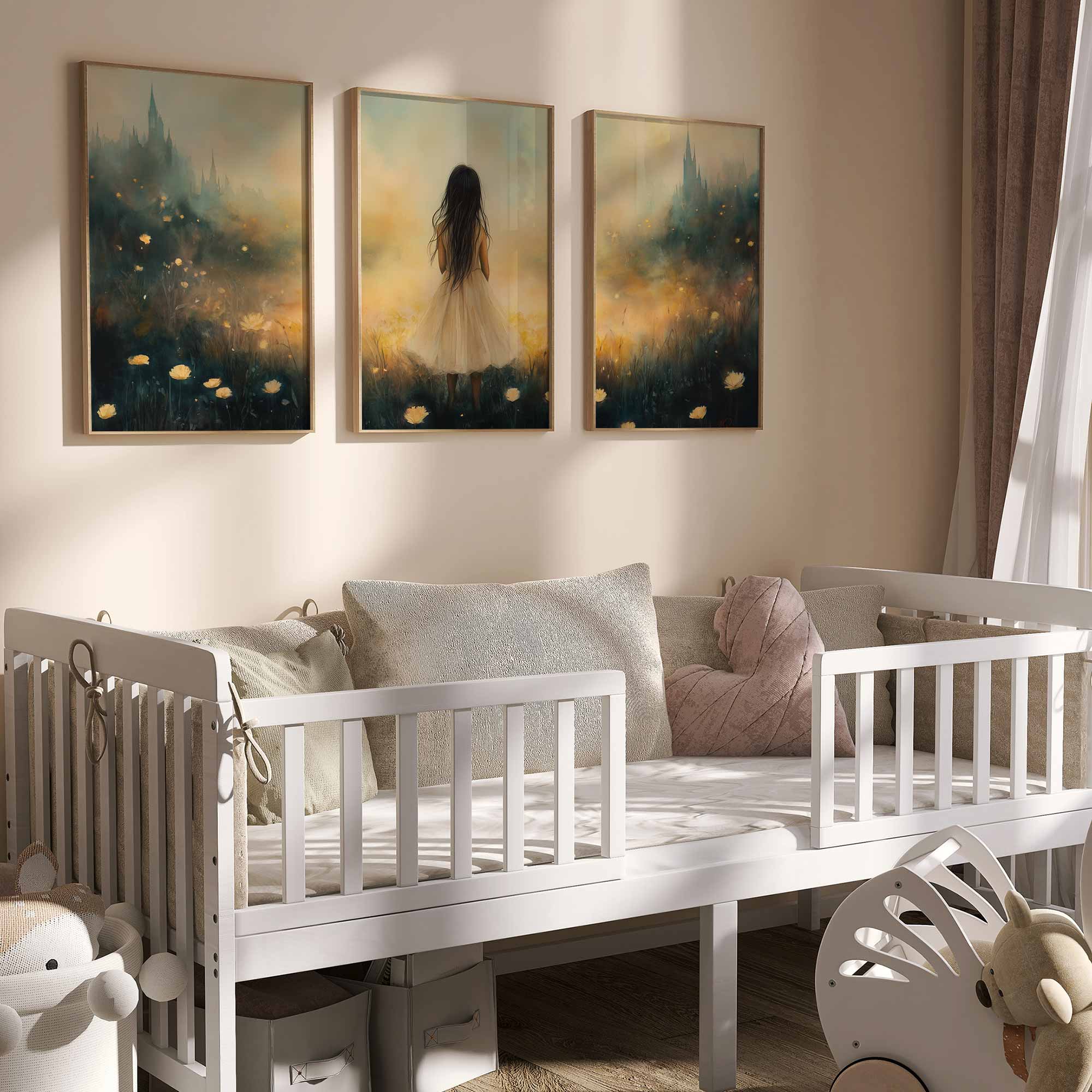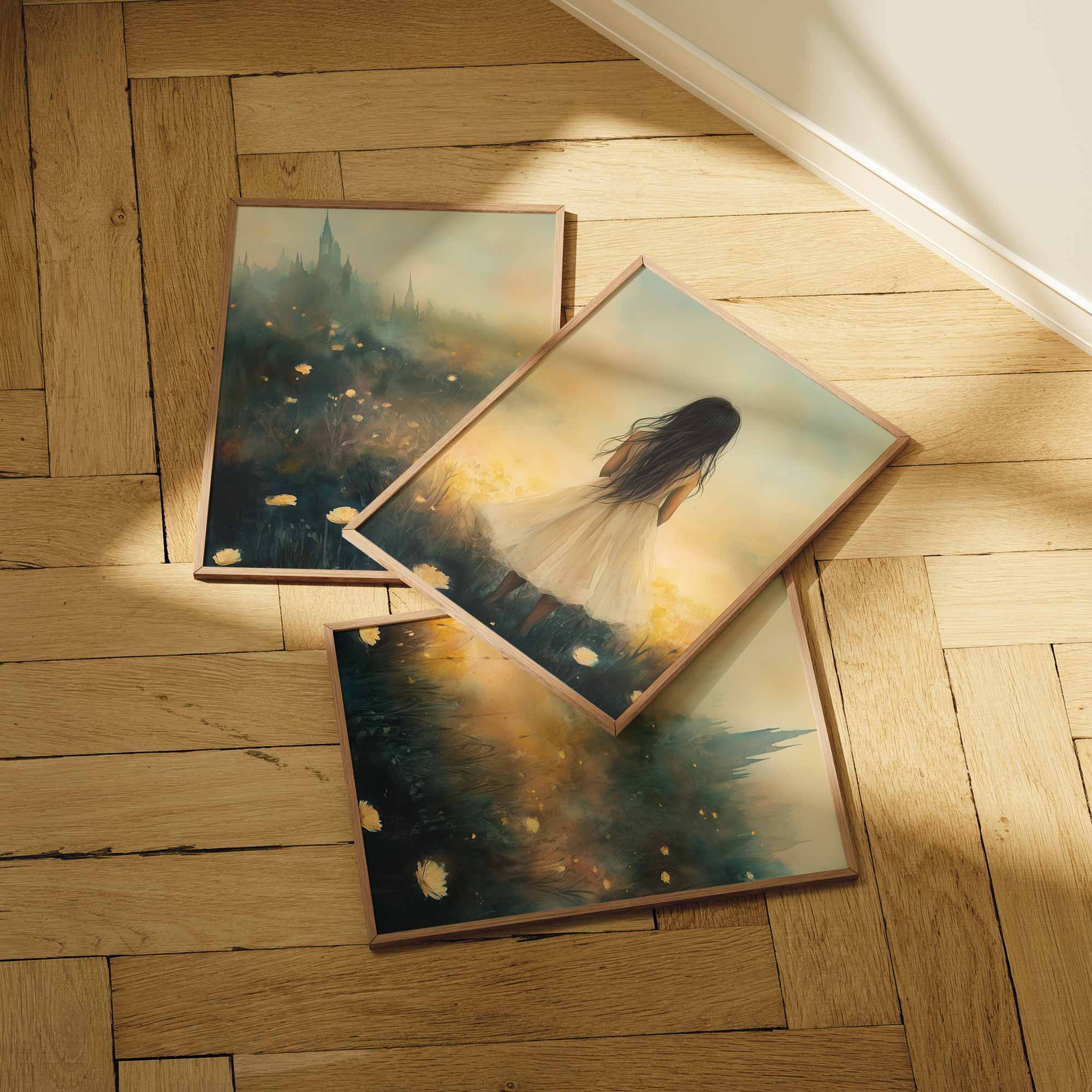 Betoverend Meisje in Bloemenveld met Kasteel