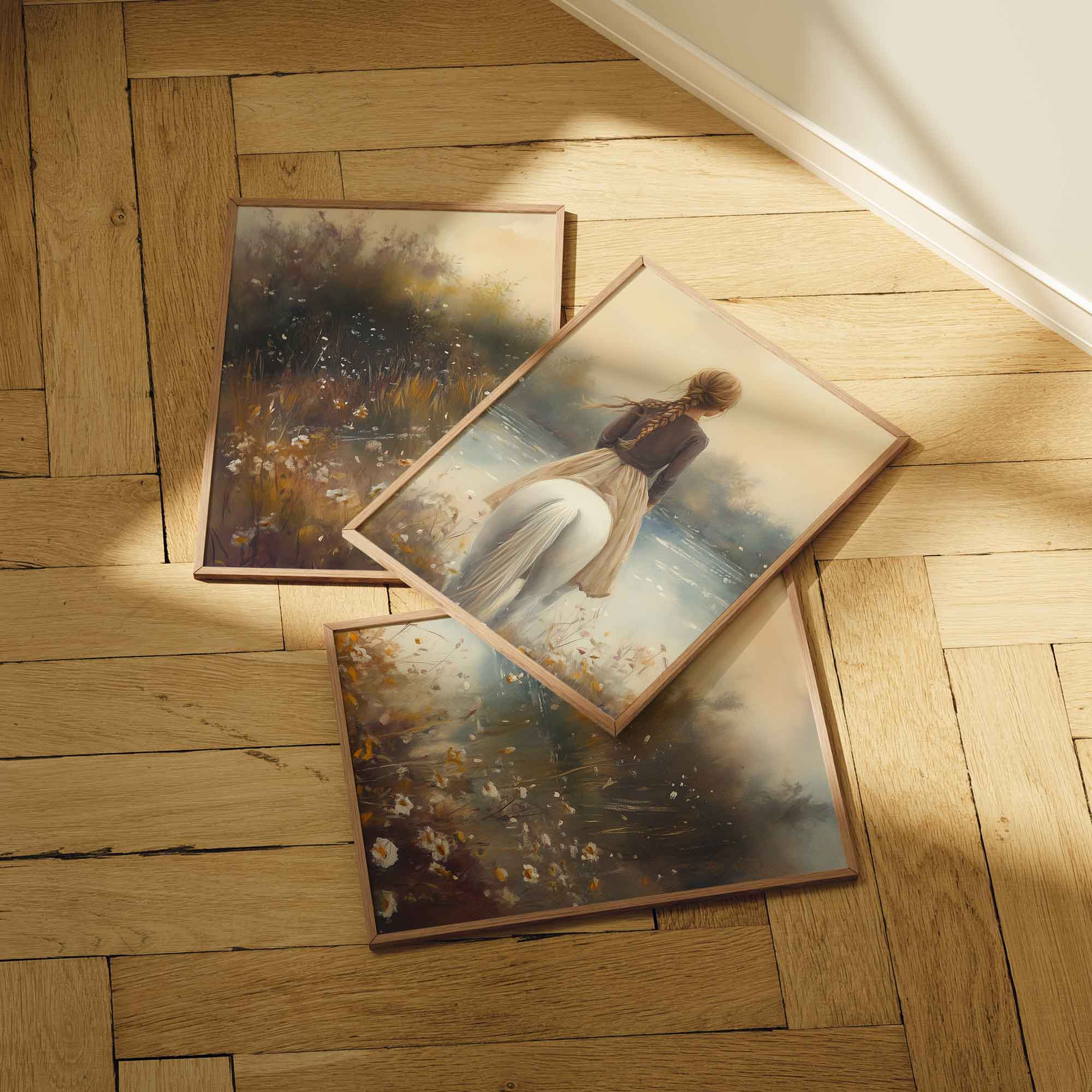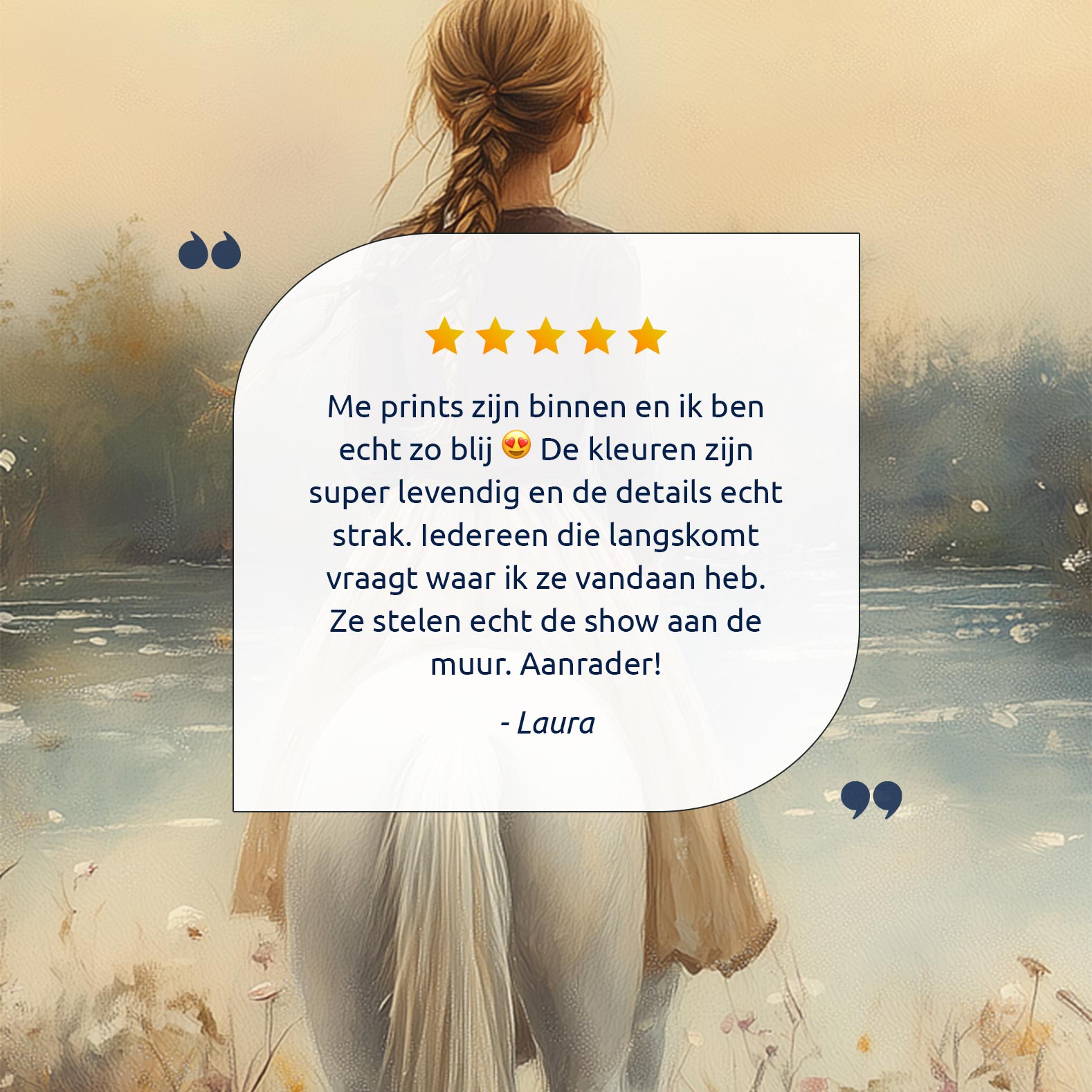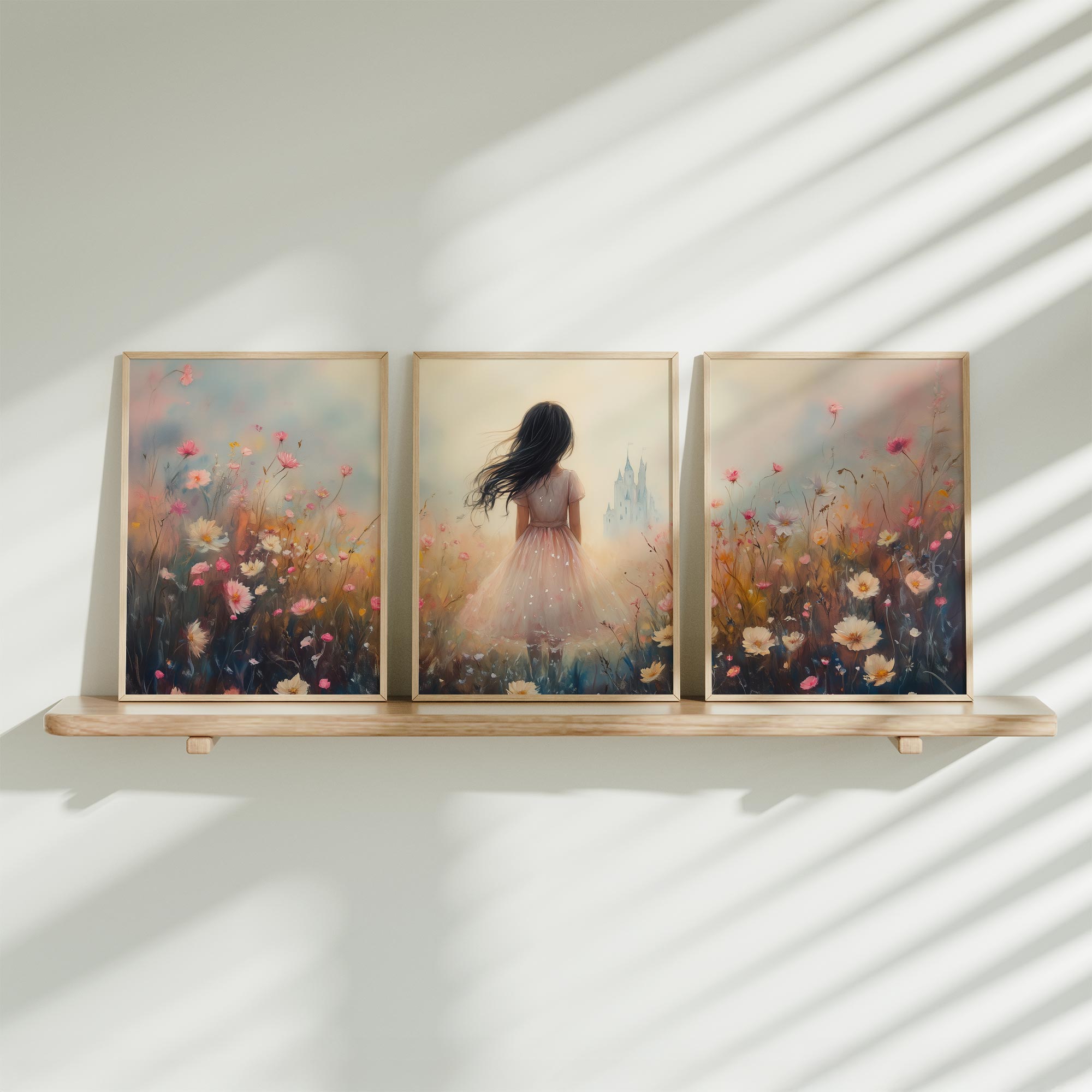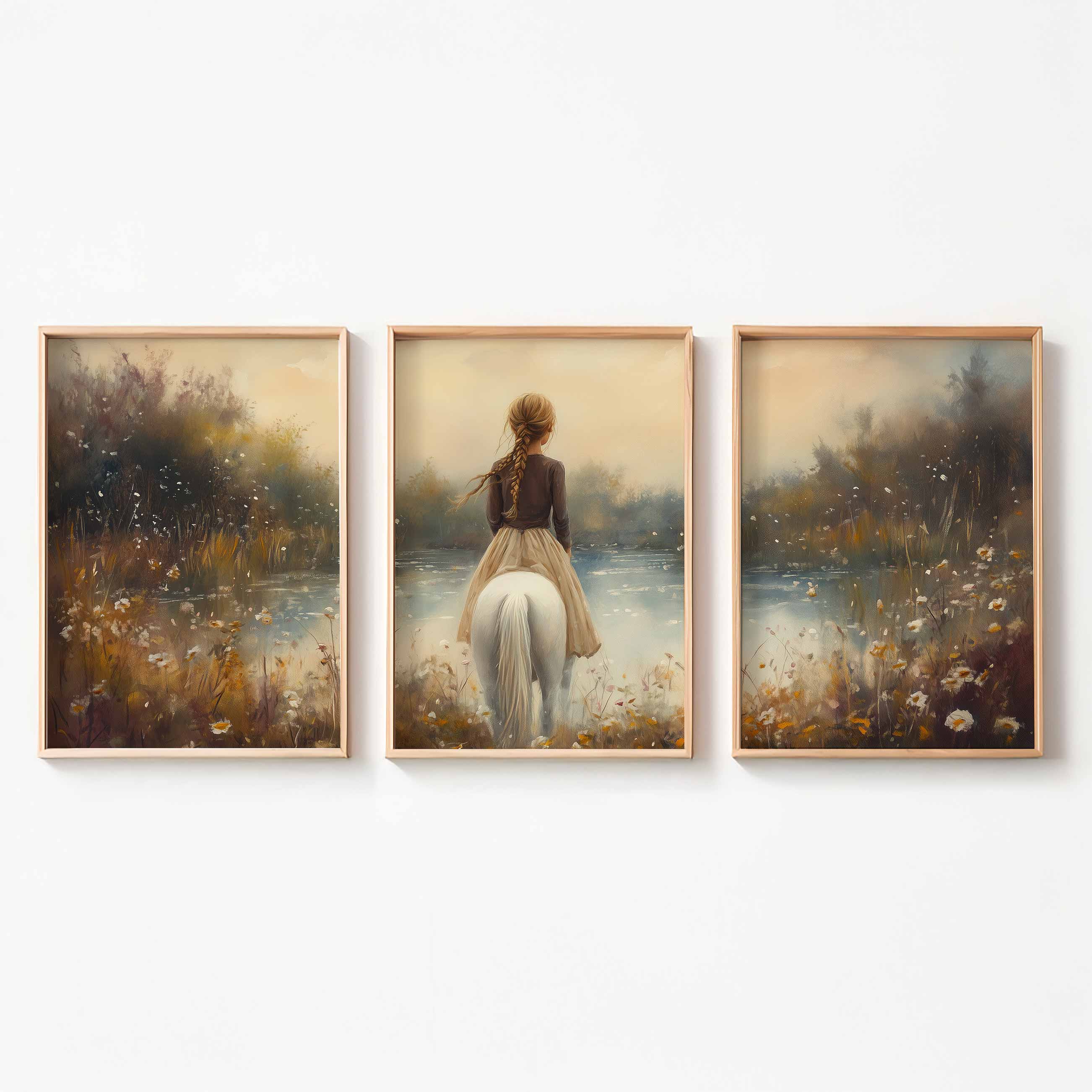 Terug naar collectie Posters Betoverend Meisje op Wit Paard in Bloemenveld