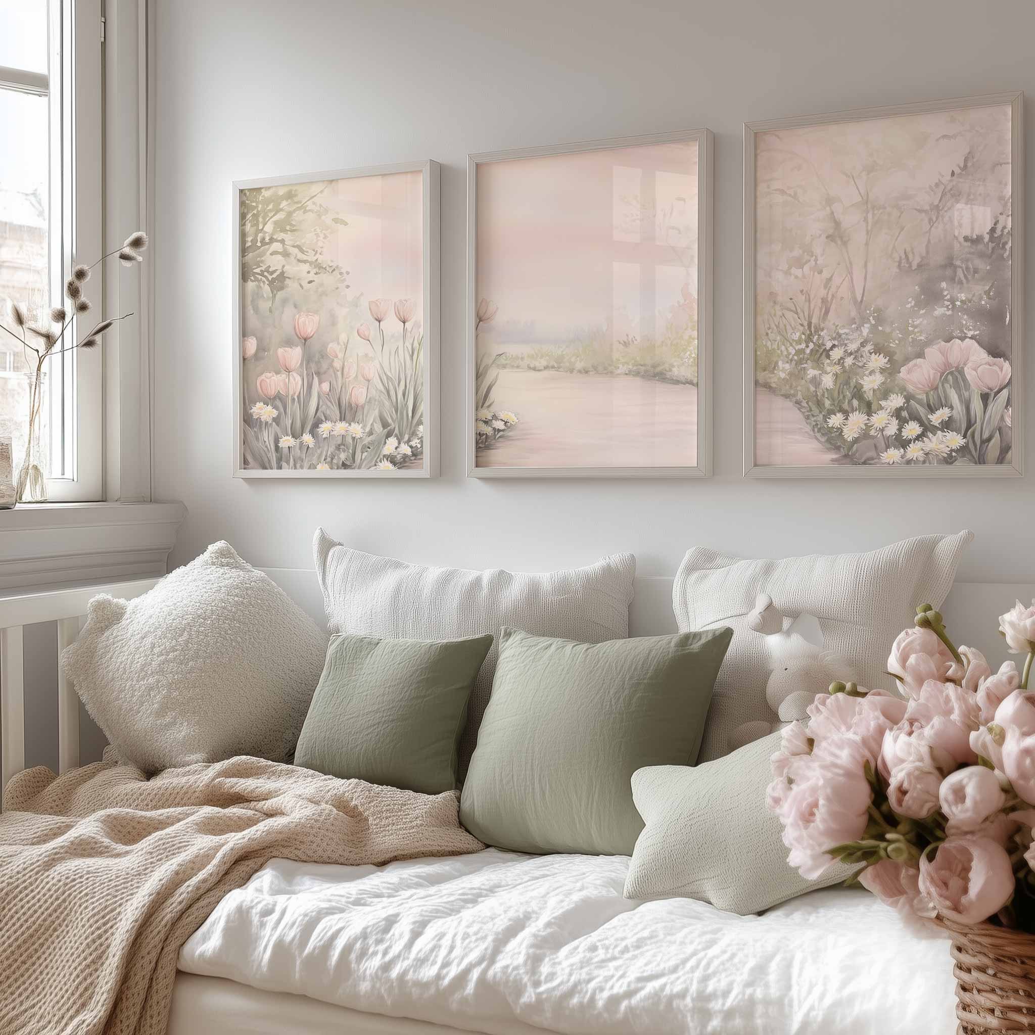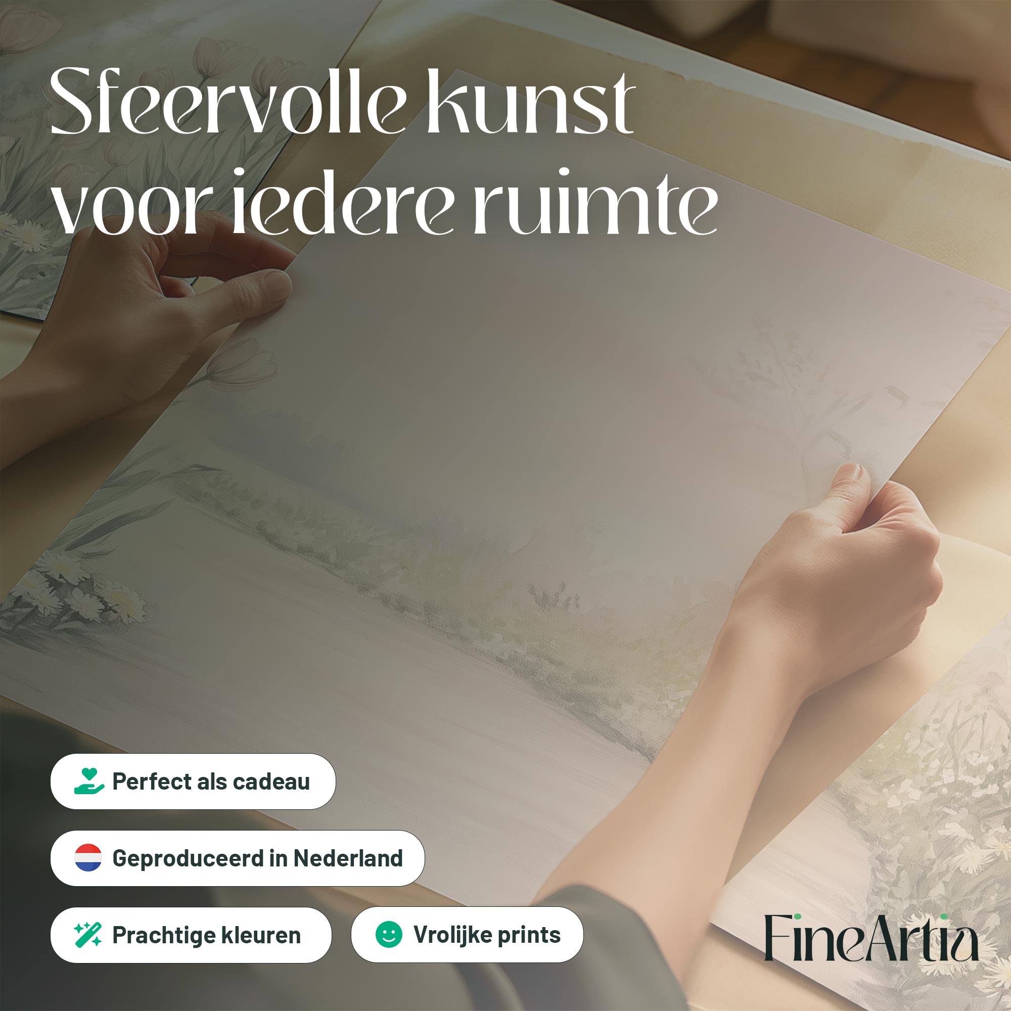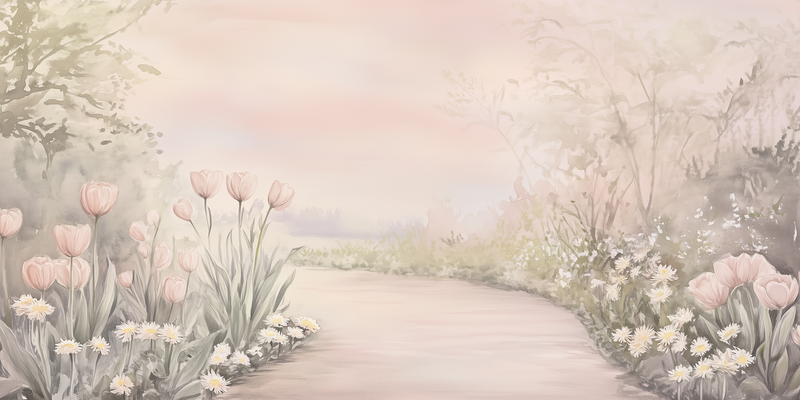 Betoverend Tuinpad met Roze Tulpen en Witte Madeliefjes