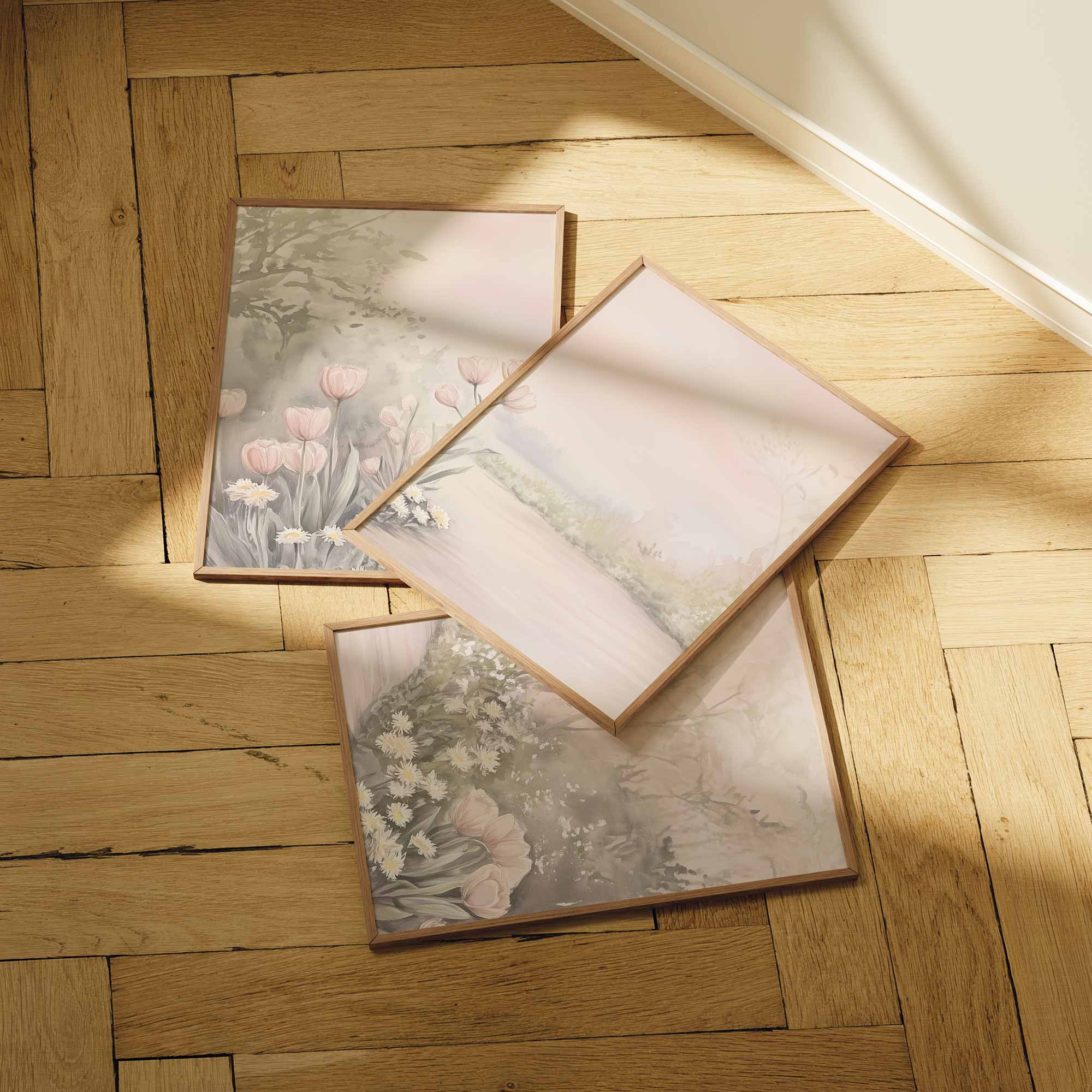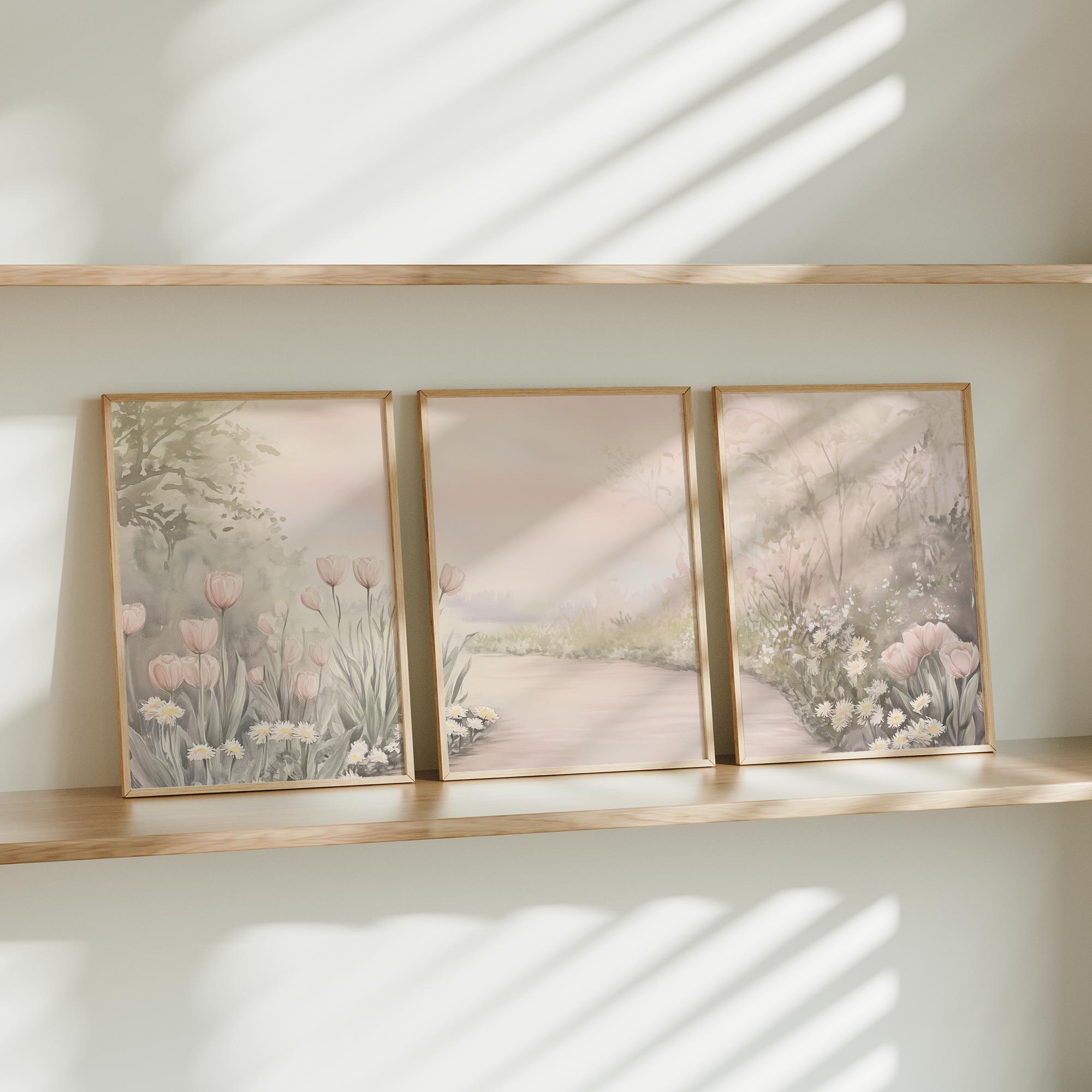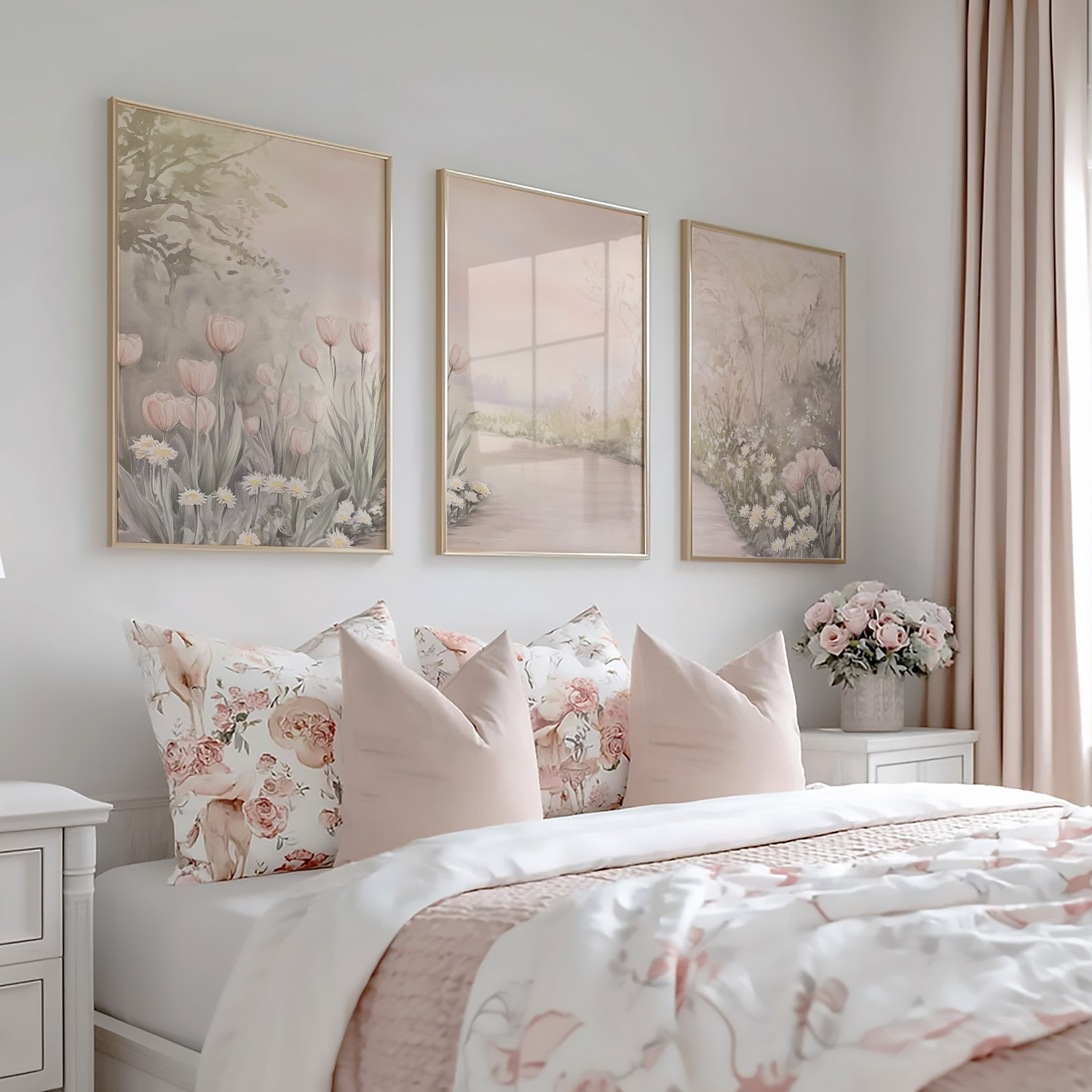 Betoverend Tuinpad met Roze Tulpen en Witte Madeliefjes