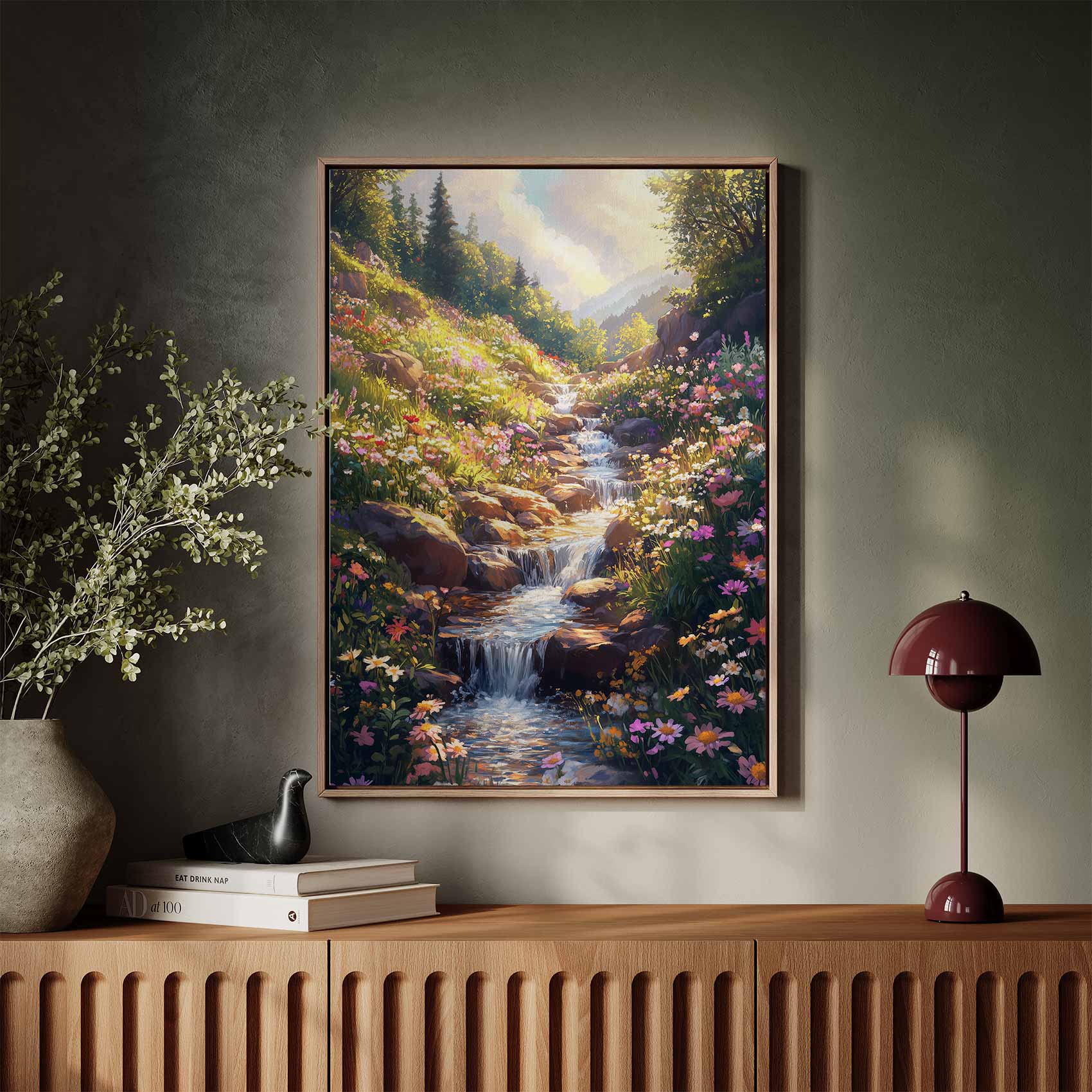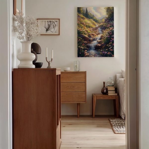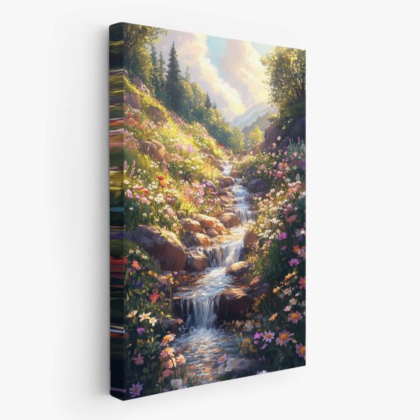 Betoverend waterval bloemenlandschap