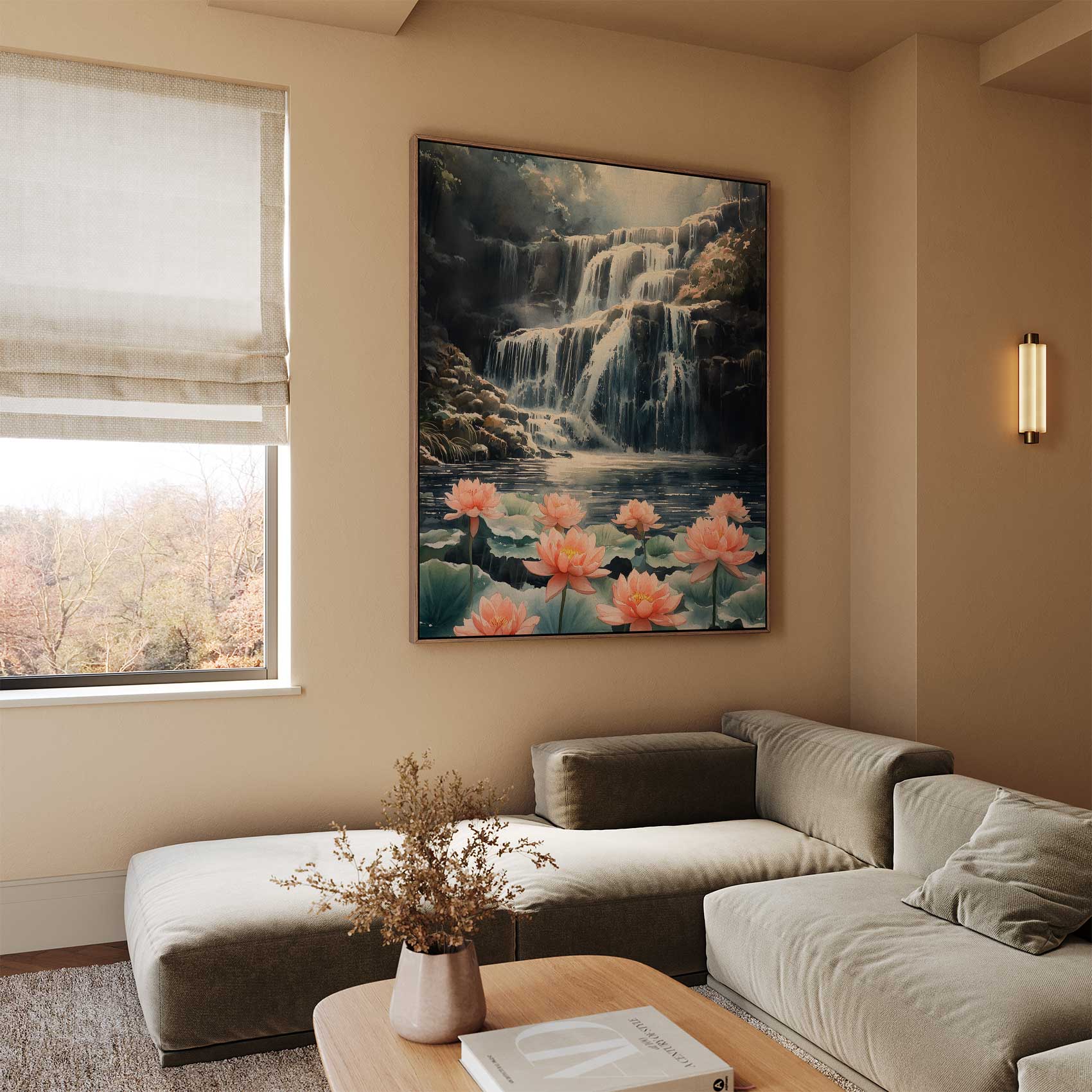 Terug naar collectie Canvas Betoverend waterval bloemenwaterverf