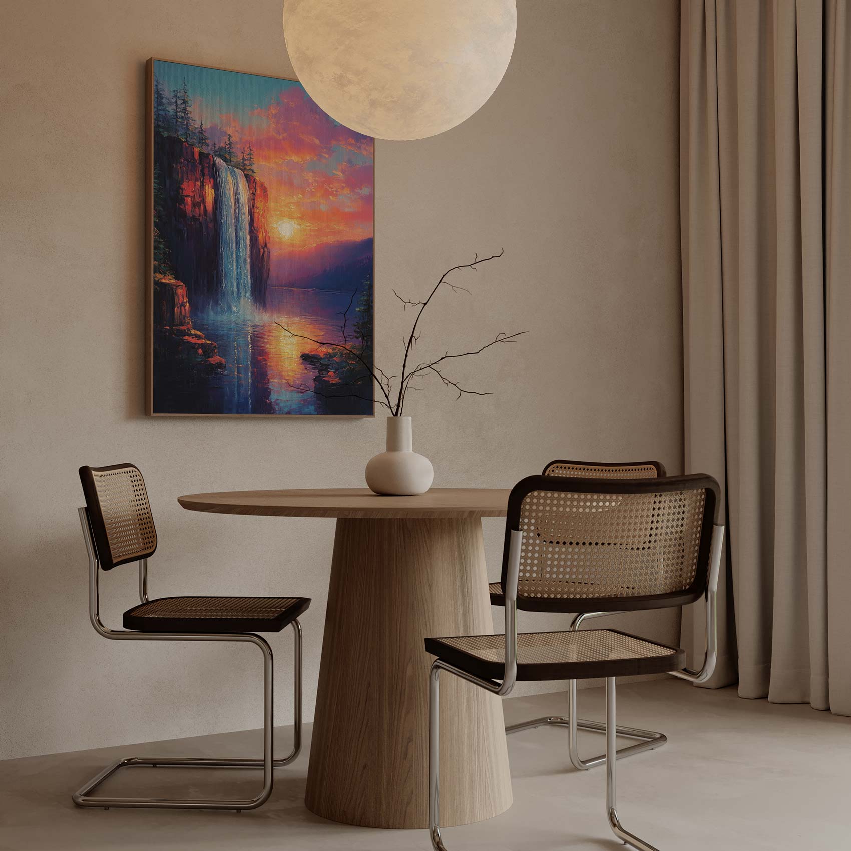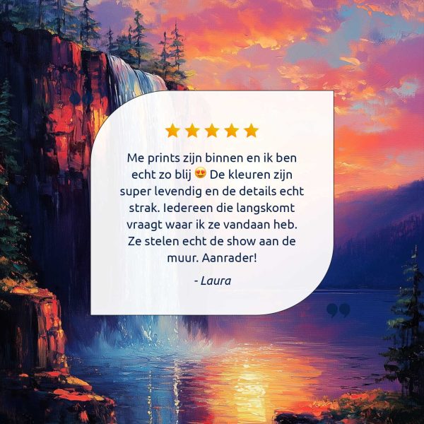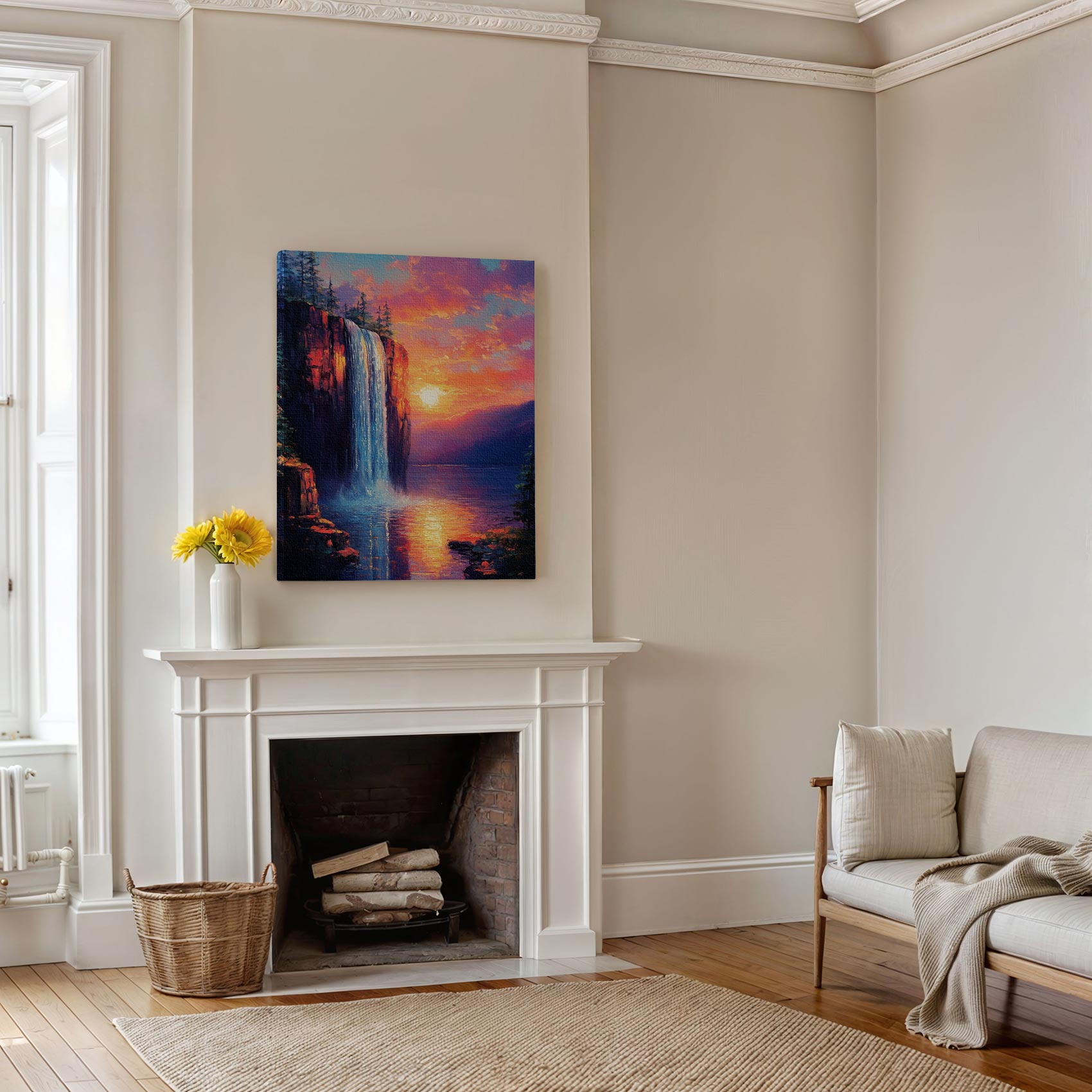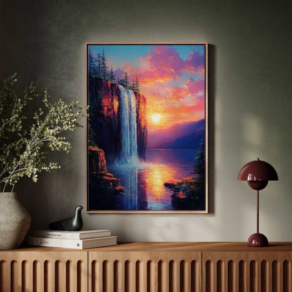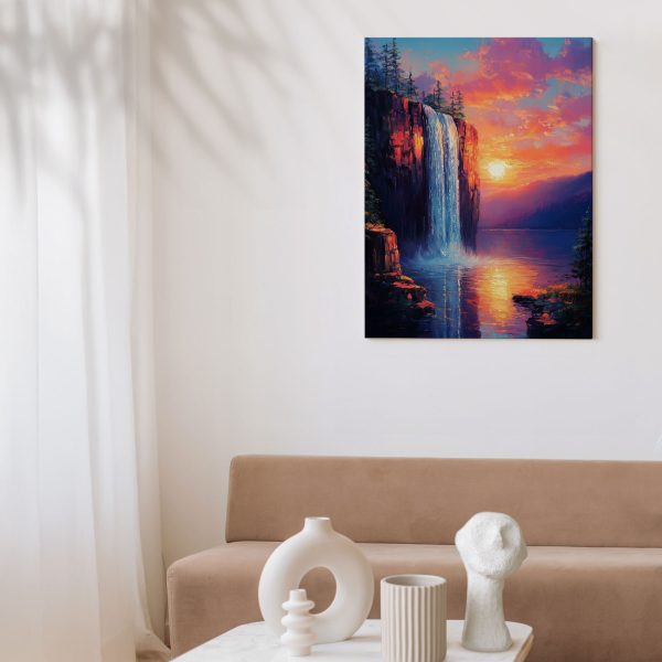Betoverend waterval zonsondergang schilderij