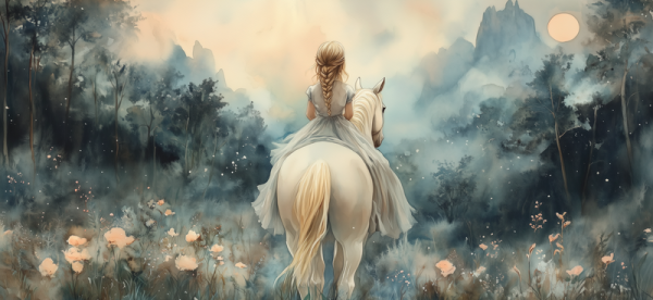 Terug naar collectie Posters Betoverende Droomrit op een Witte Paard