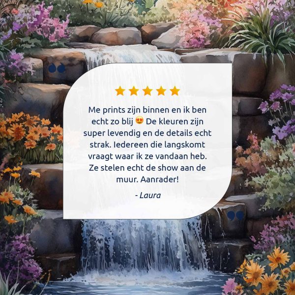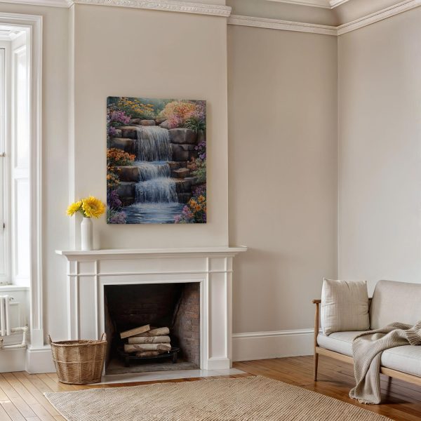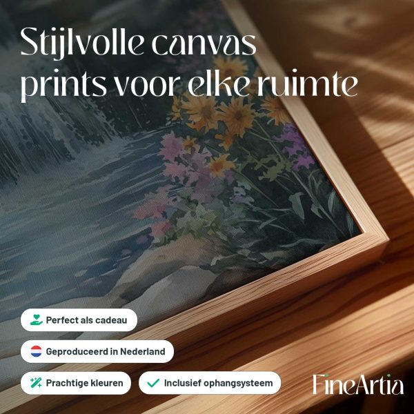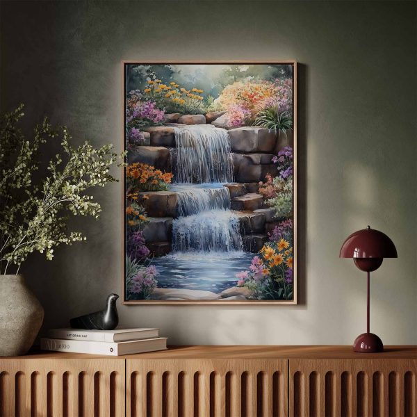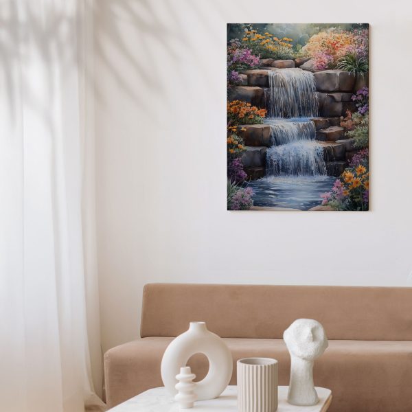 Terug naar collectie Canvas Betoverende waterval met bloementuin