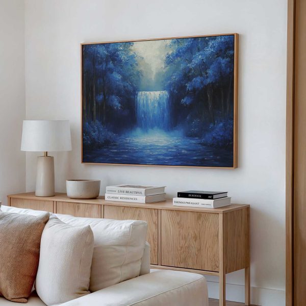 Terug naar collectie Canvas Blauw Boswaterval Schilderij
