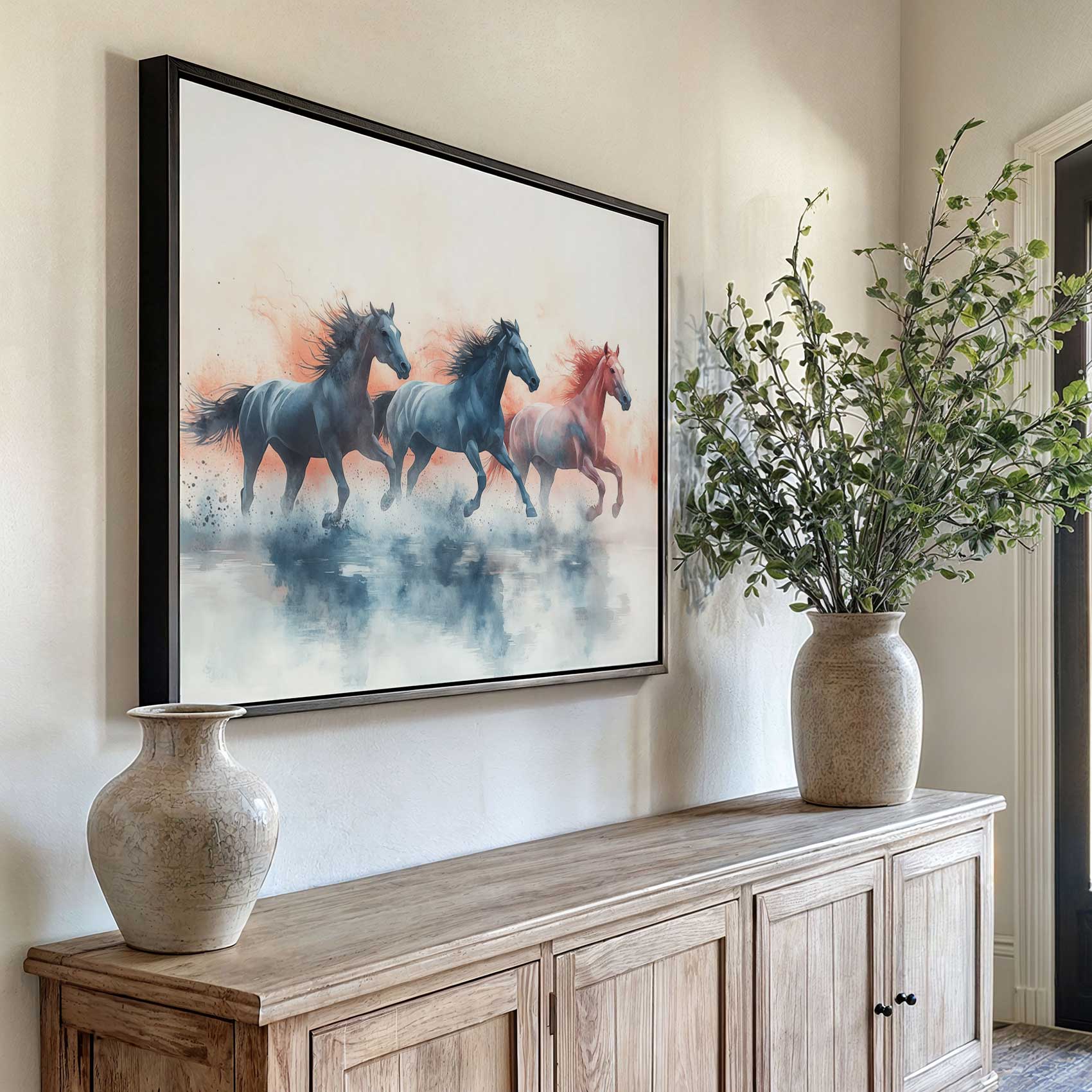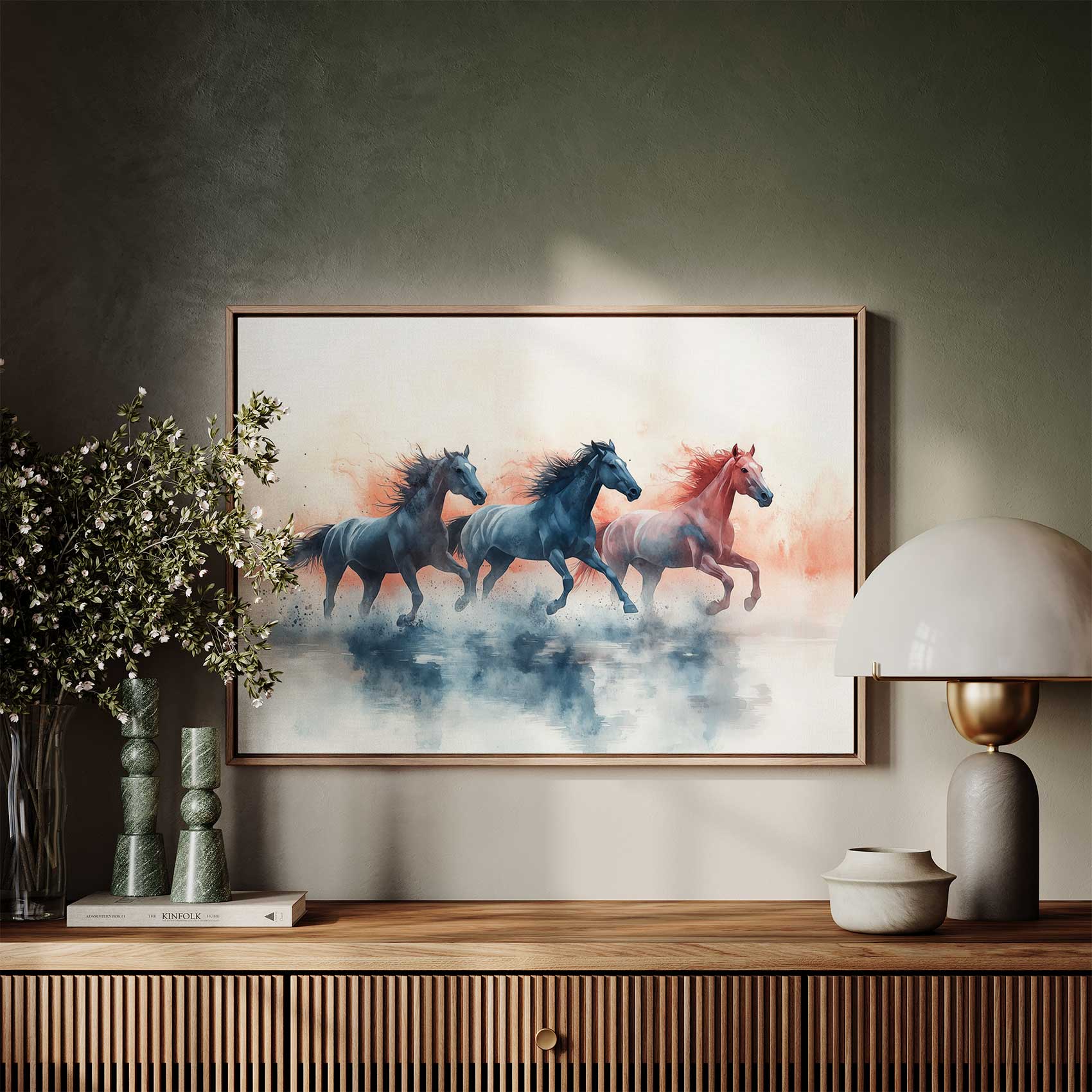 Terug naar collectie Canvas Blauwe paarden in volle vaart