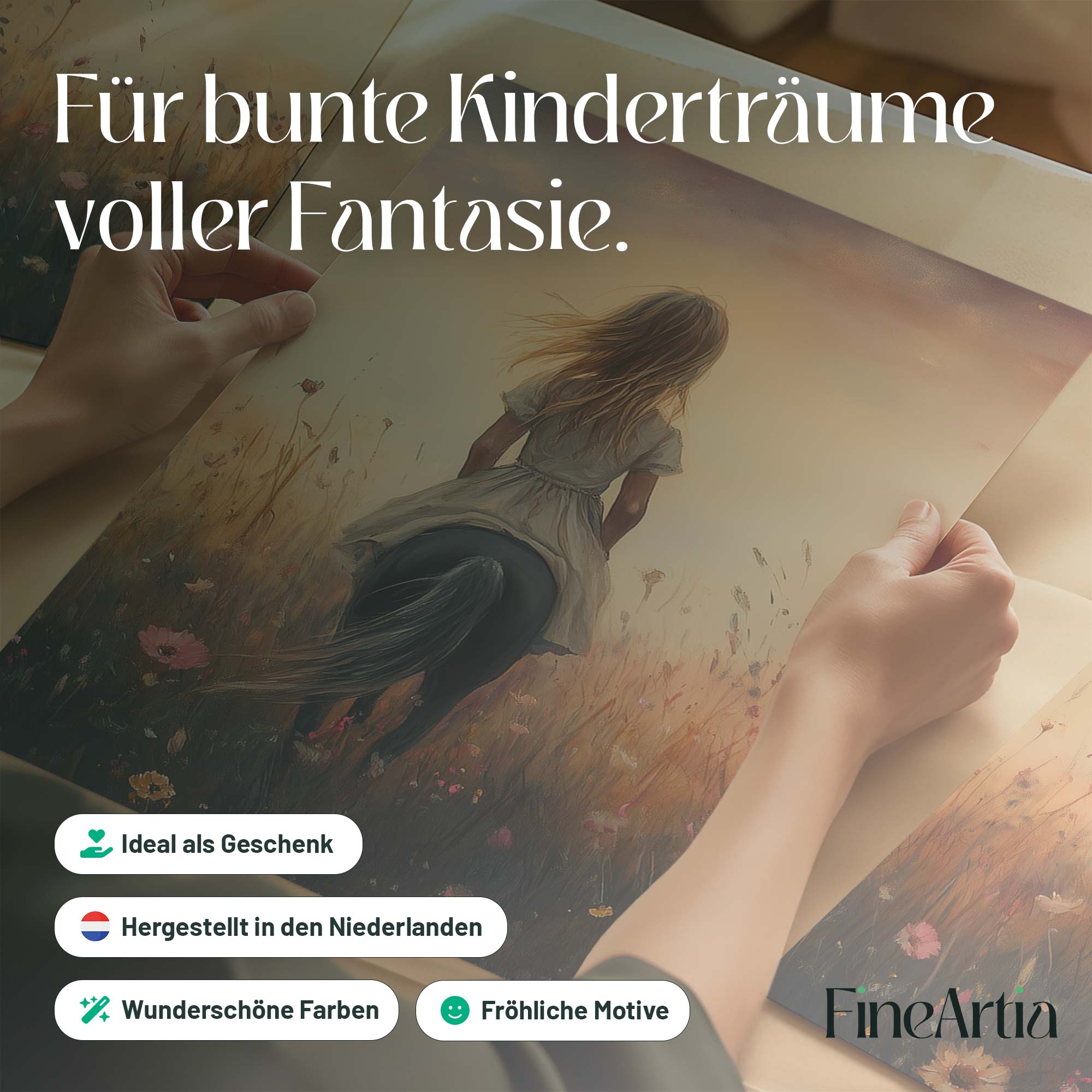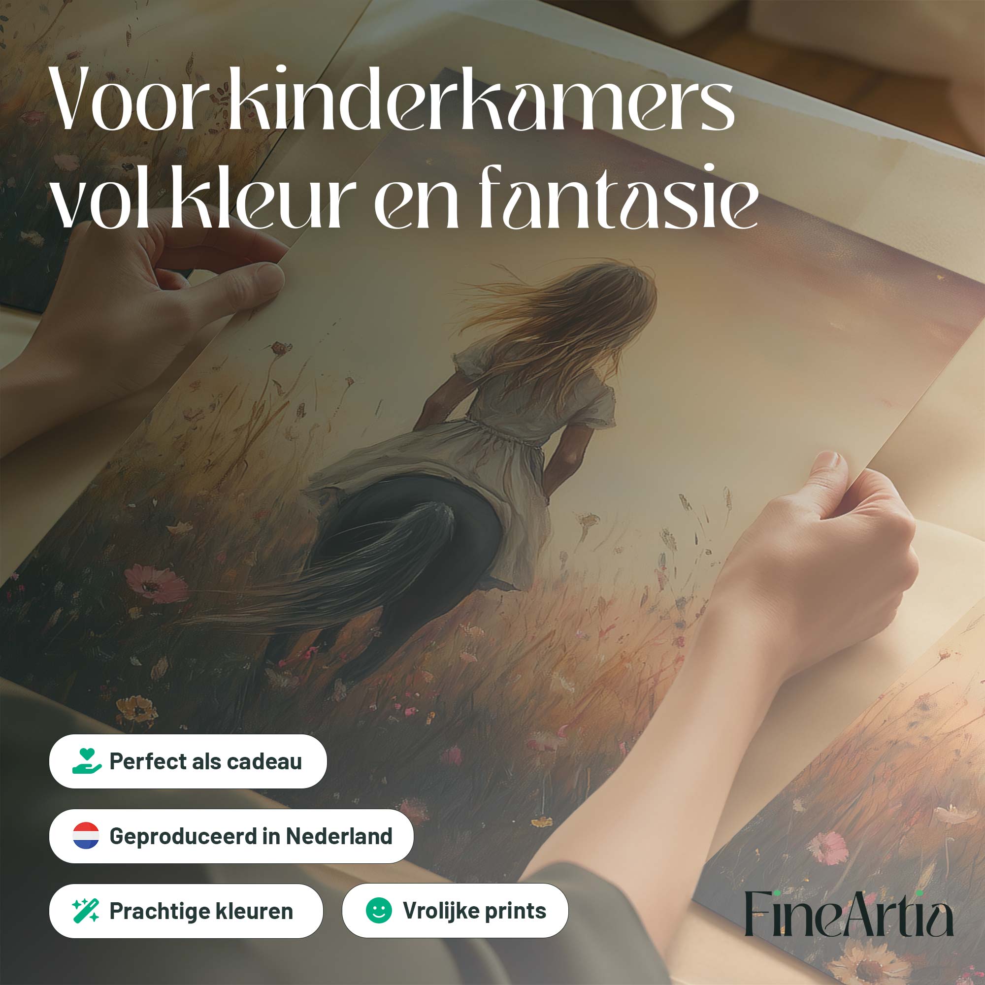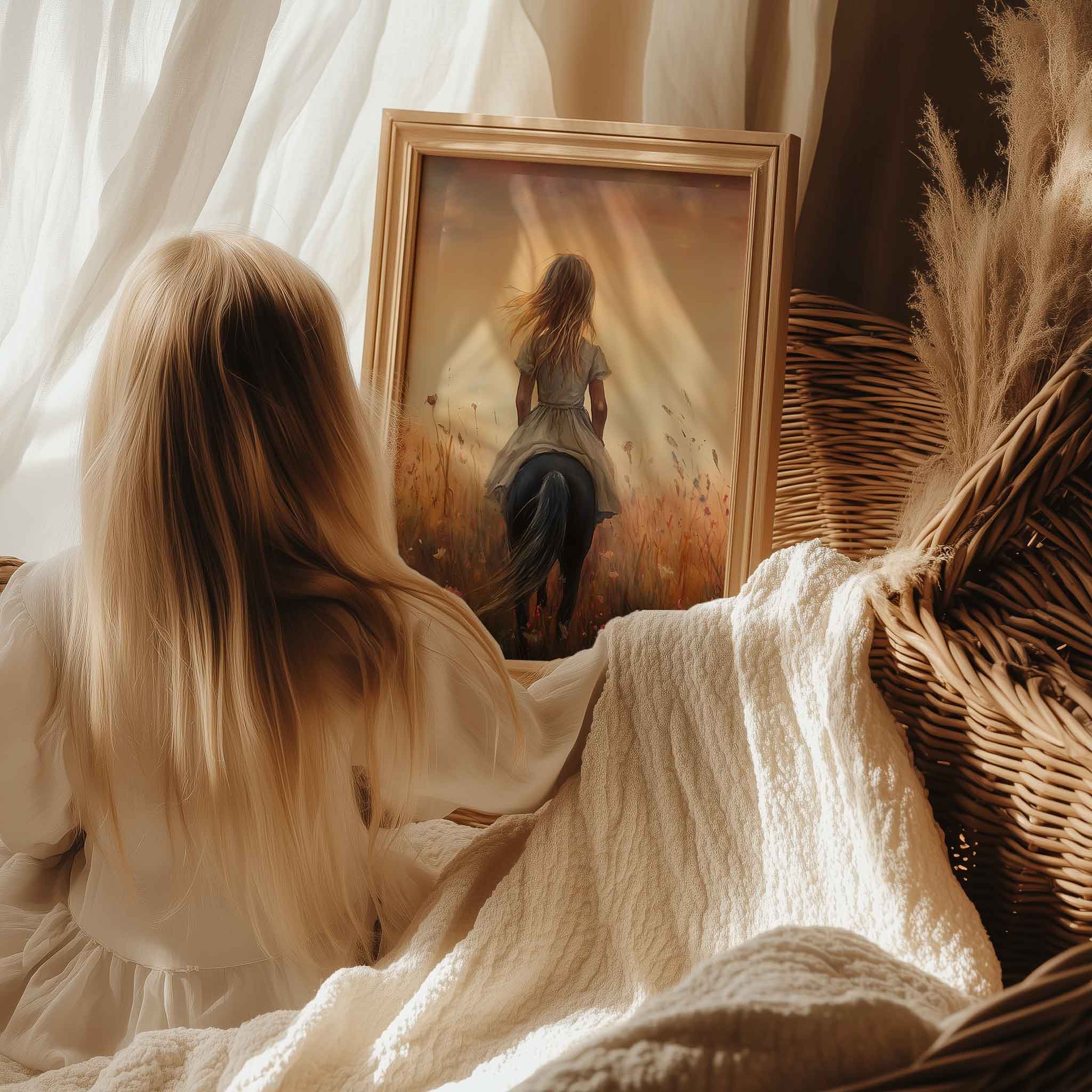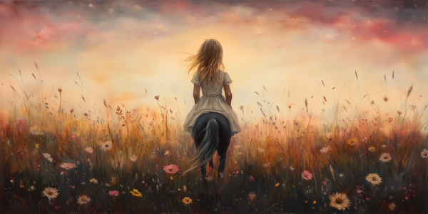 Blije Dame te Paard in Bloeiend Bloemenveld