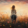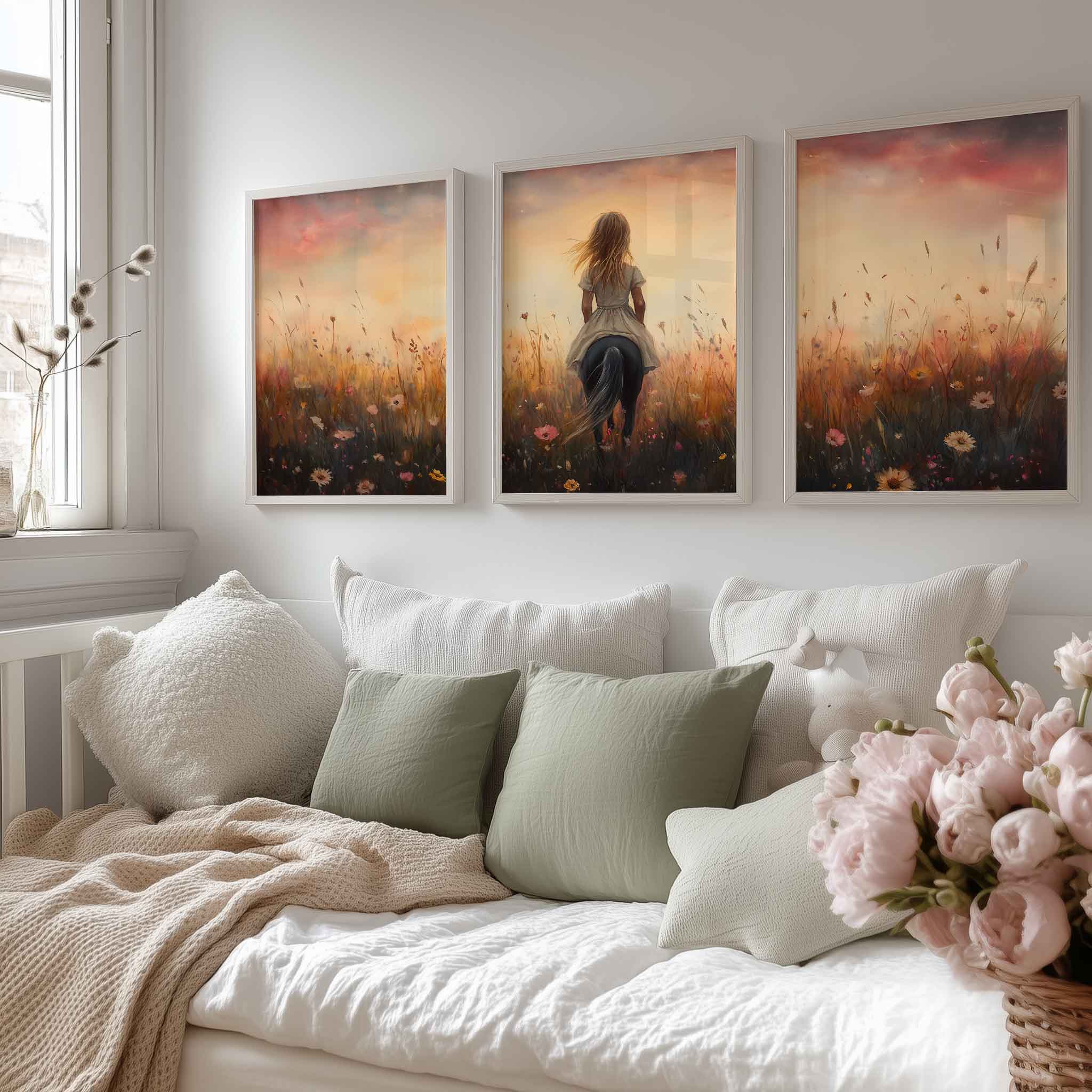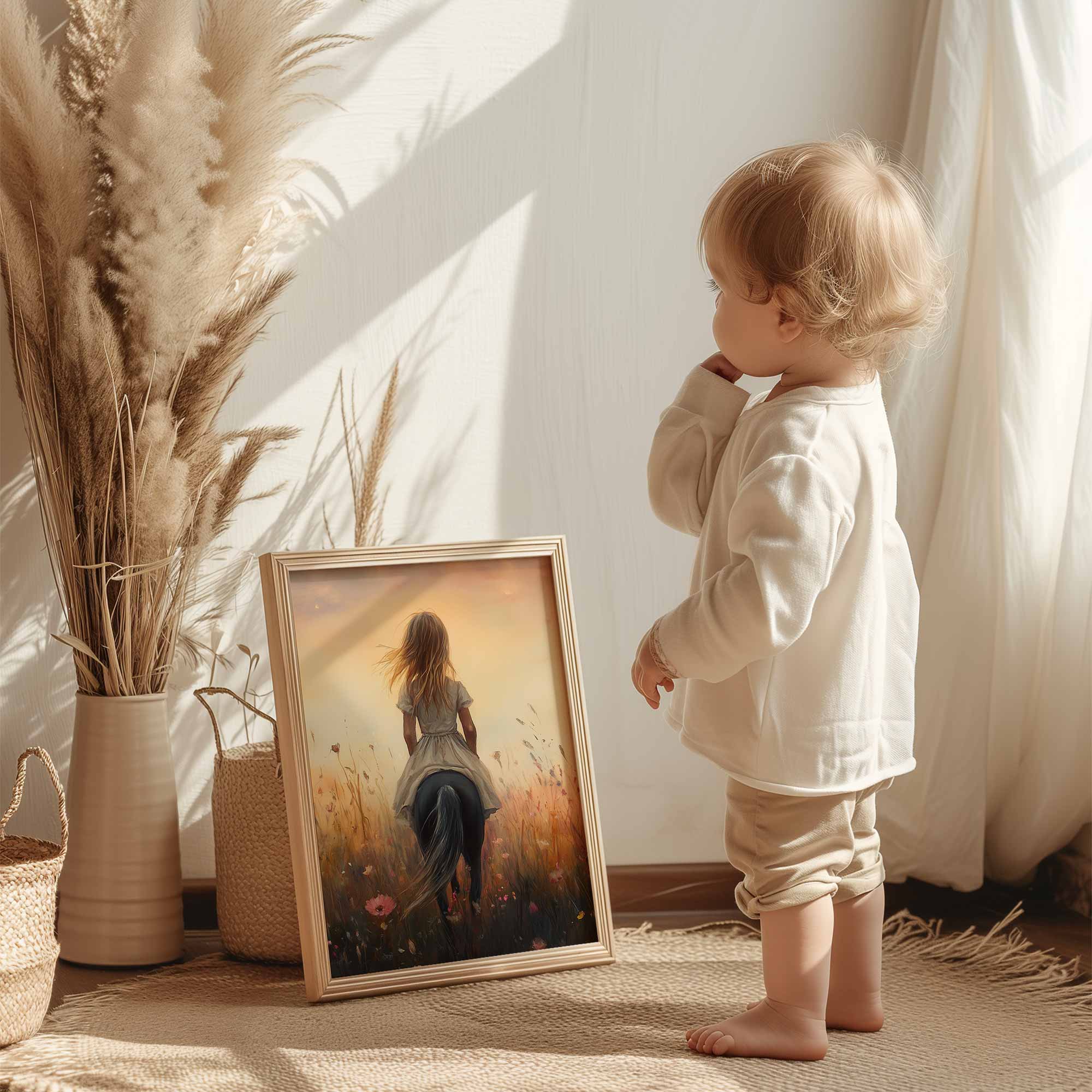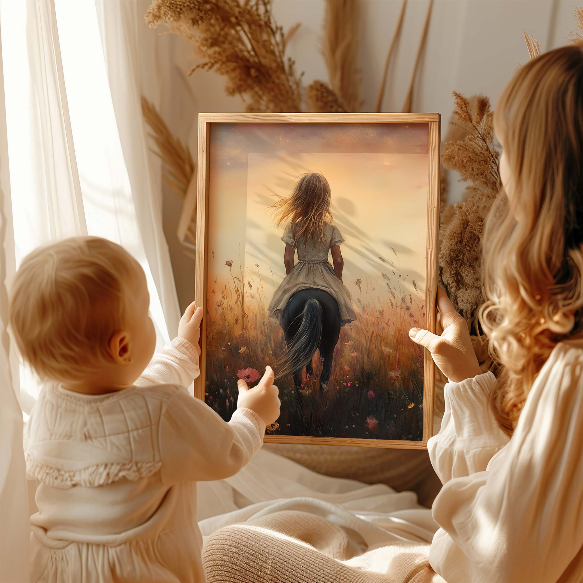 Blije Dame te Paard in Bloeiend Bloemenveld