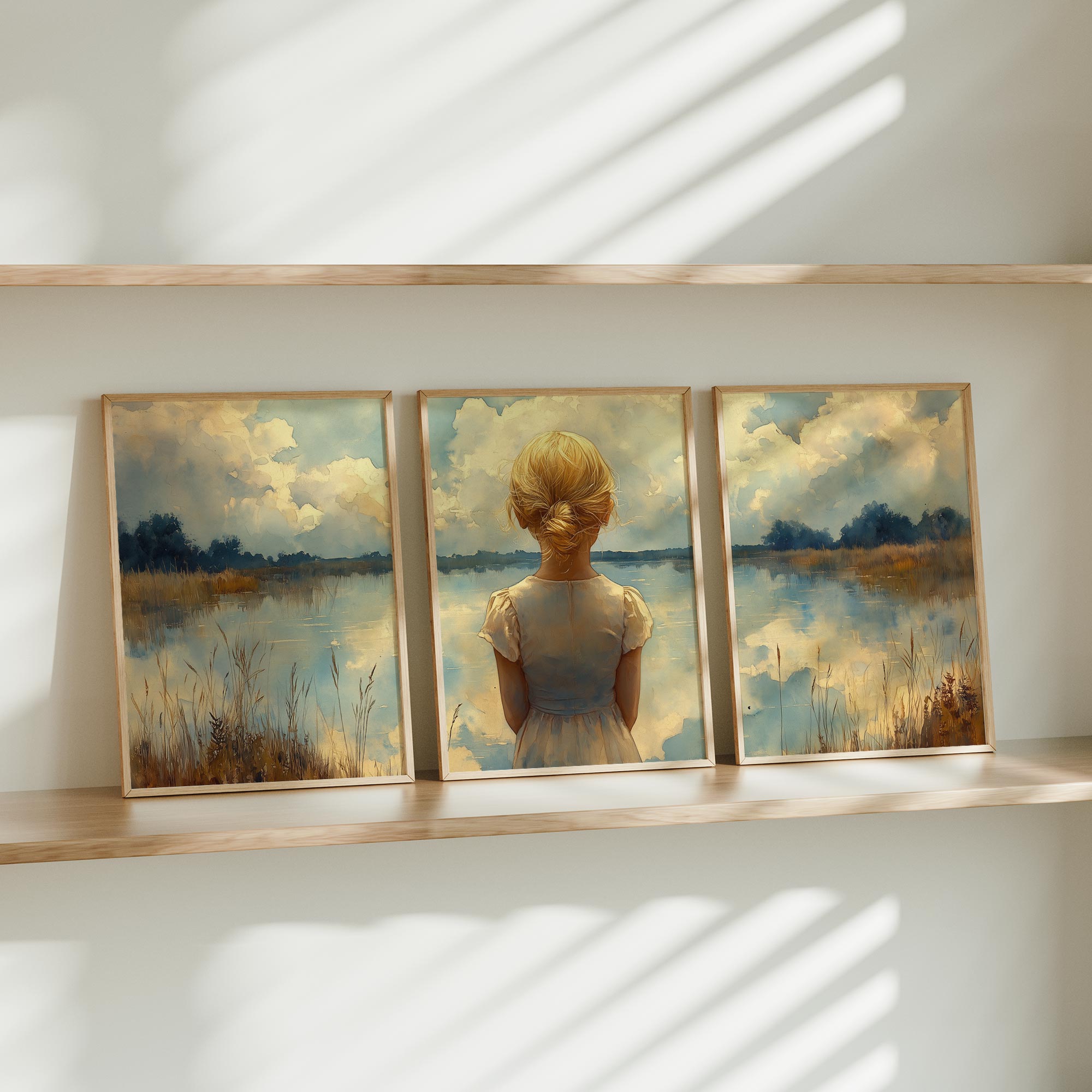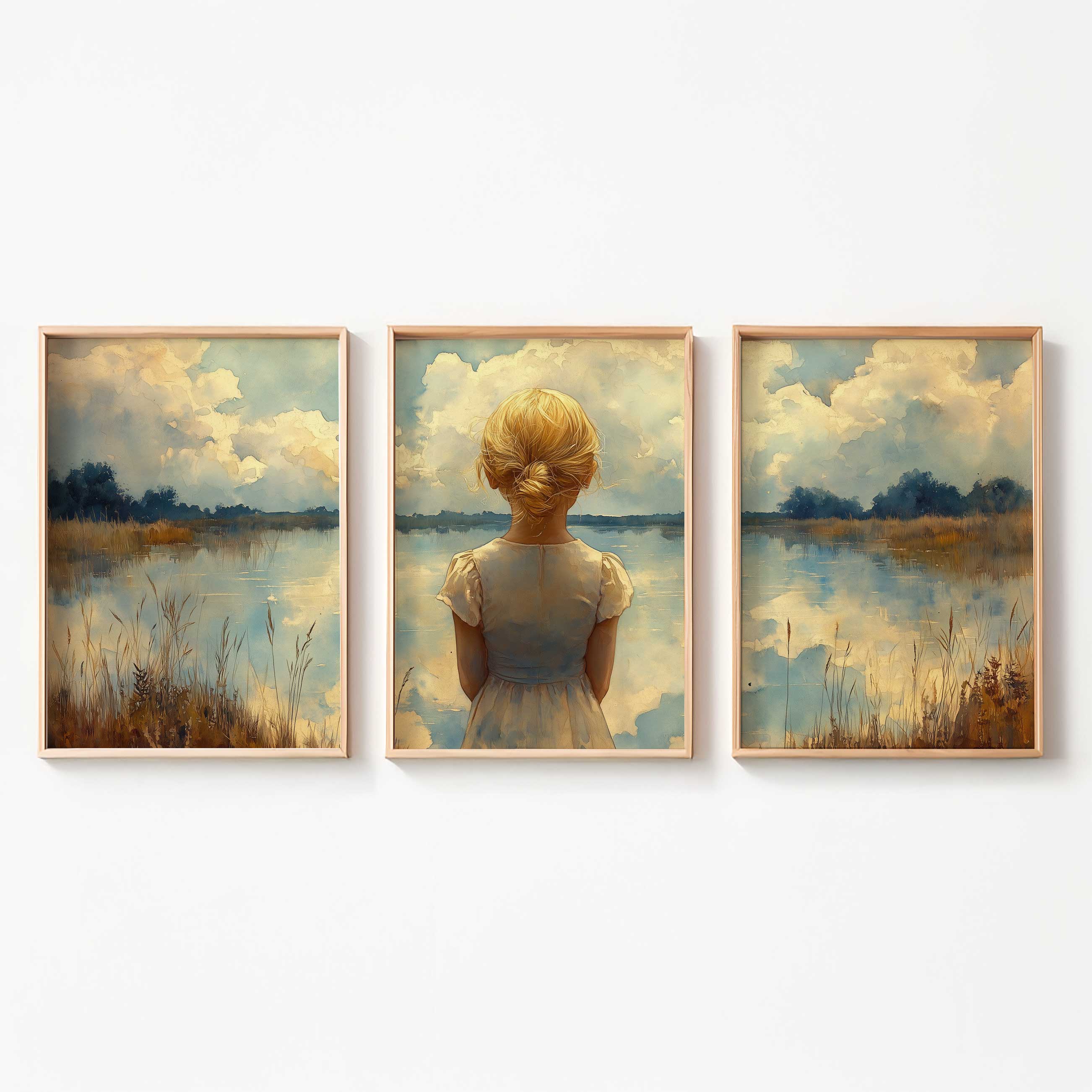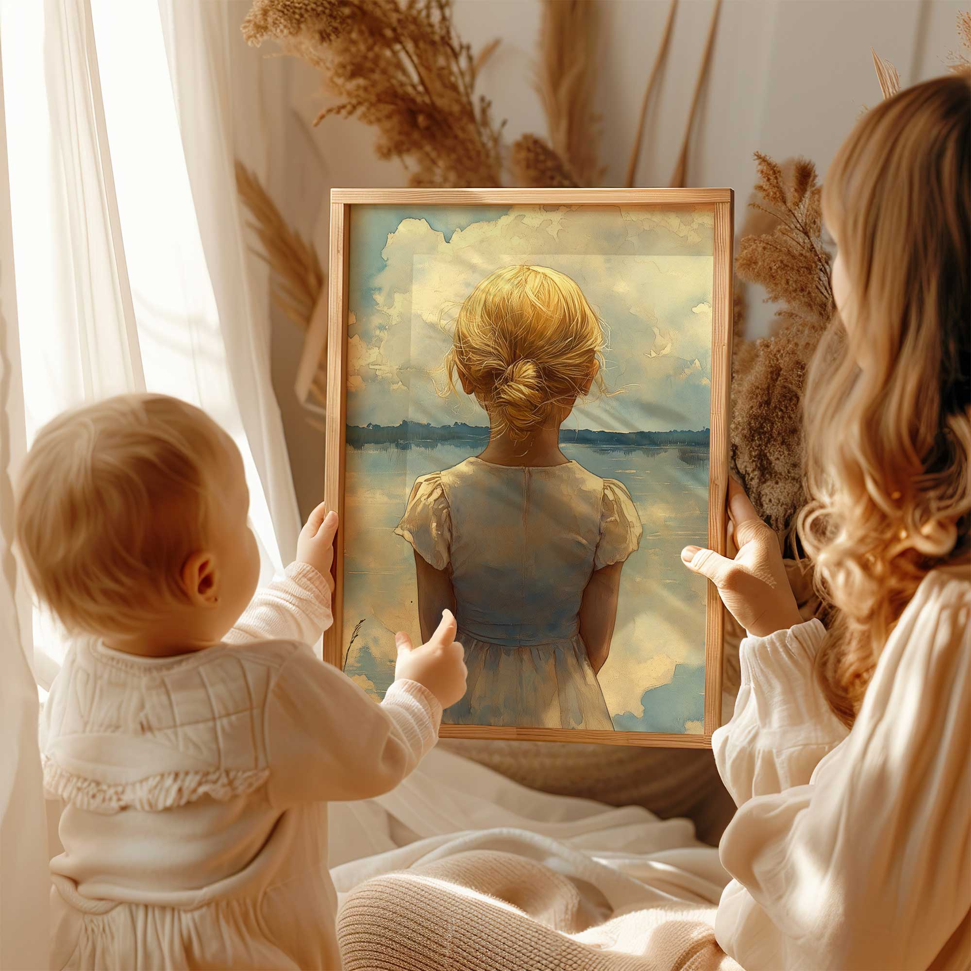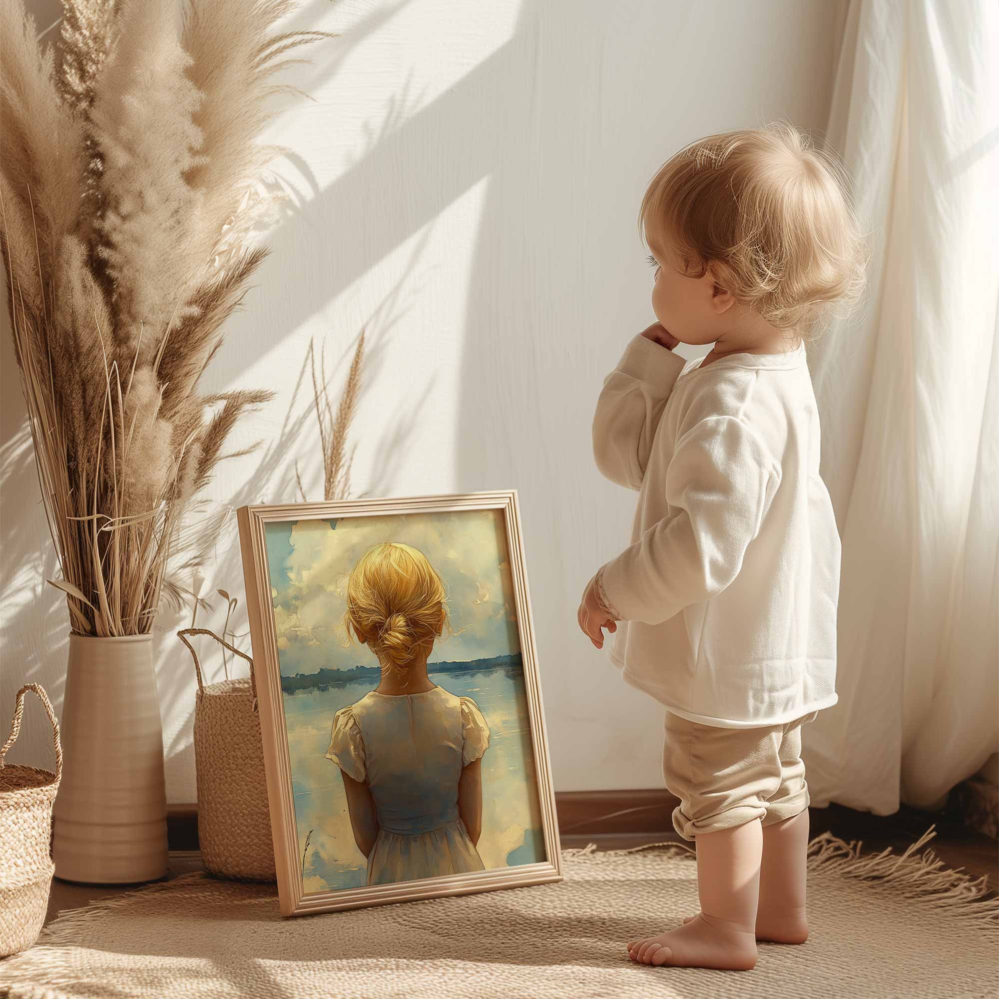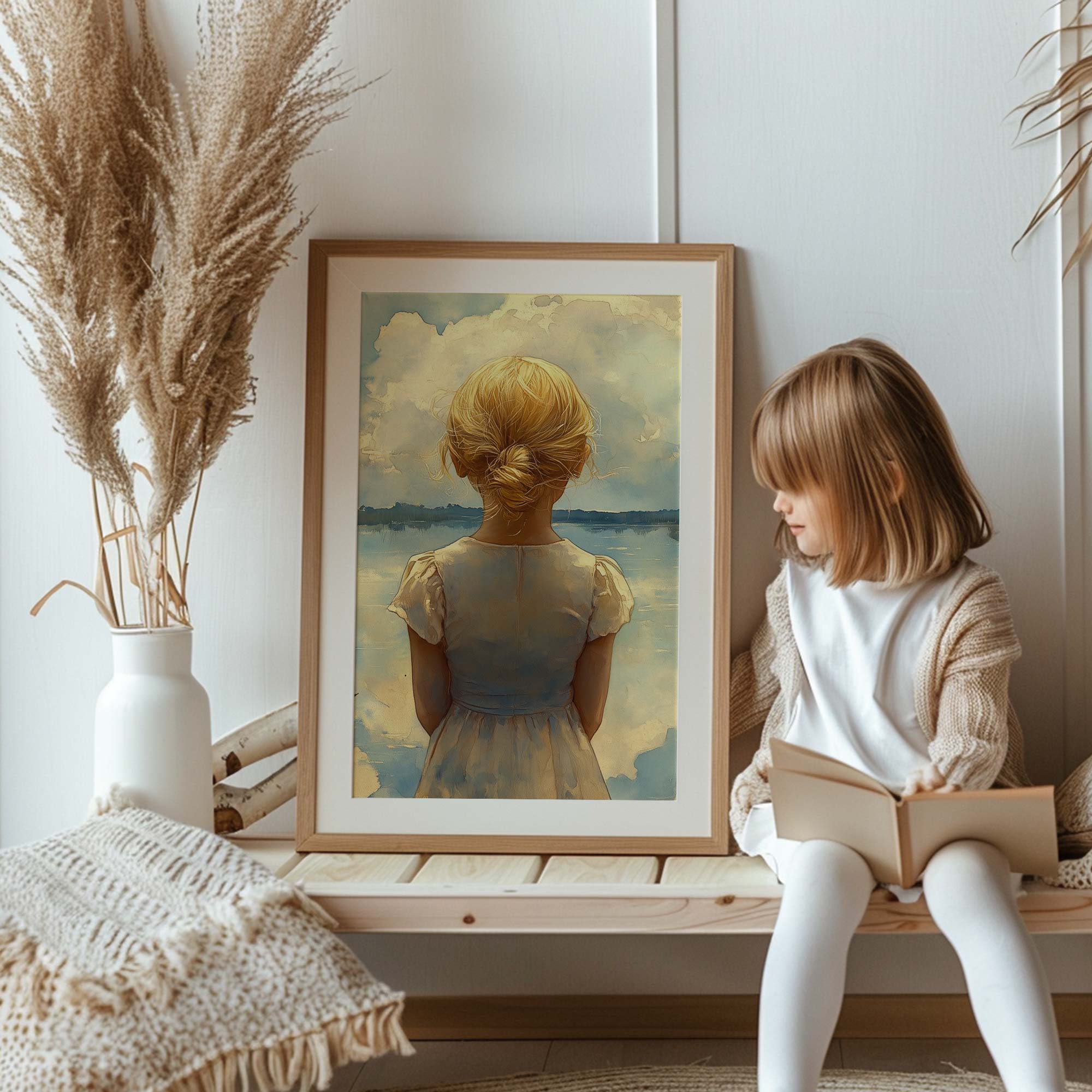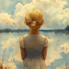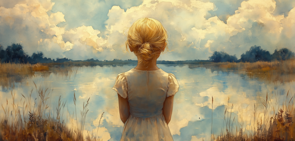 Blond Meisje bij Dromerig Meer – Pastel Schilderij