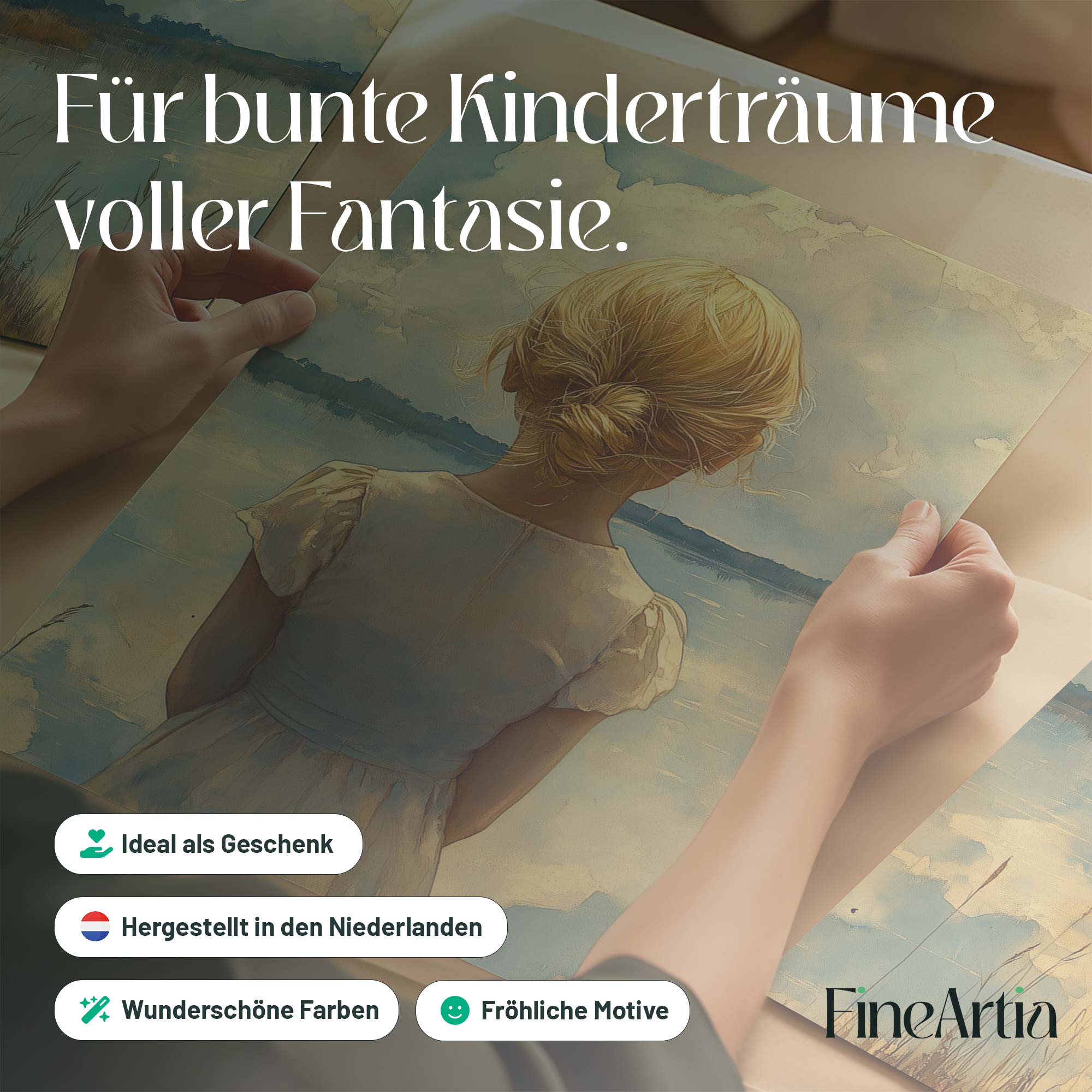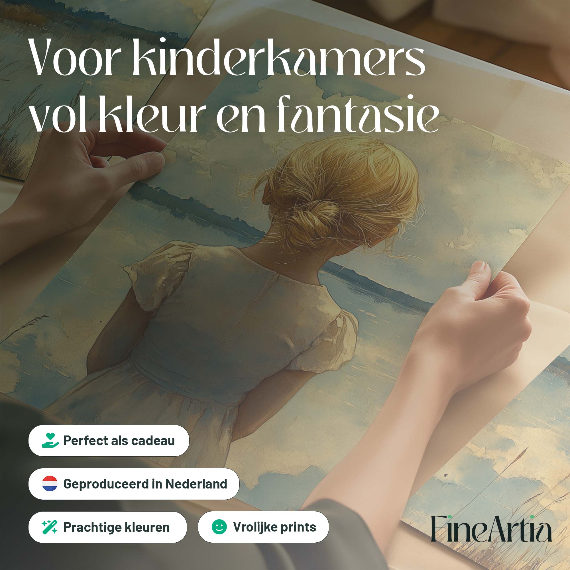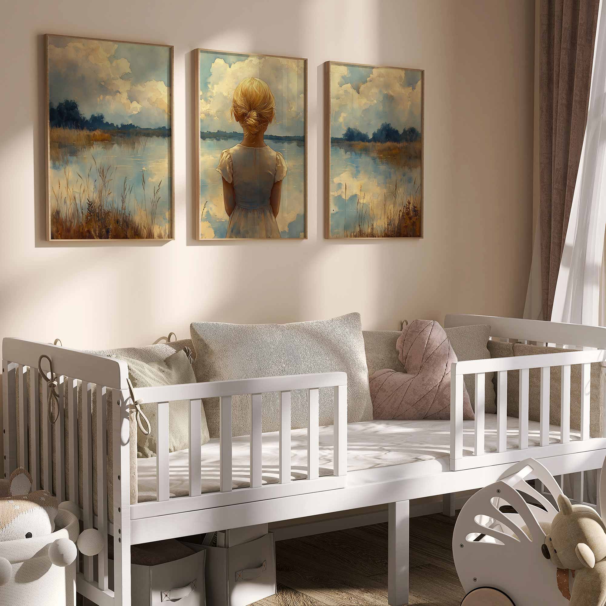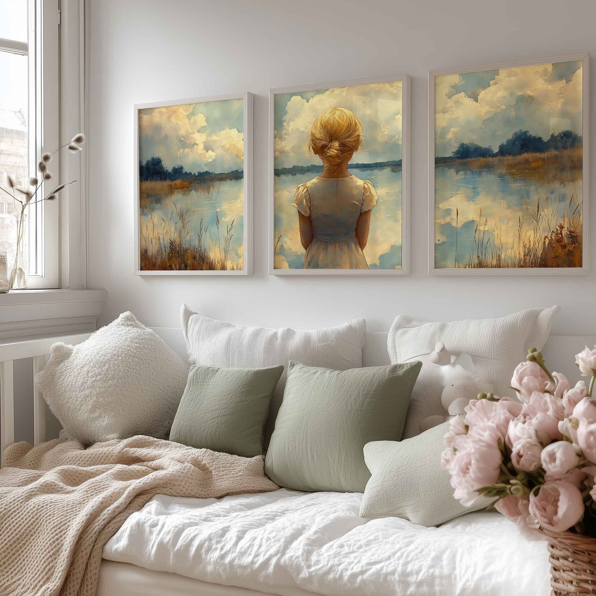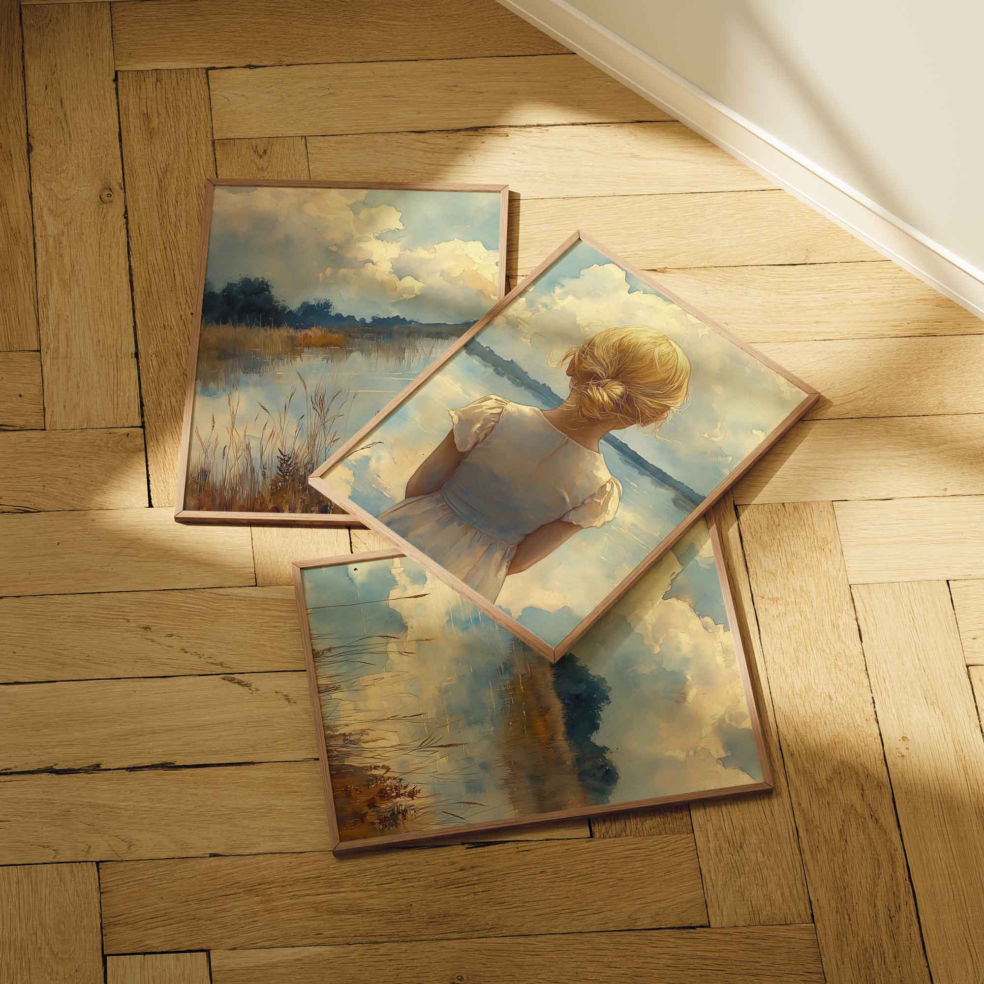 Blond Meisje bij Dromerig Meer – Pastel Schilderij