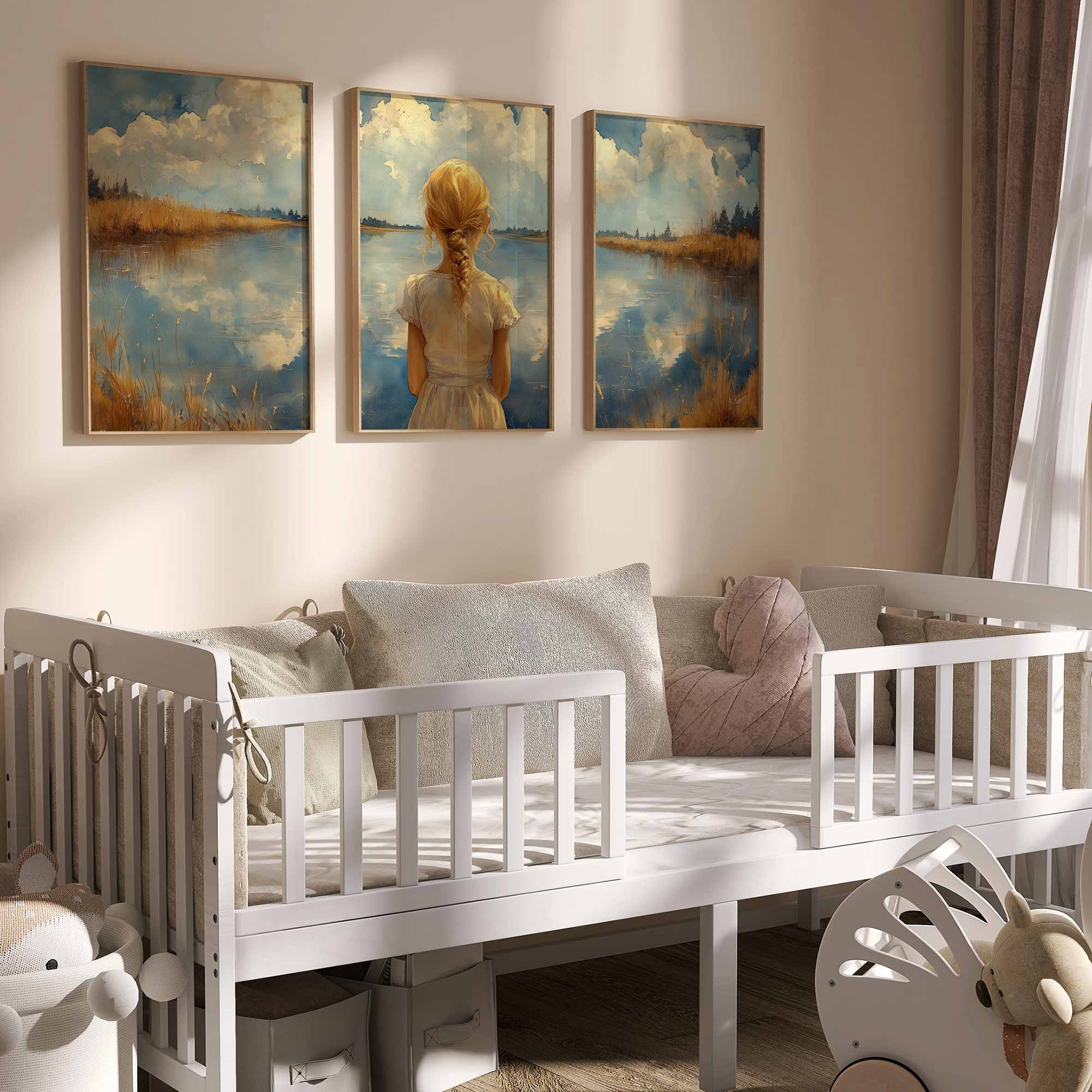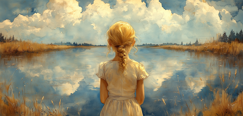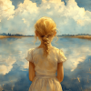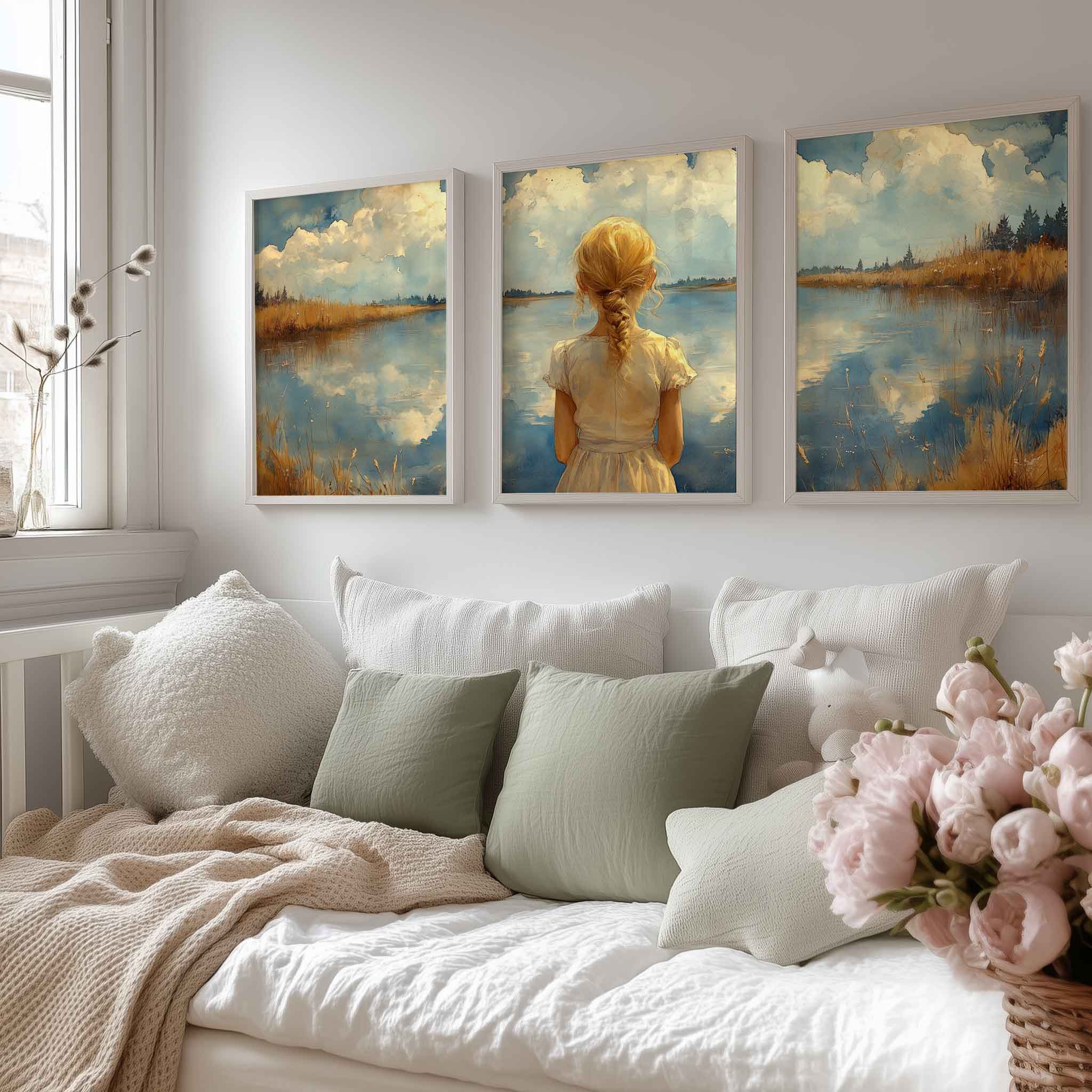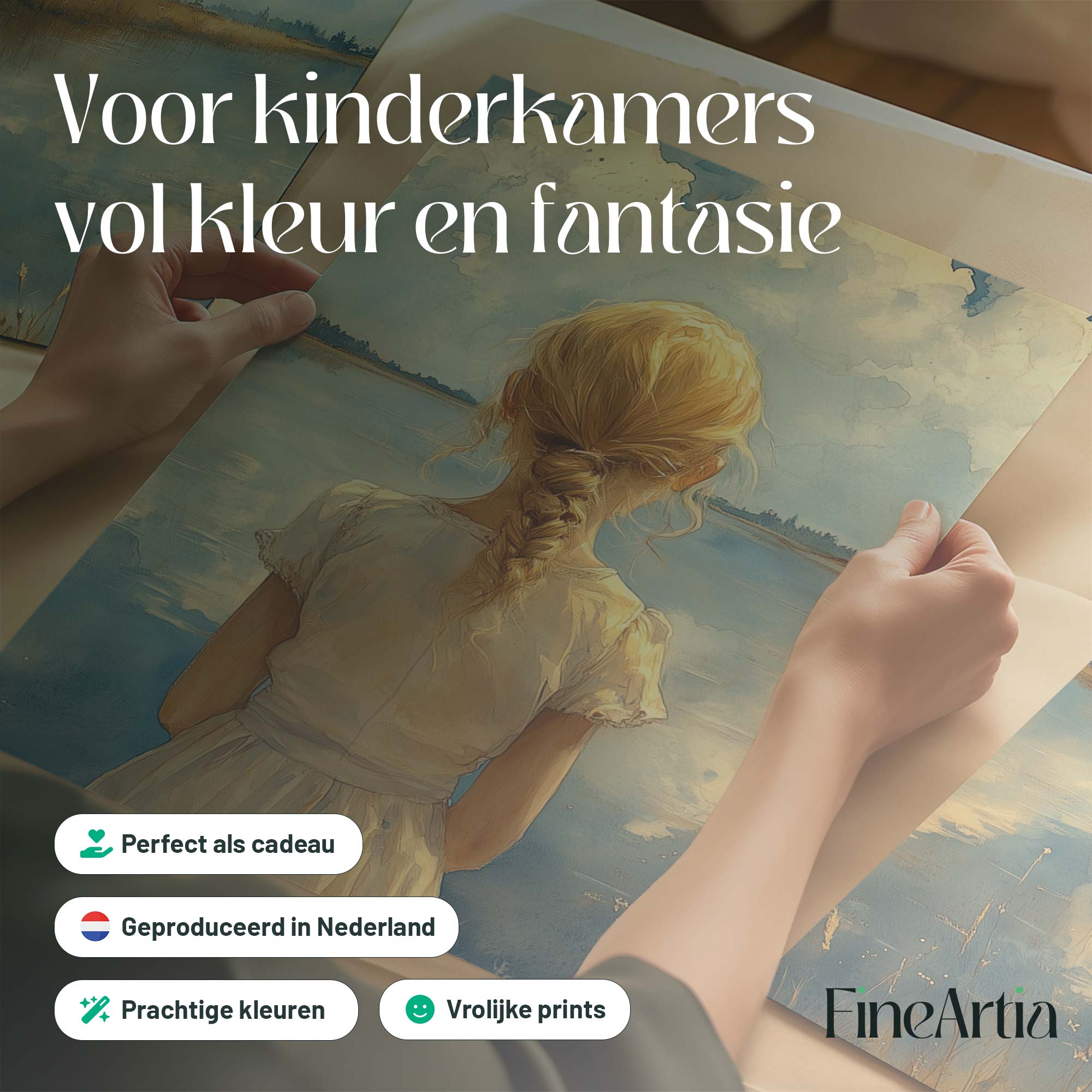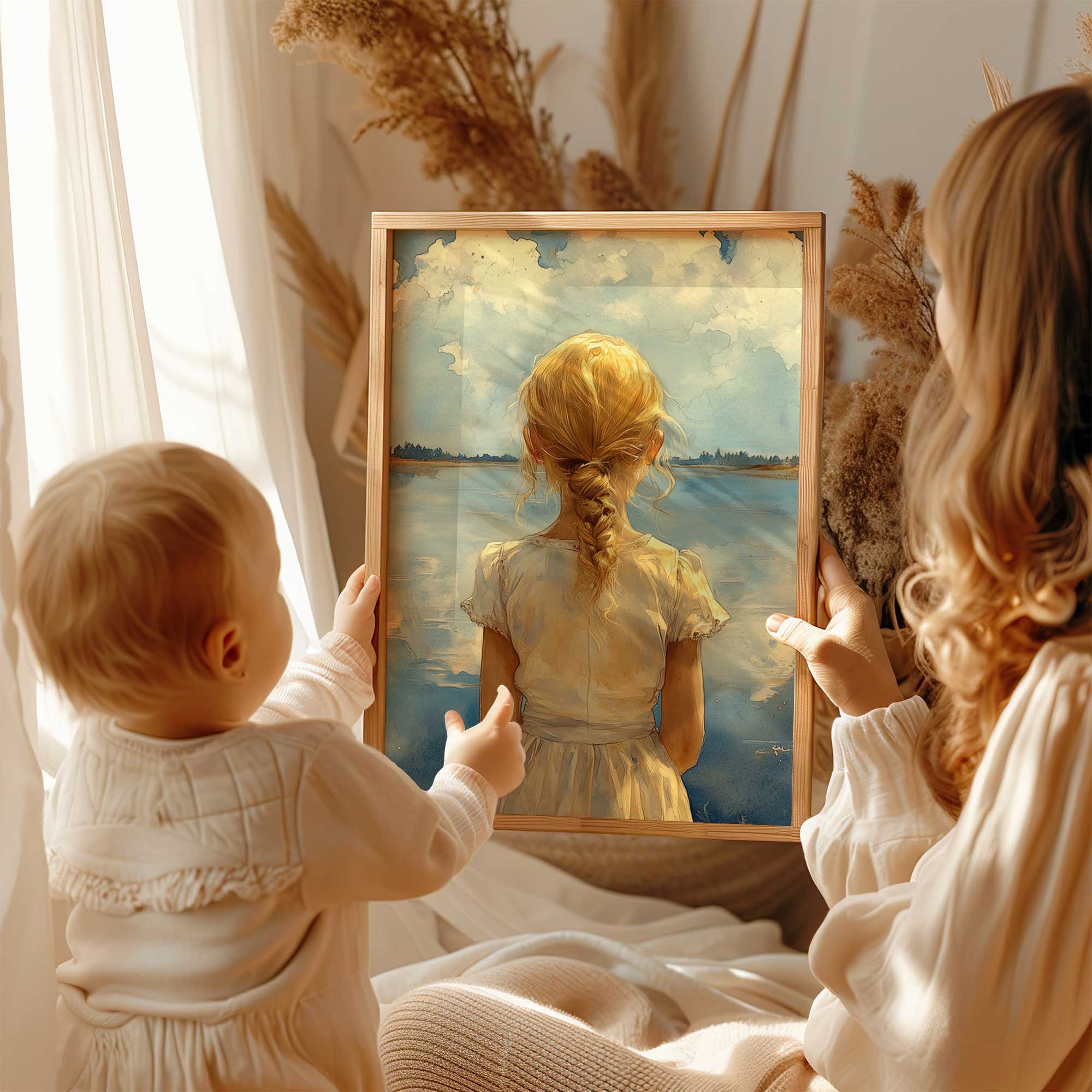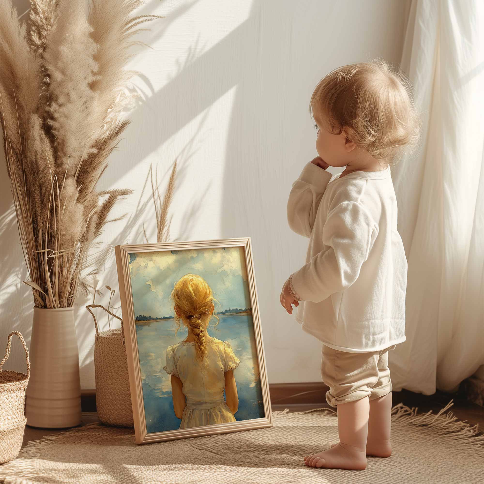 Blond Meisje bij het Meer – Dromerig Pastel Decor