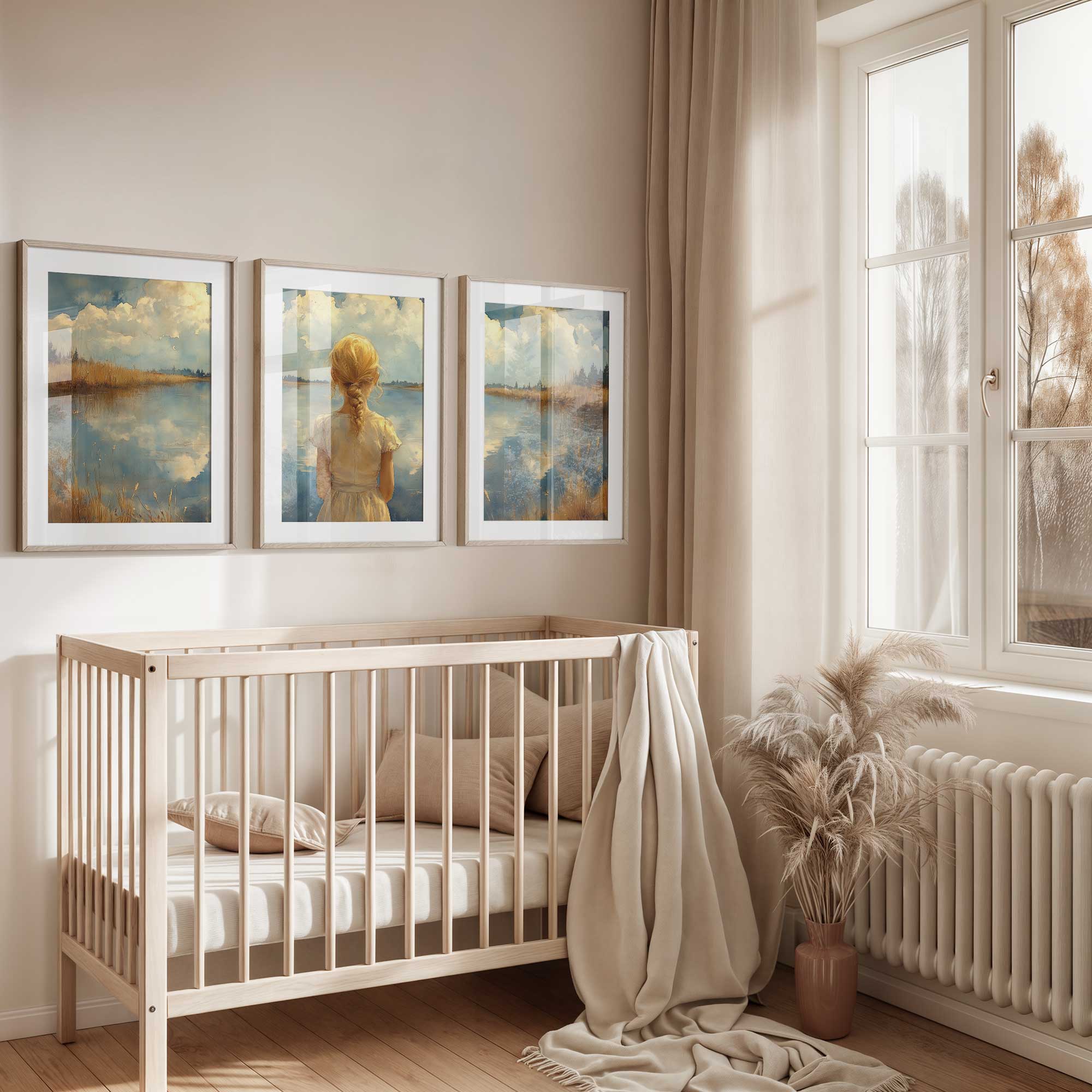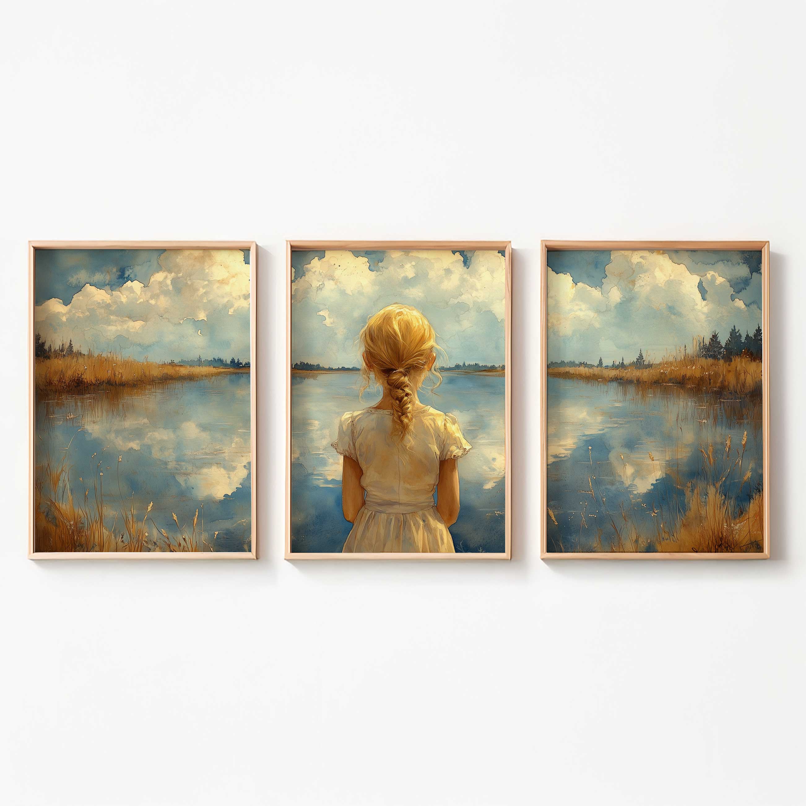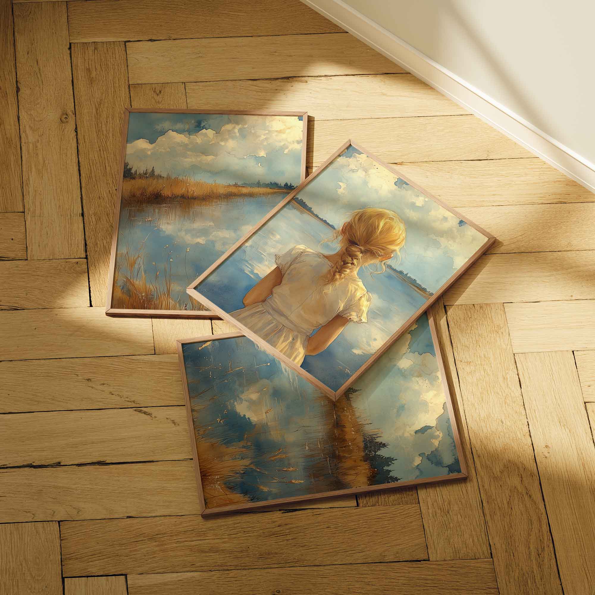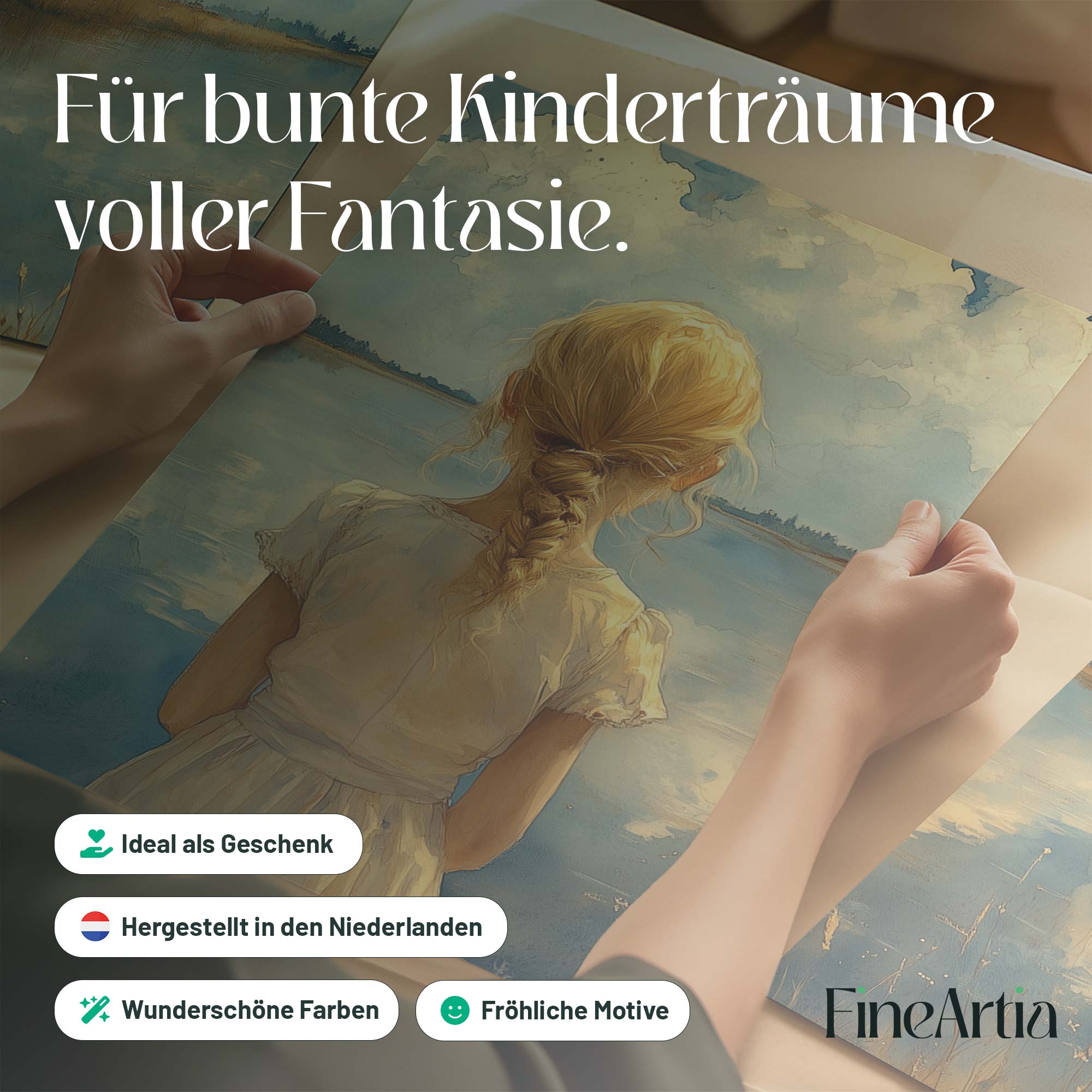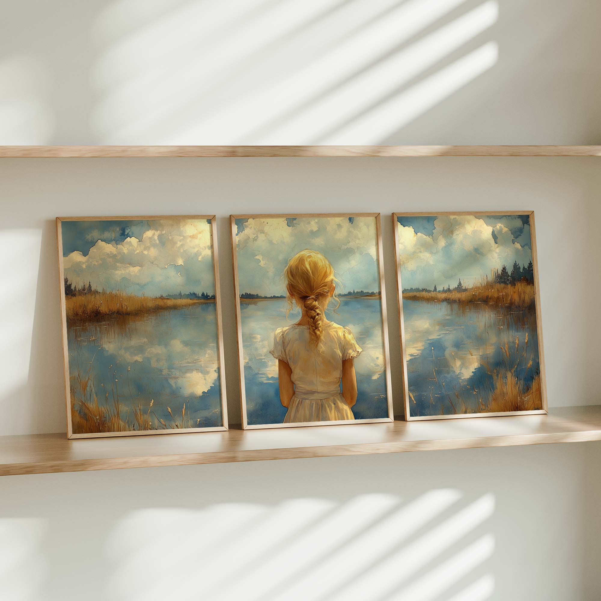 Blond Meisje bij het Meer – Dromerig Pastel Decor