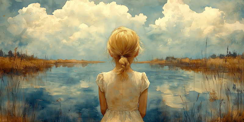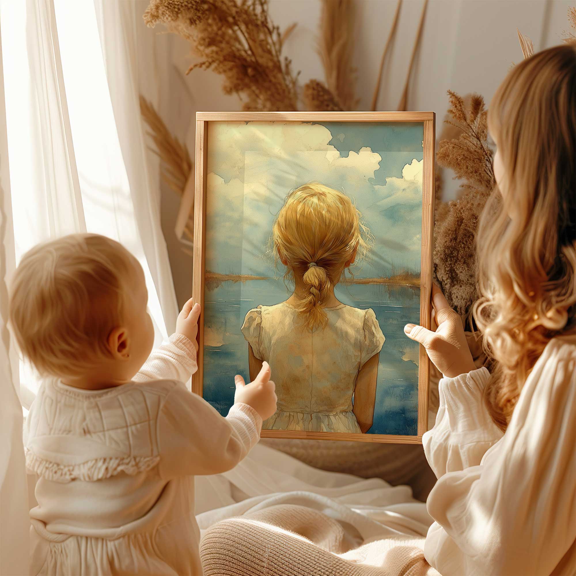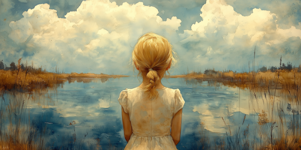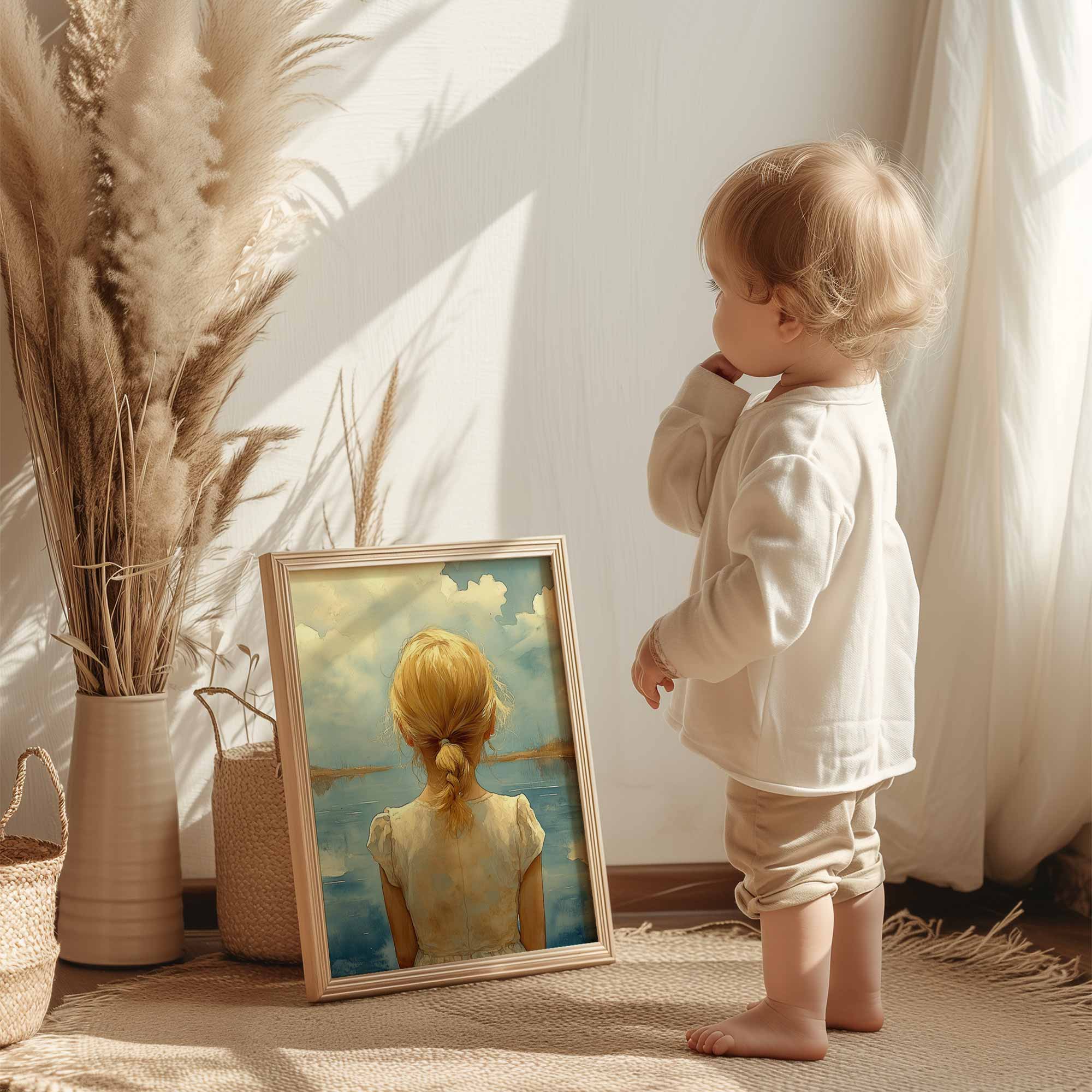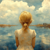 Blond Meisje bij het Meer – Dromerig Schilderij