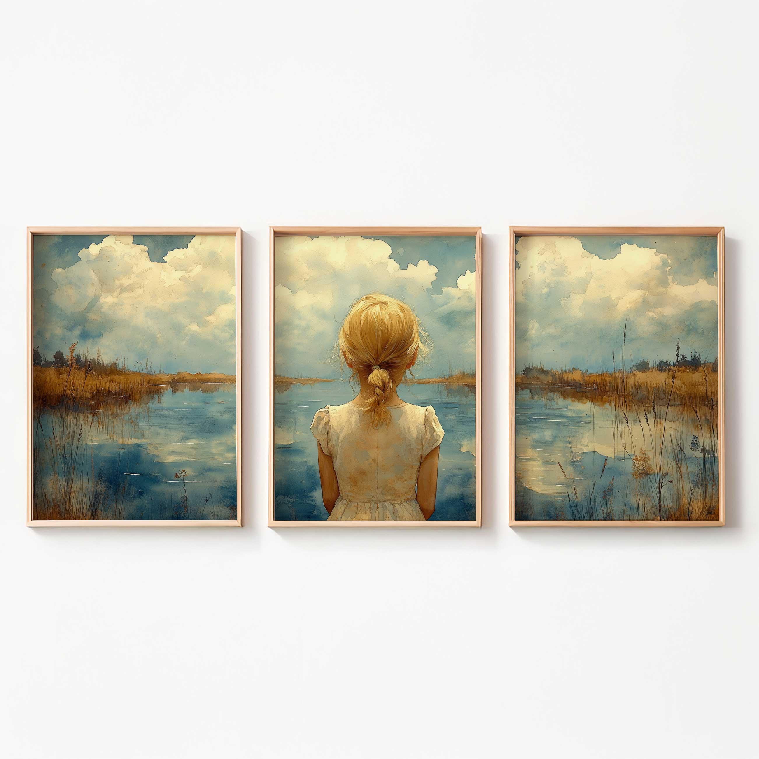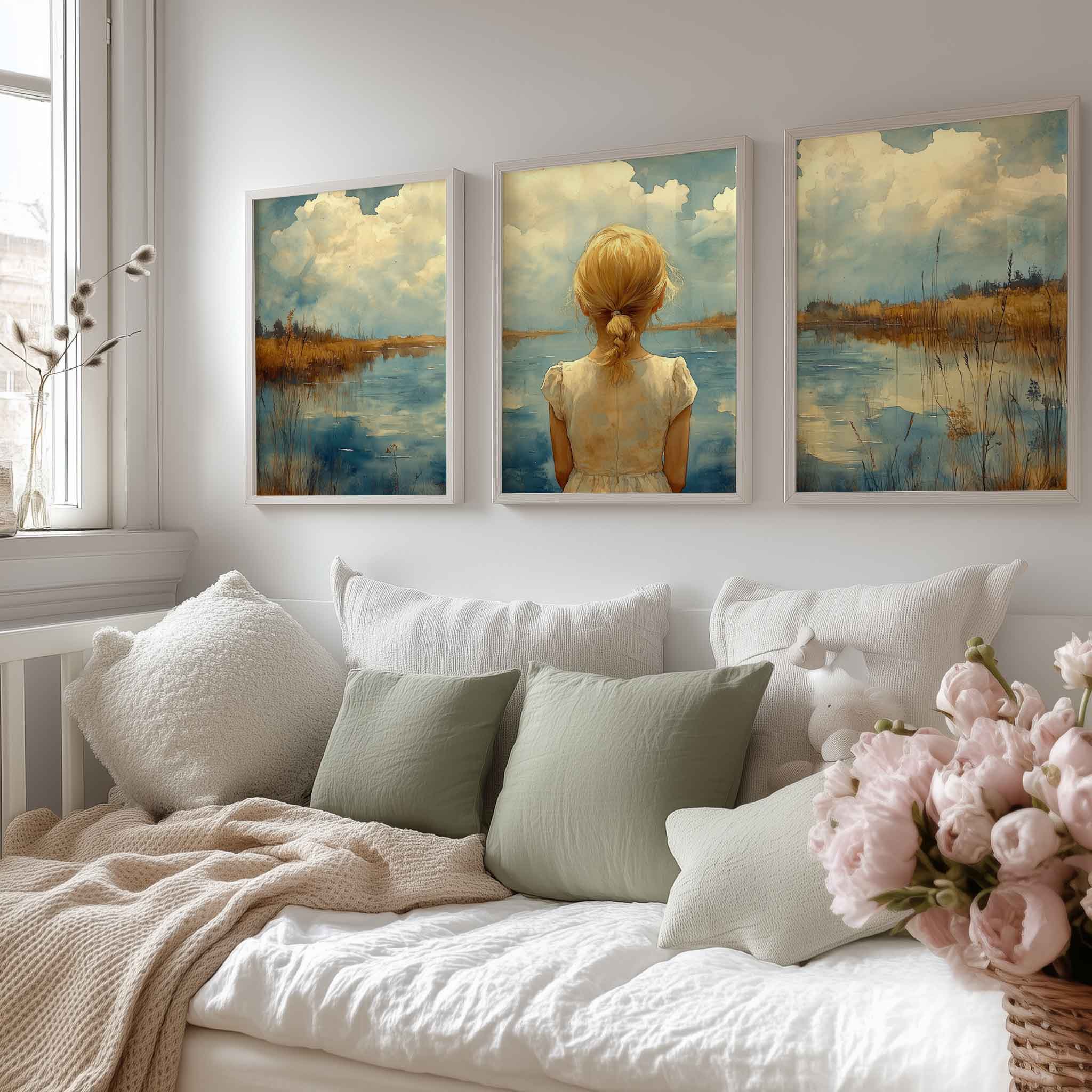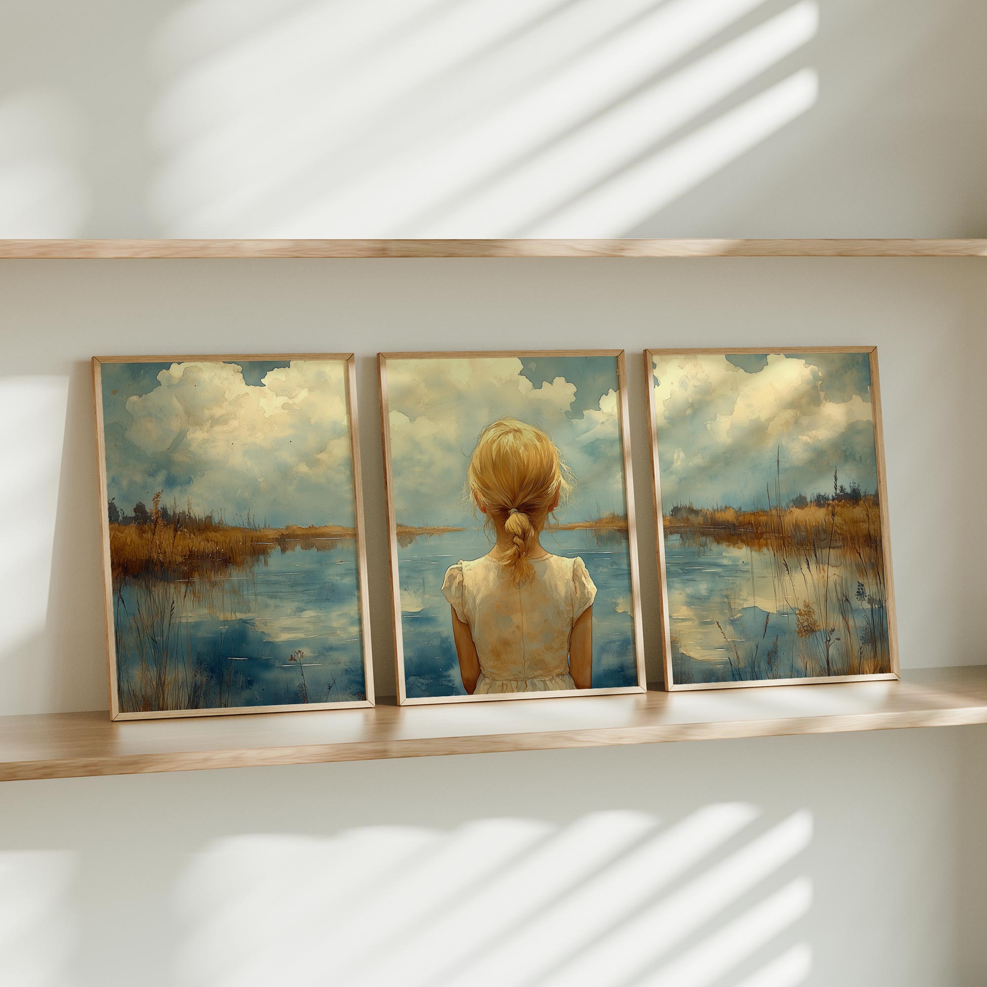Blond Meisje bij het Meer – Dromerig Schilderij