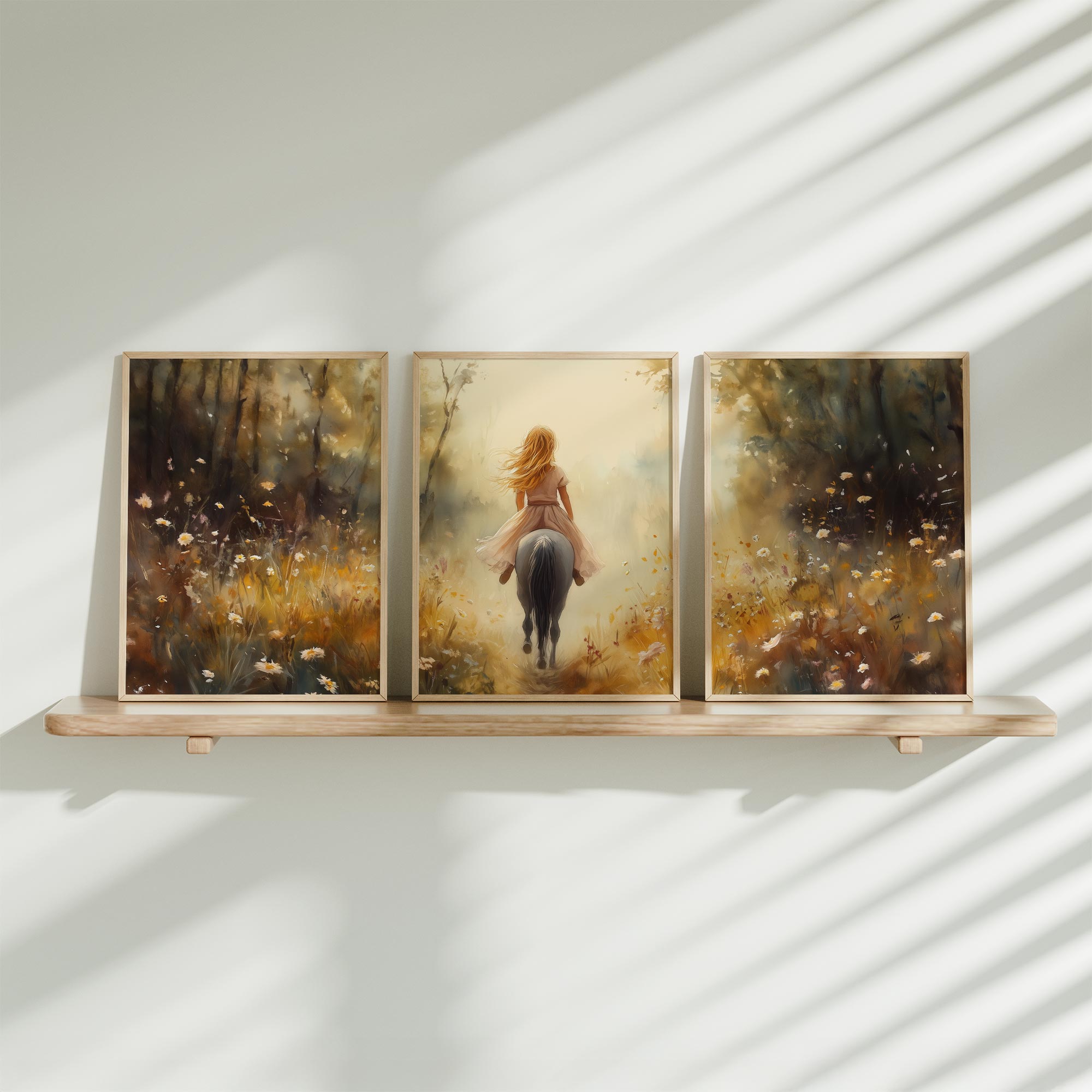 Blonde Droom in Bloemenveld met Paard