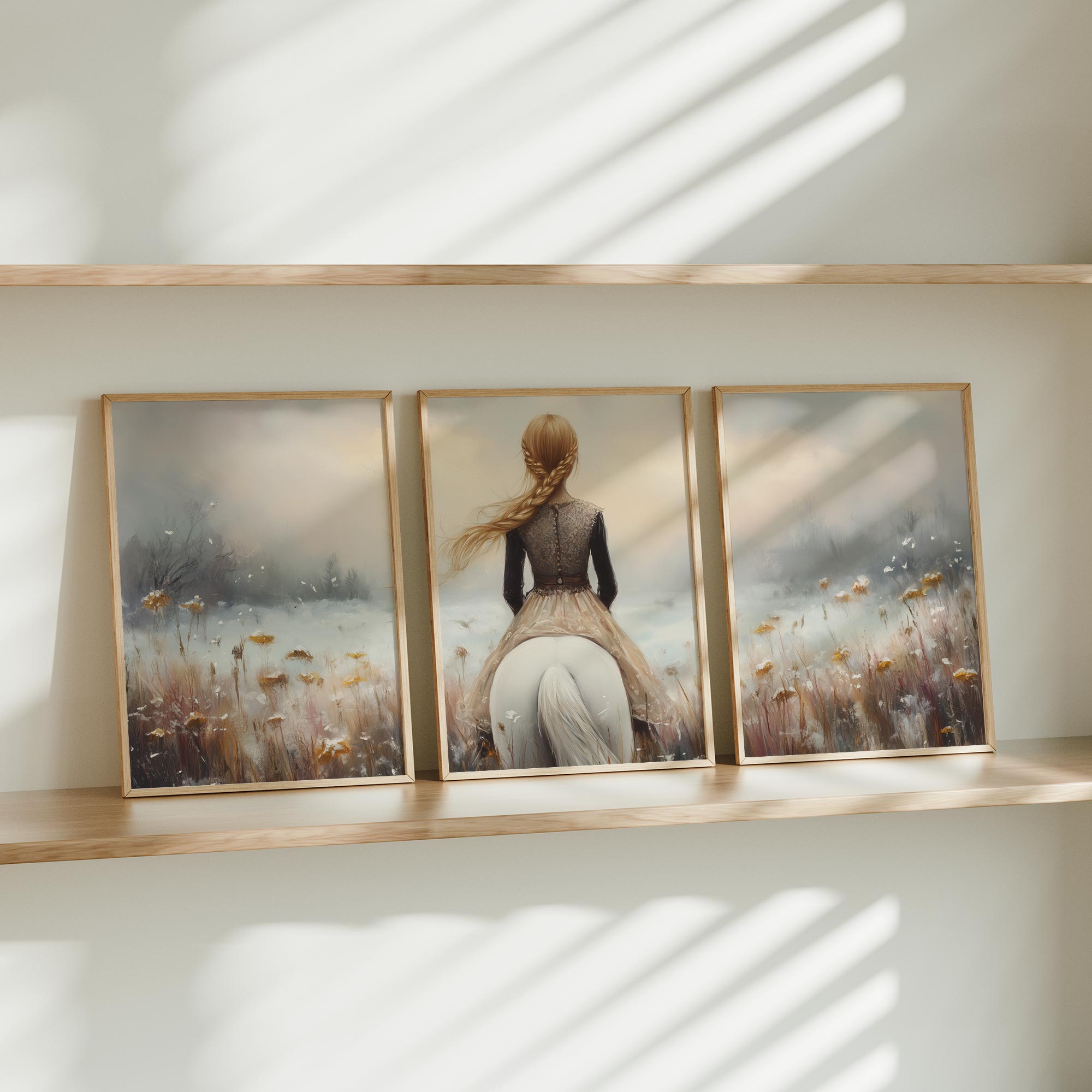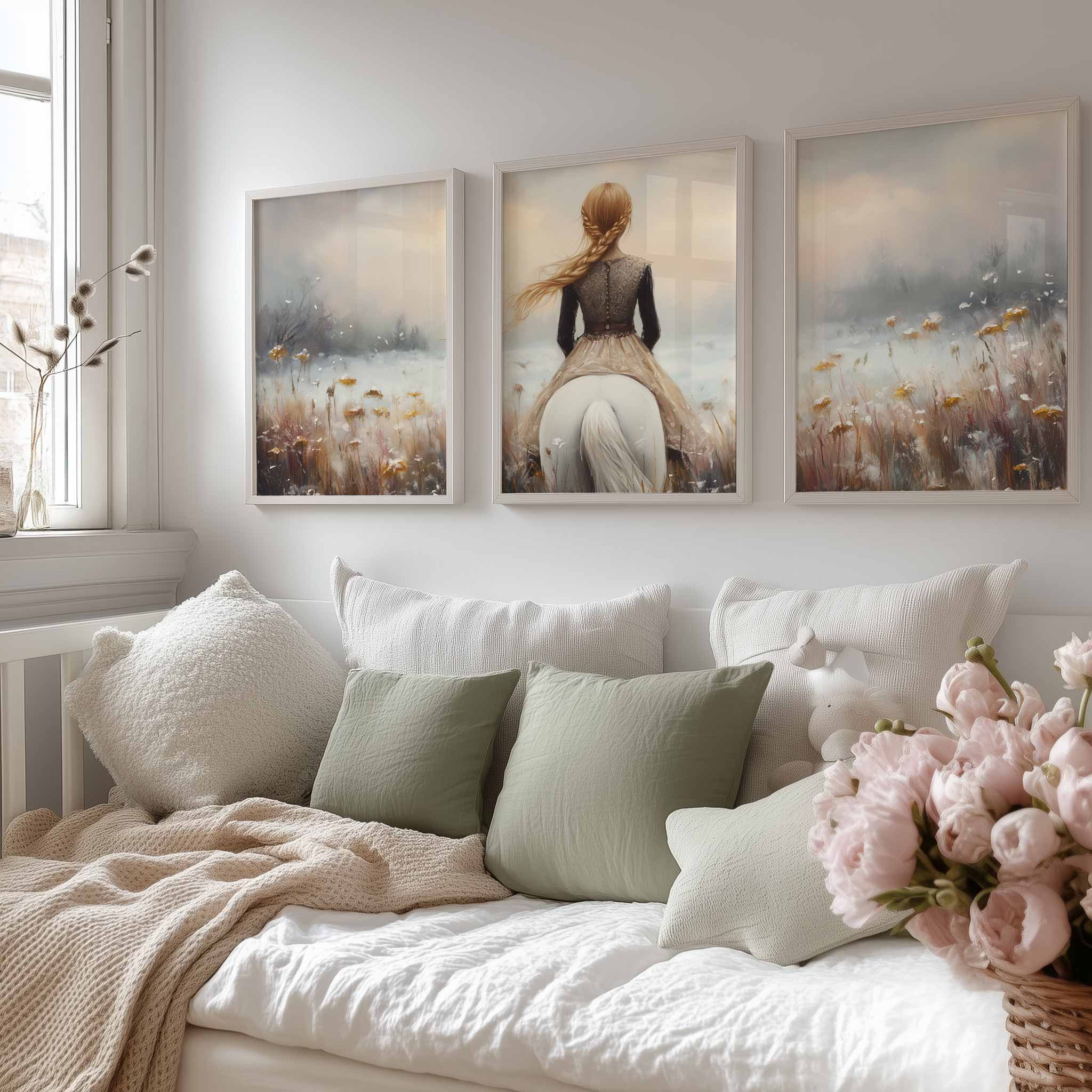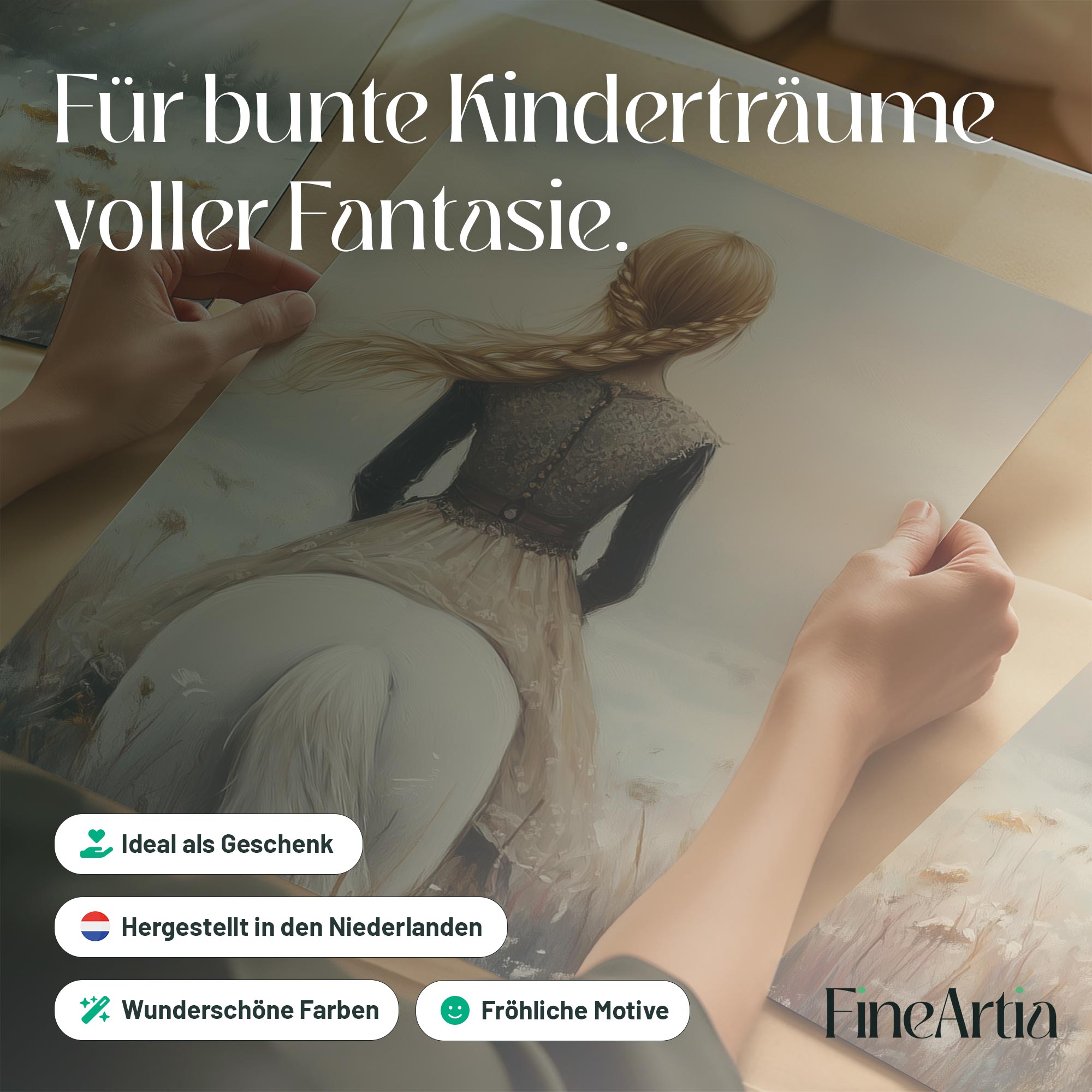 Blonde Droom in Pastel: Vrouw te Paard tussen Bloemen
