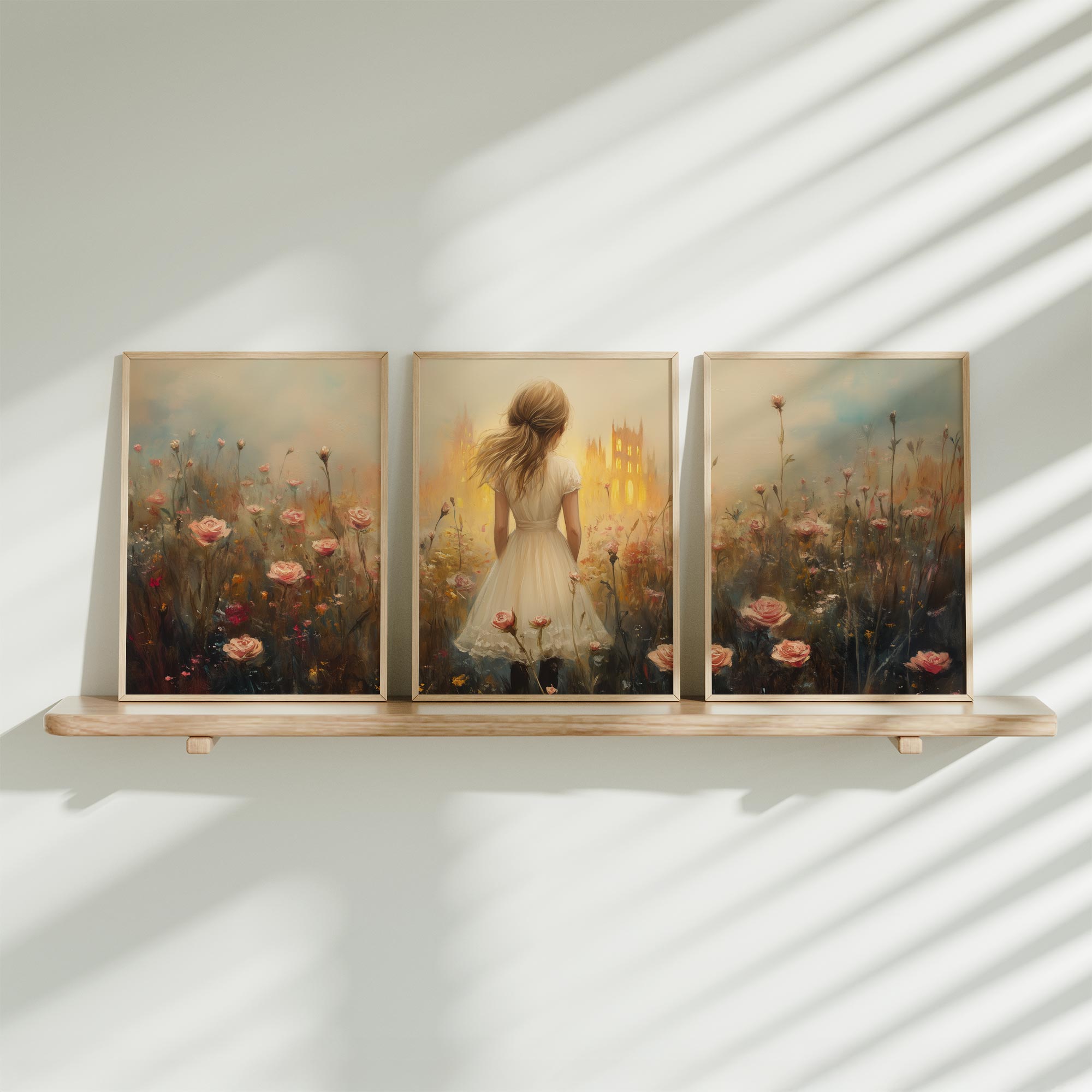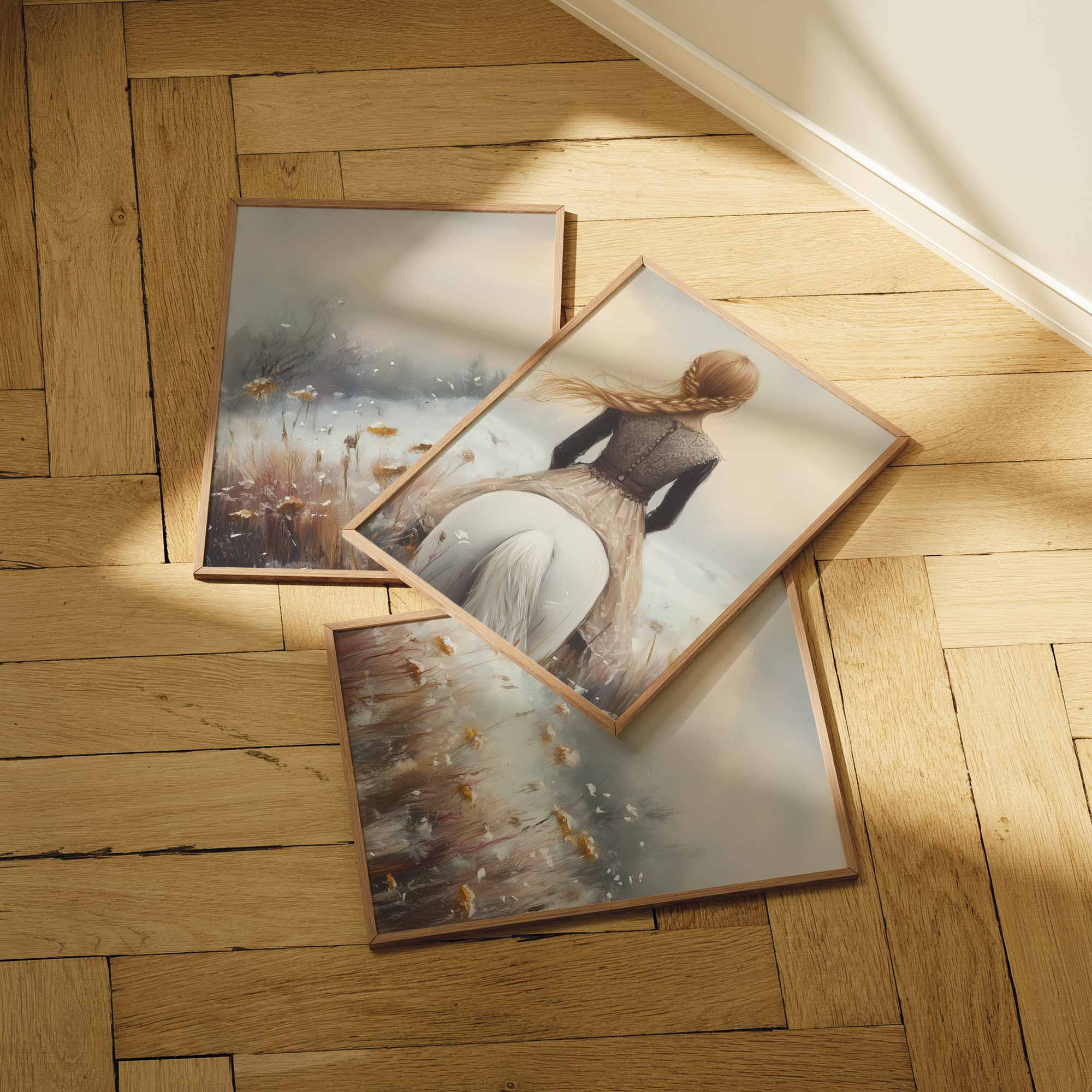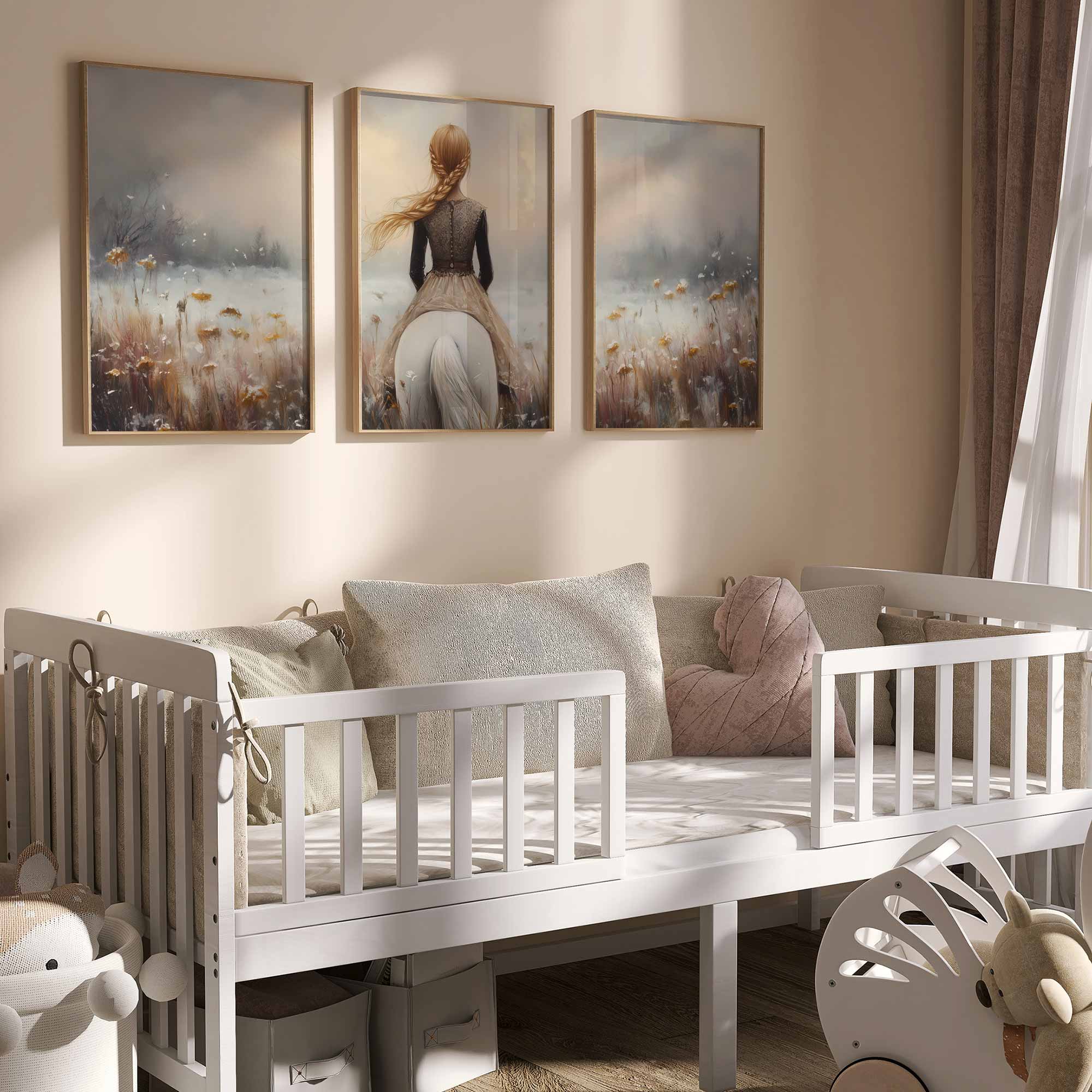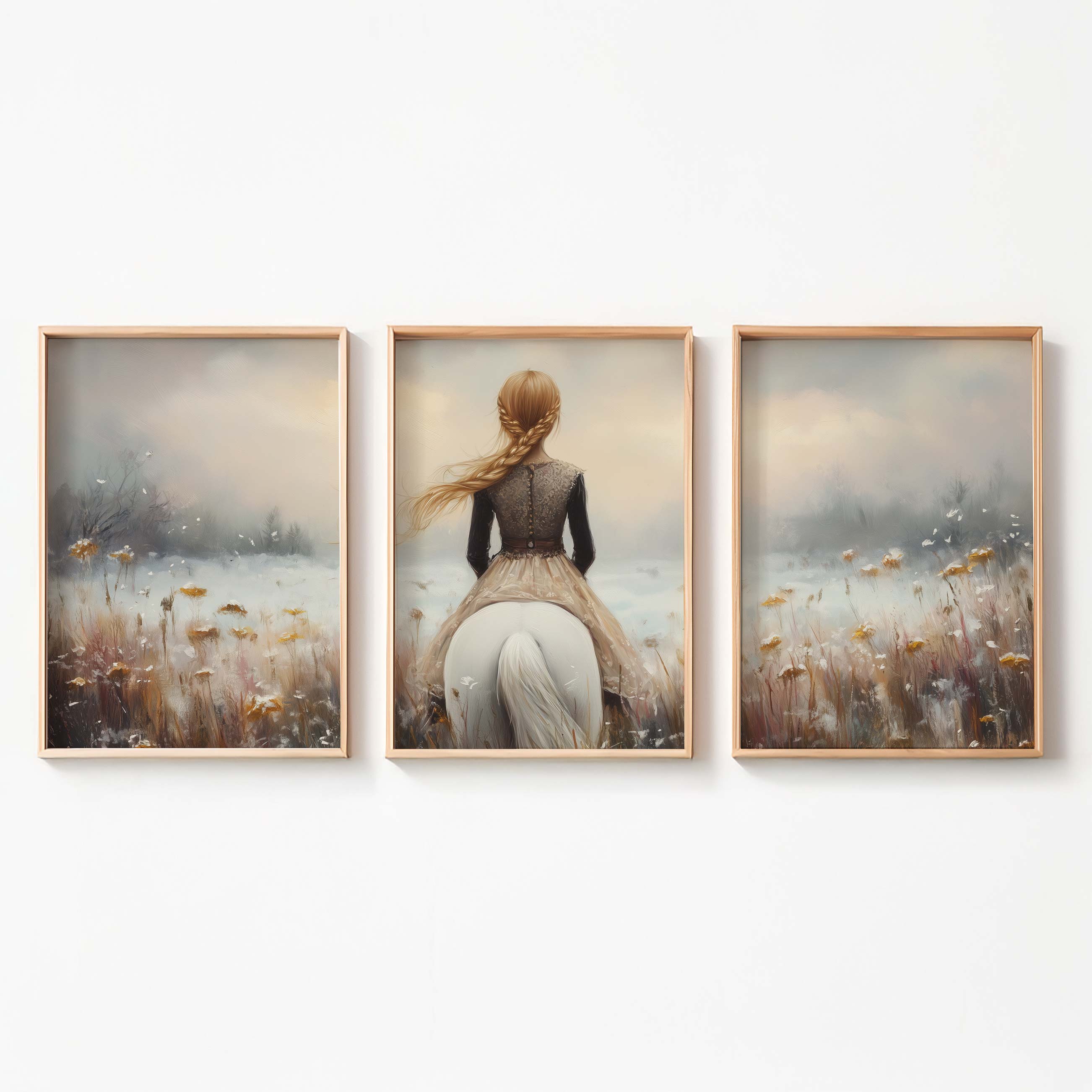 Blonde Droom in Pastel: Vrouw te Paard tussen Bloemen