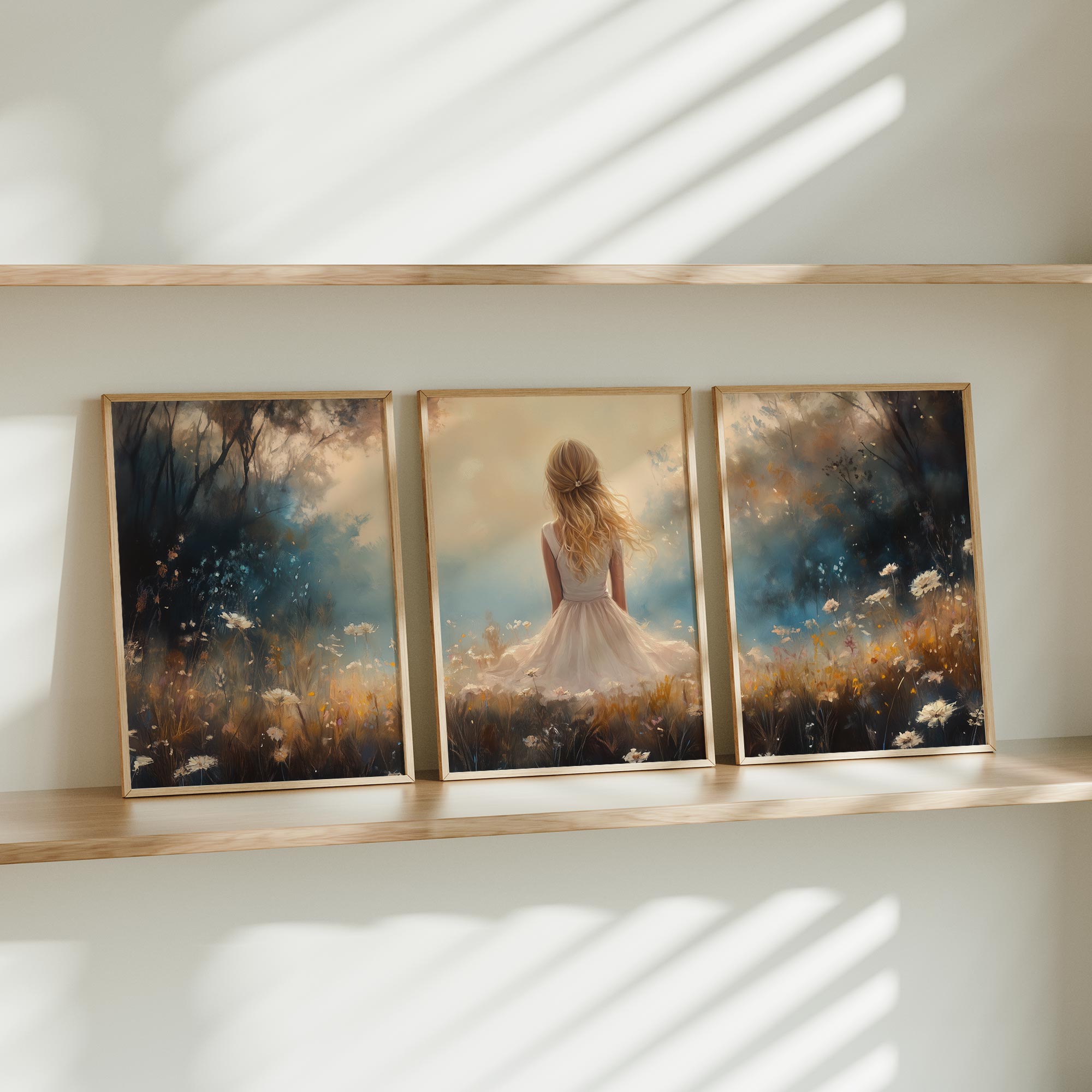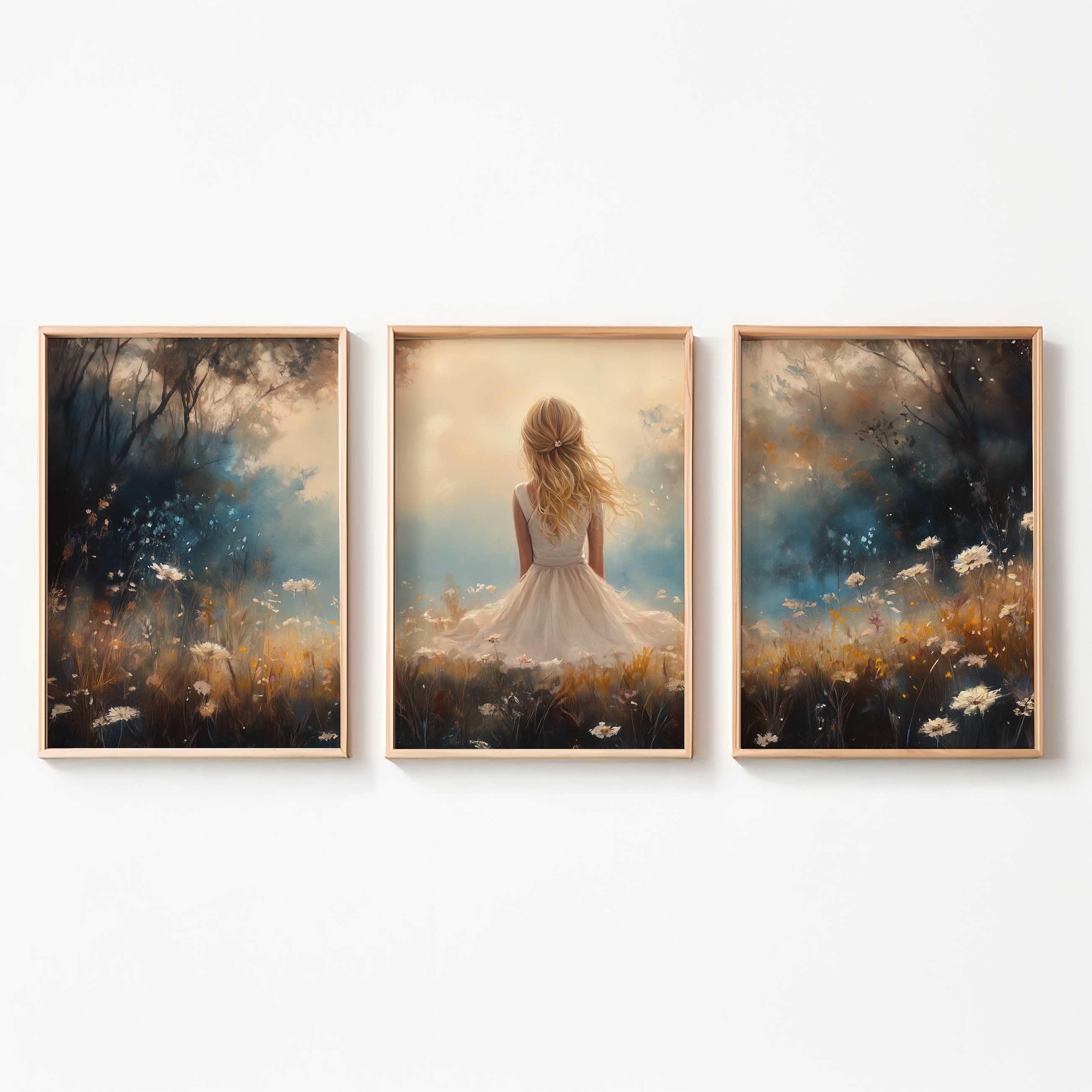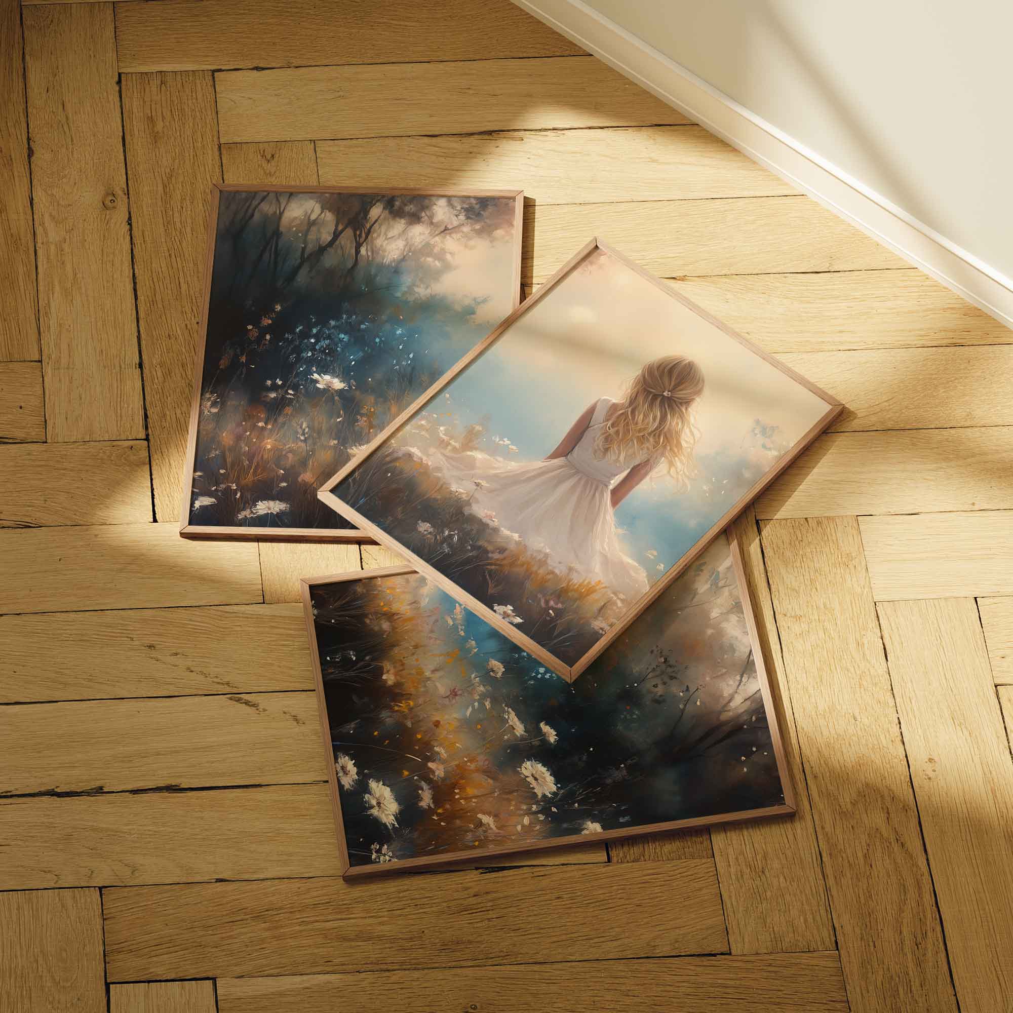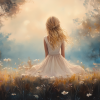 Blonde Meisje in Bloemenveld – Dromerig Pastel Schilderij