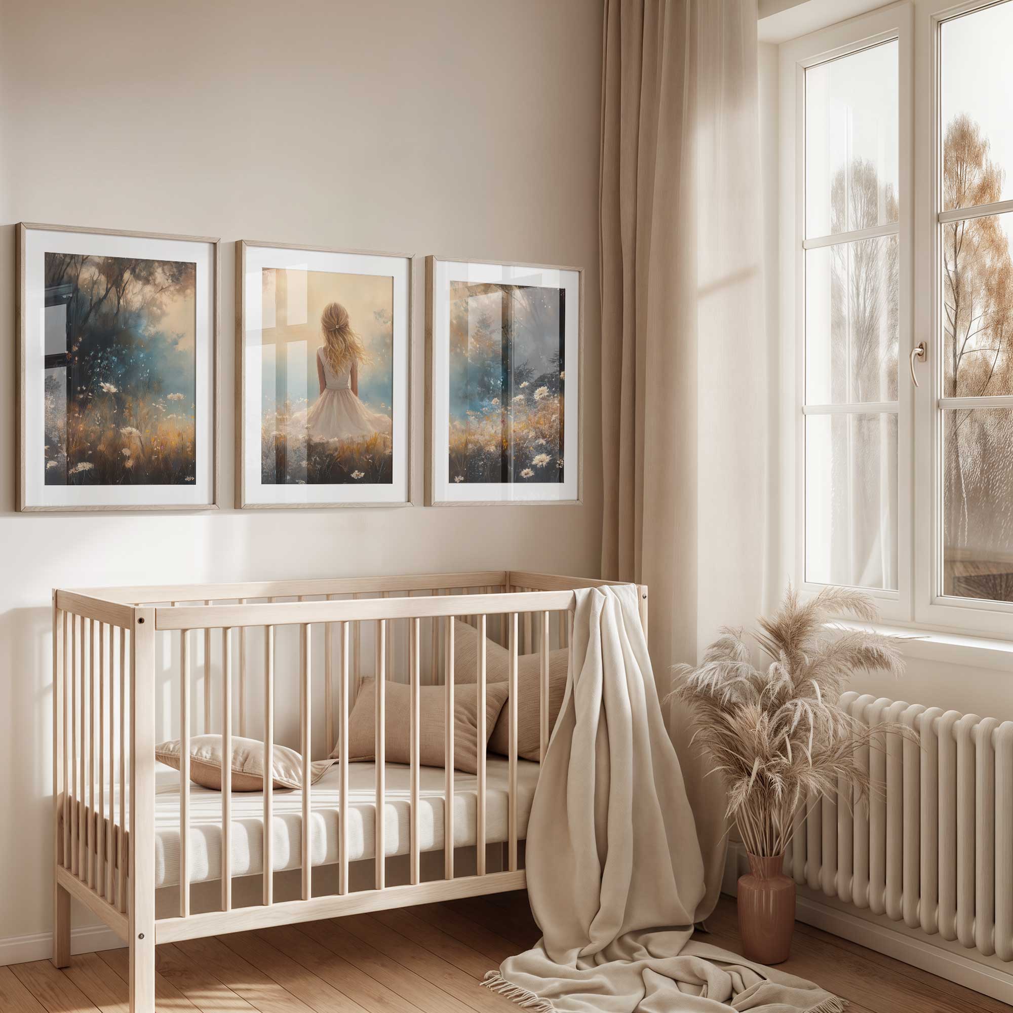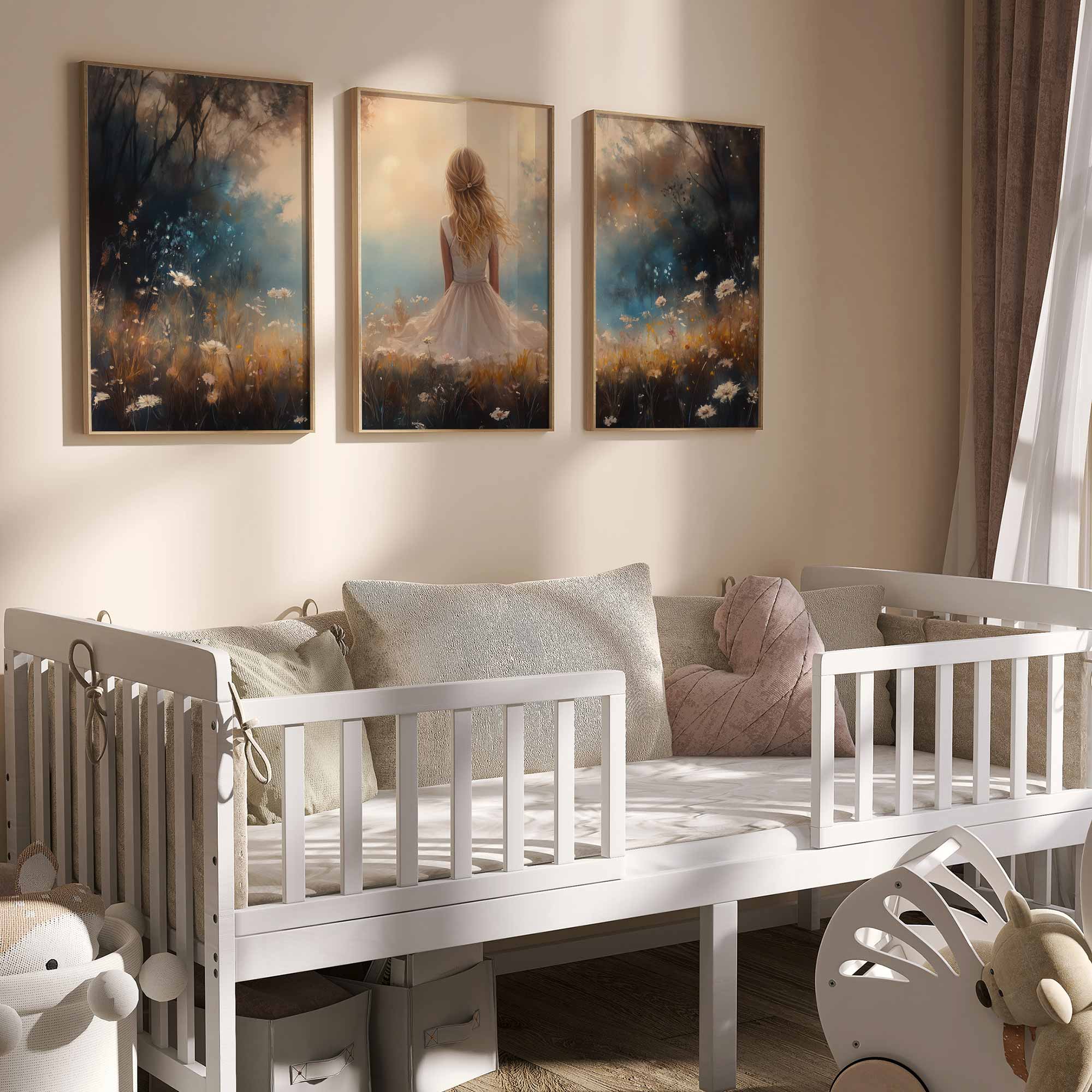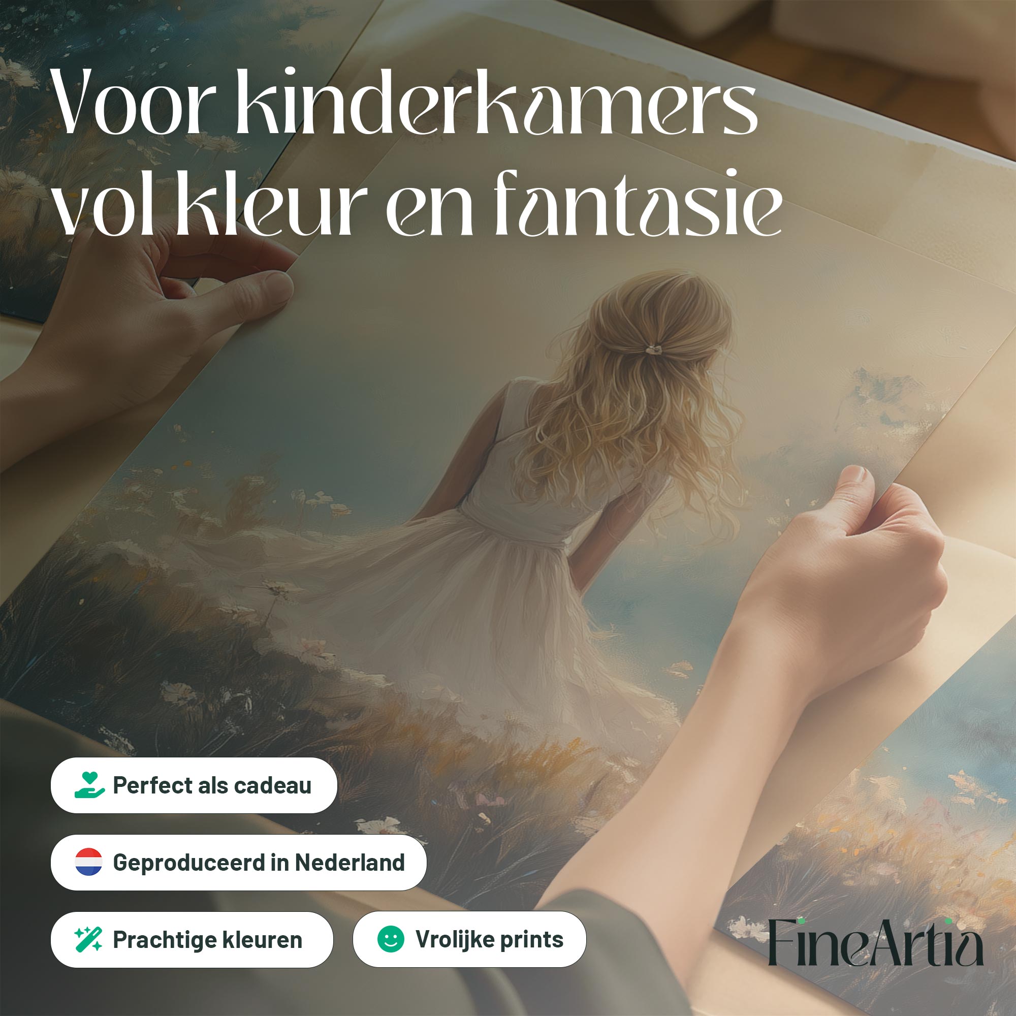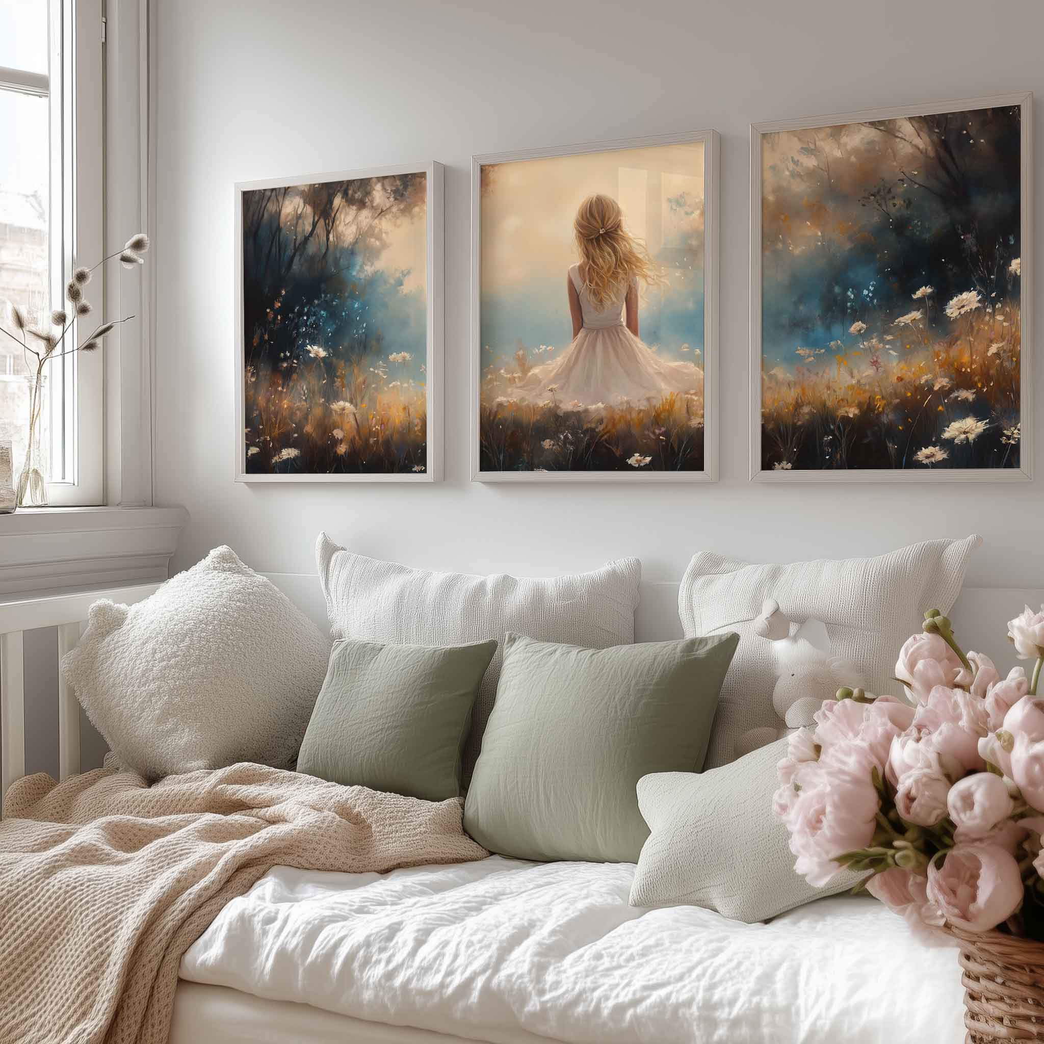 Blonde Meisje in Bloemenveld – Dromerig Pastel Schilderij