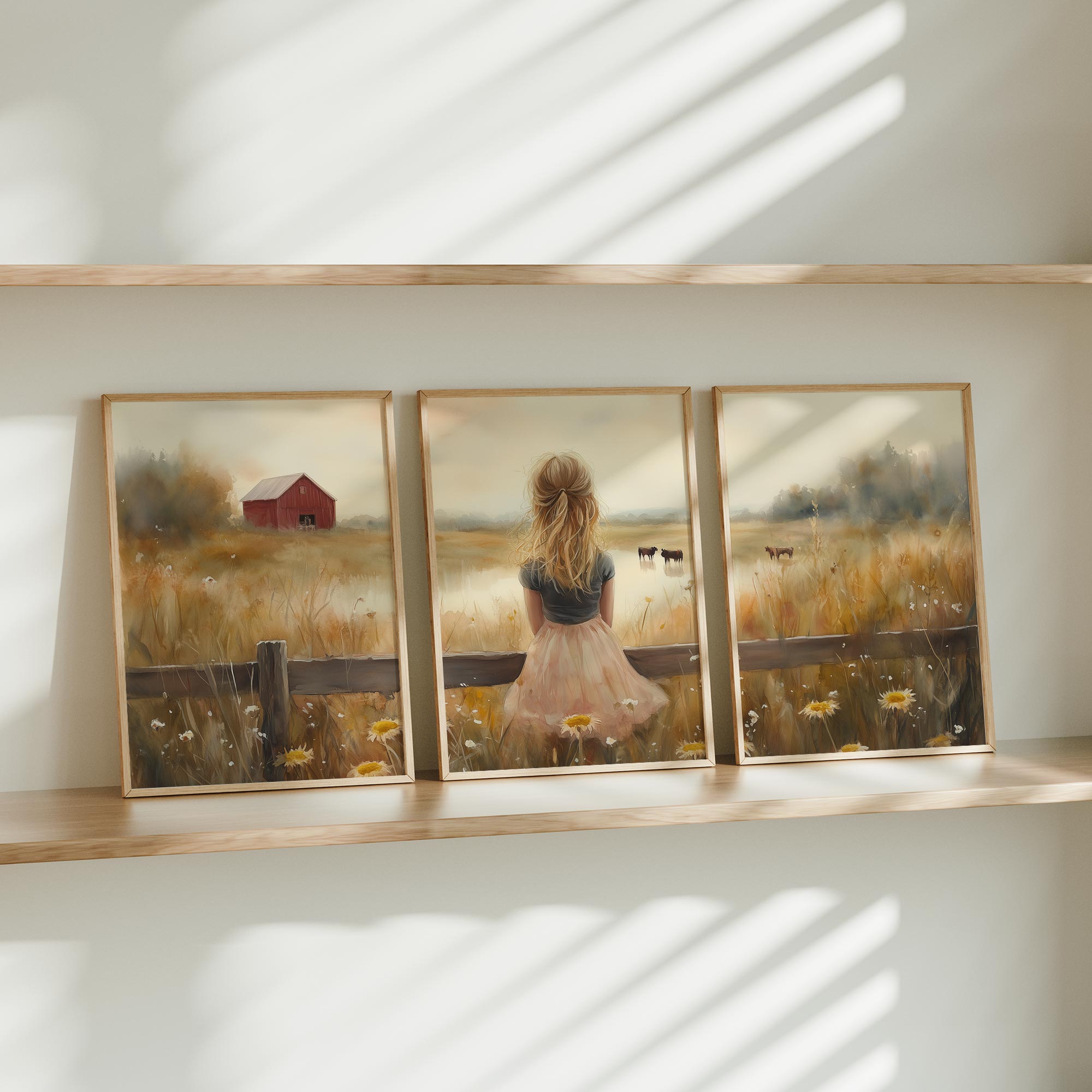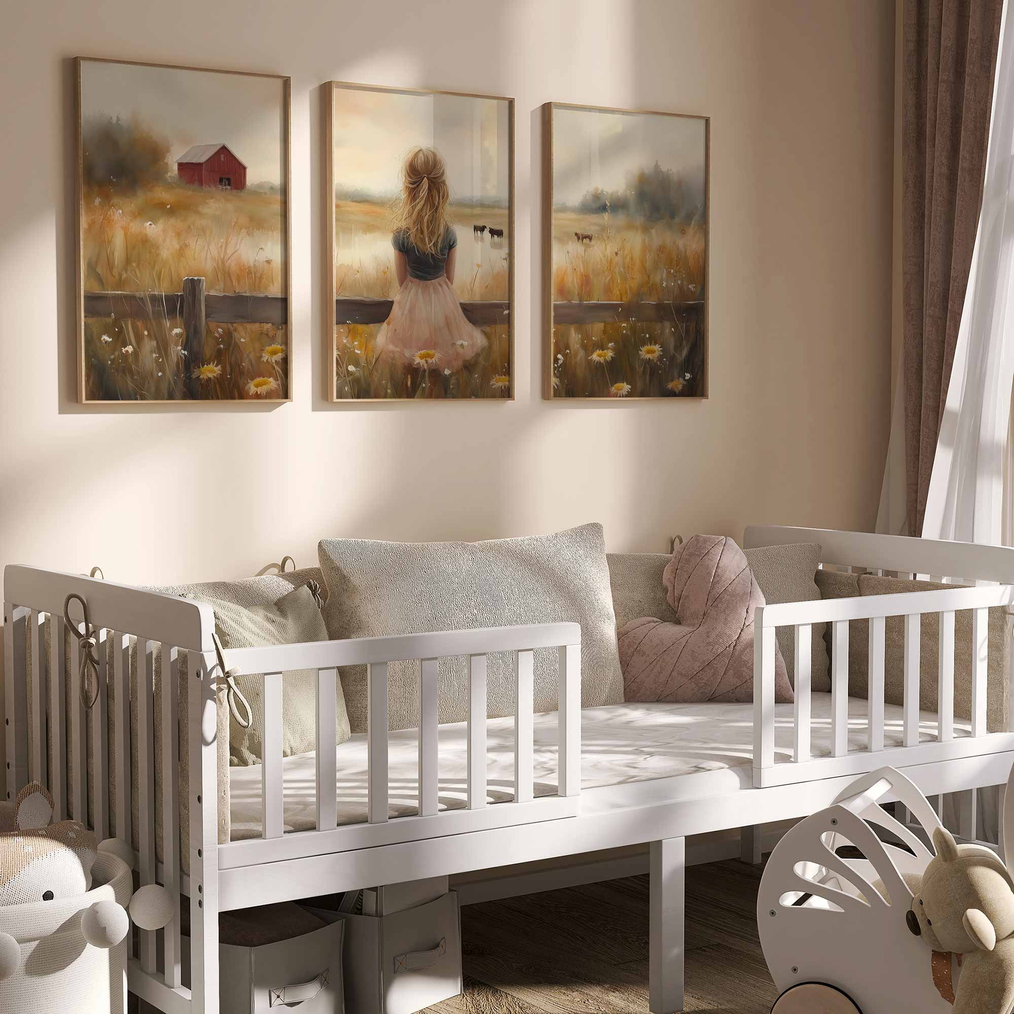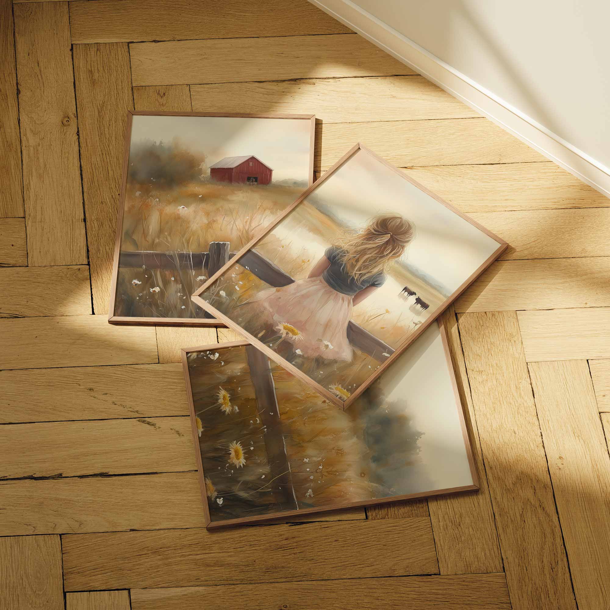 Blonde Meisje in Roze op Hek tussen Bloemenveld
