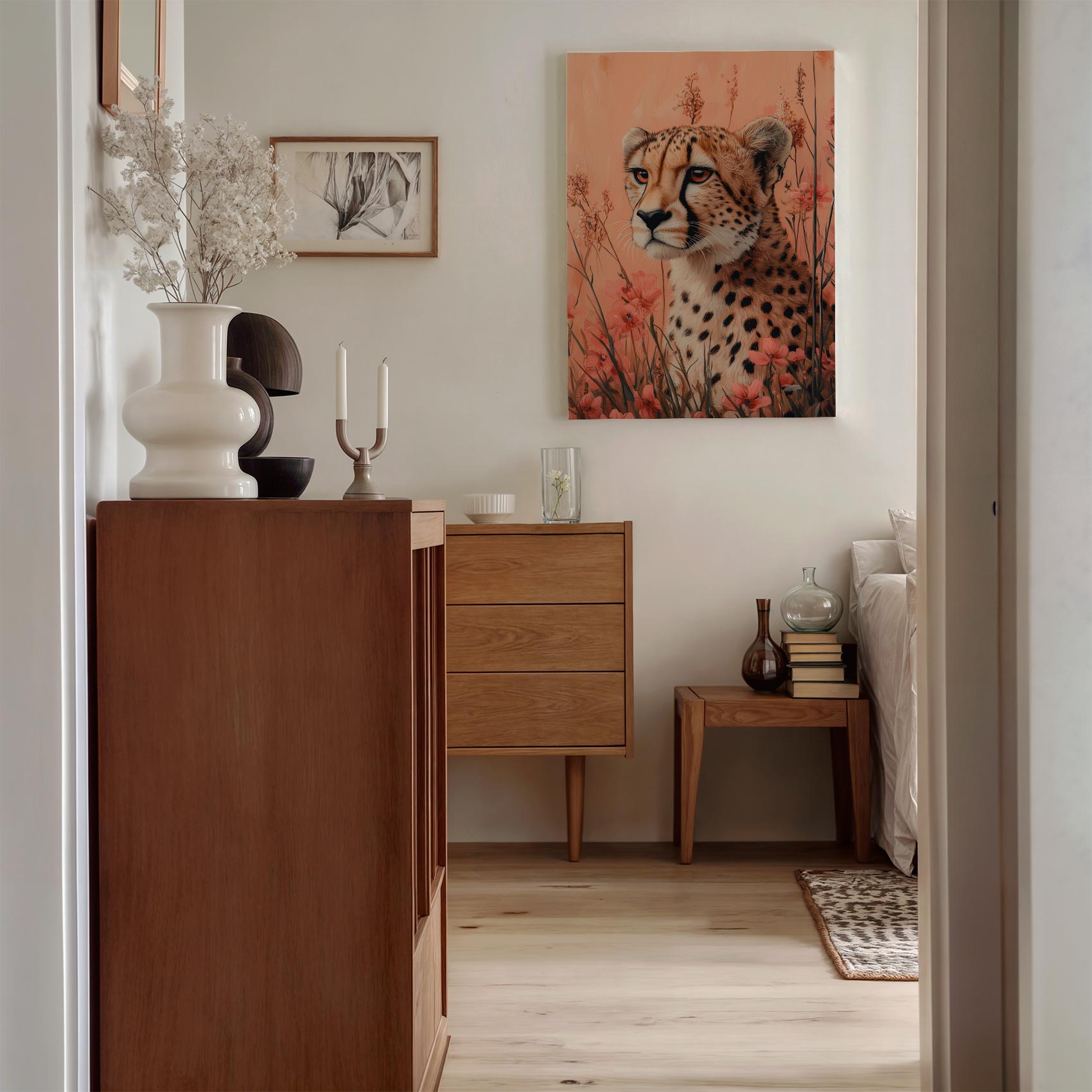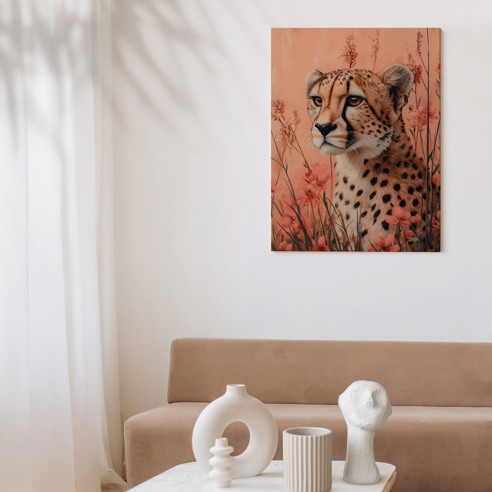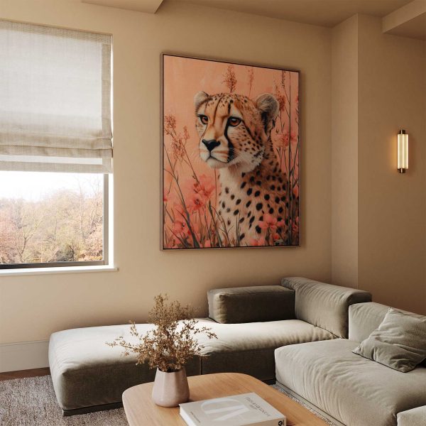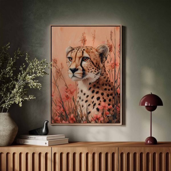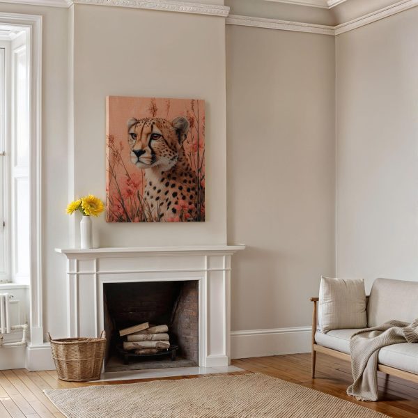 Terug naar collectie Canvas Cheetah in bloemenveld
