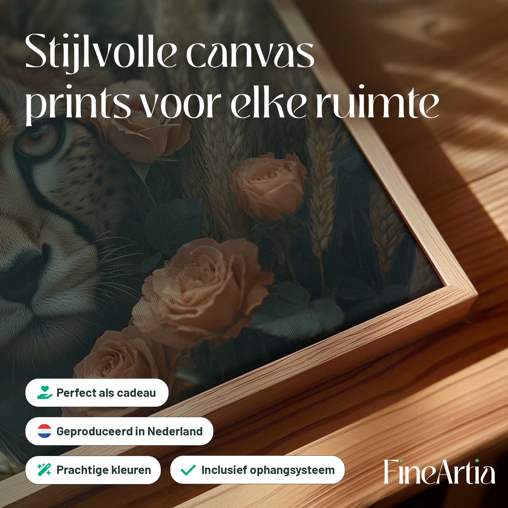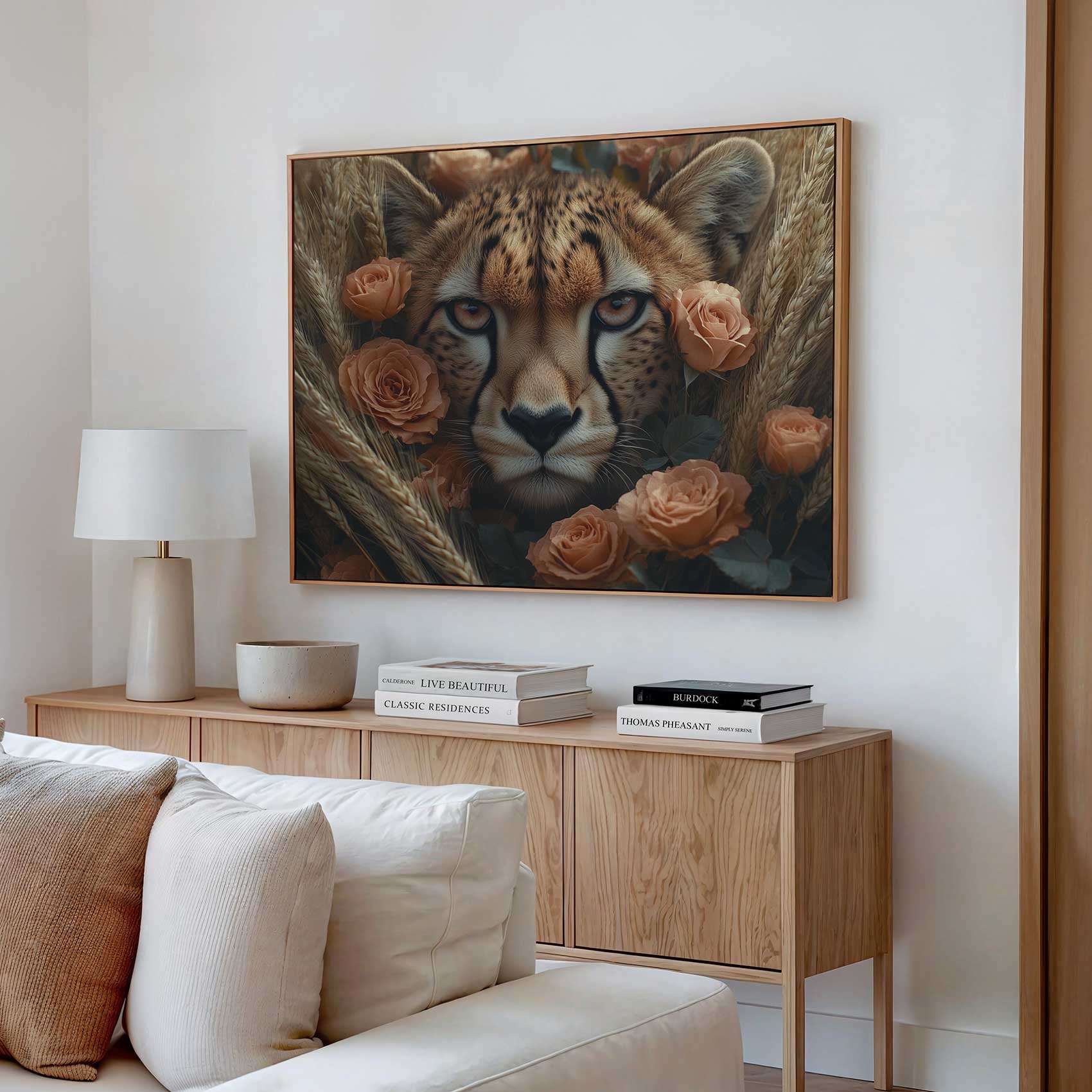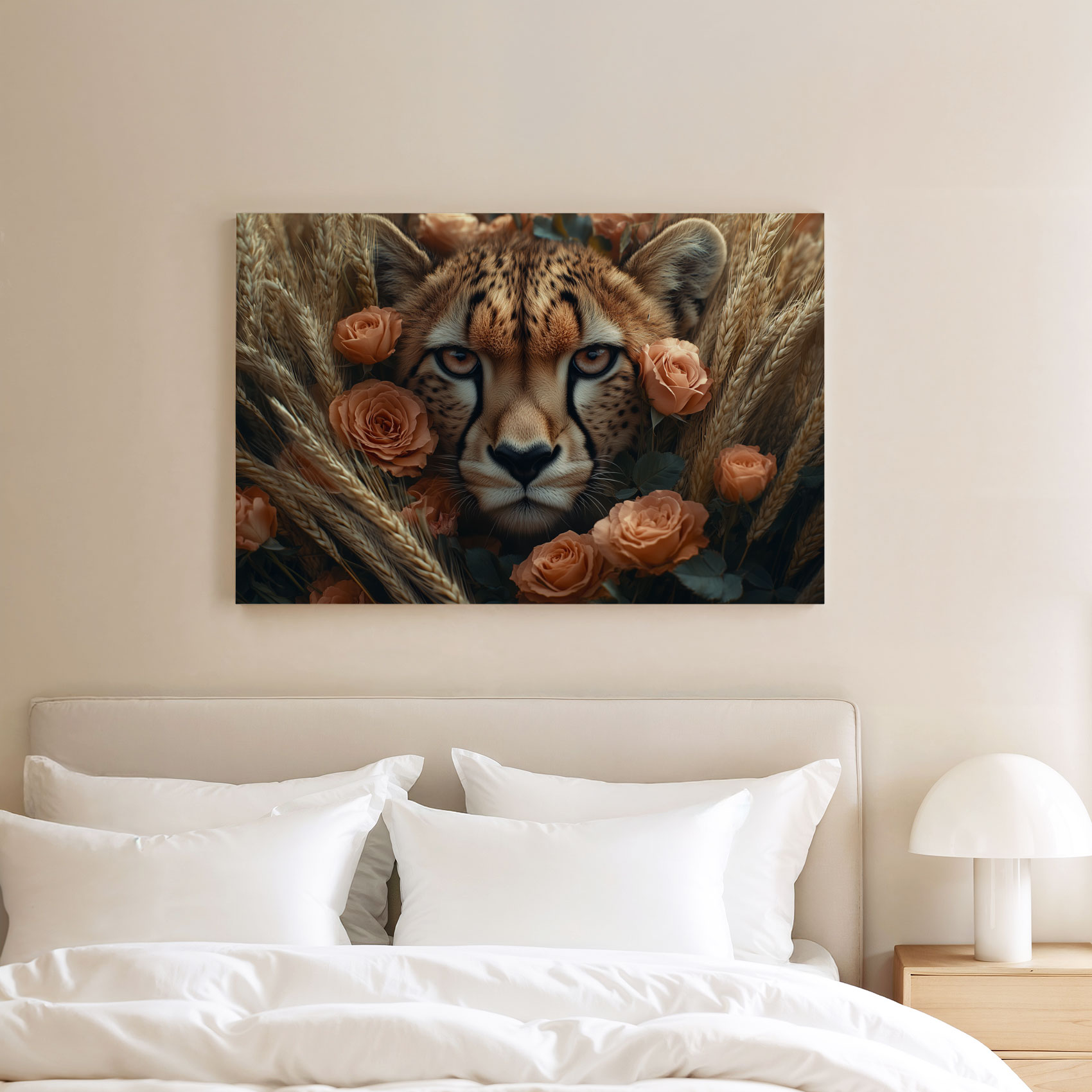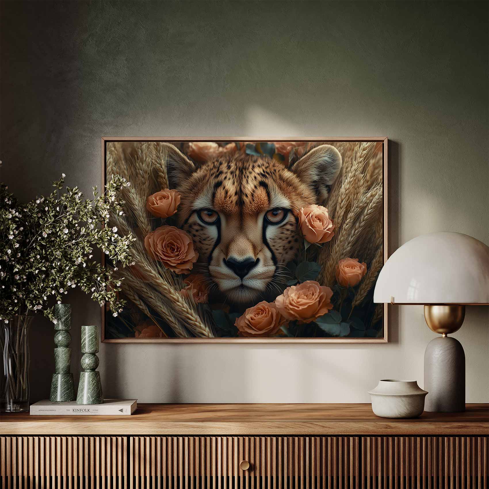 Terug naar collectie Canvas Cheetah tussen oranje bloemen